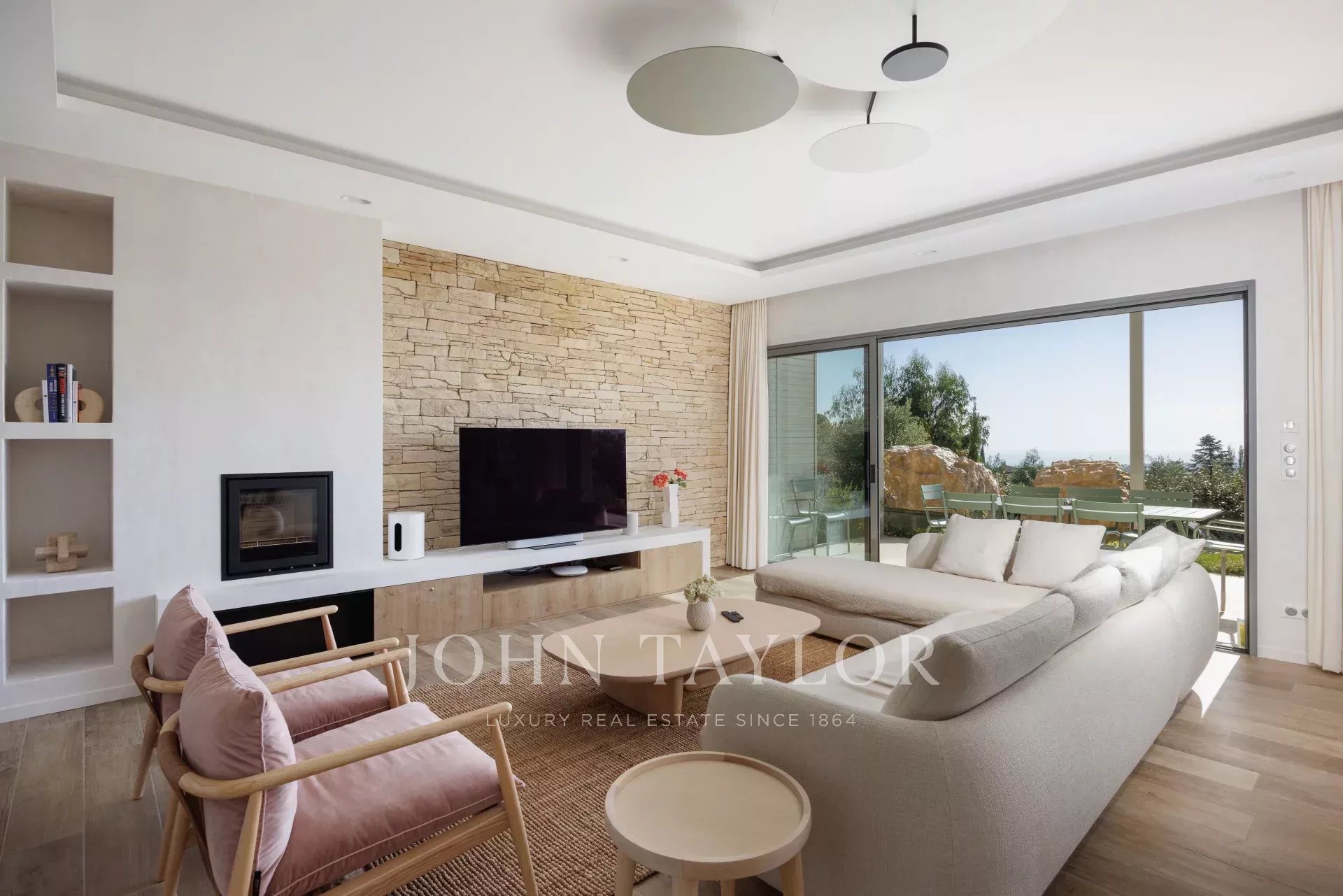 À l’extérieur, plusieurs terrasses avec pergola, un jardin paysager, et une piscine chauffée avec vue imprenable, sont à votre disposition pour des moments de détente. Depuis chaque pièce de la villa, vous pourrez admirer la vue panoramique sur la mer.