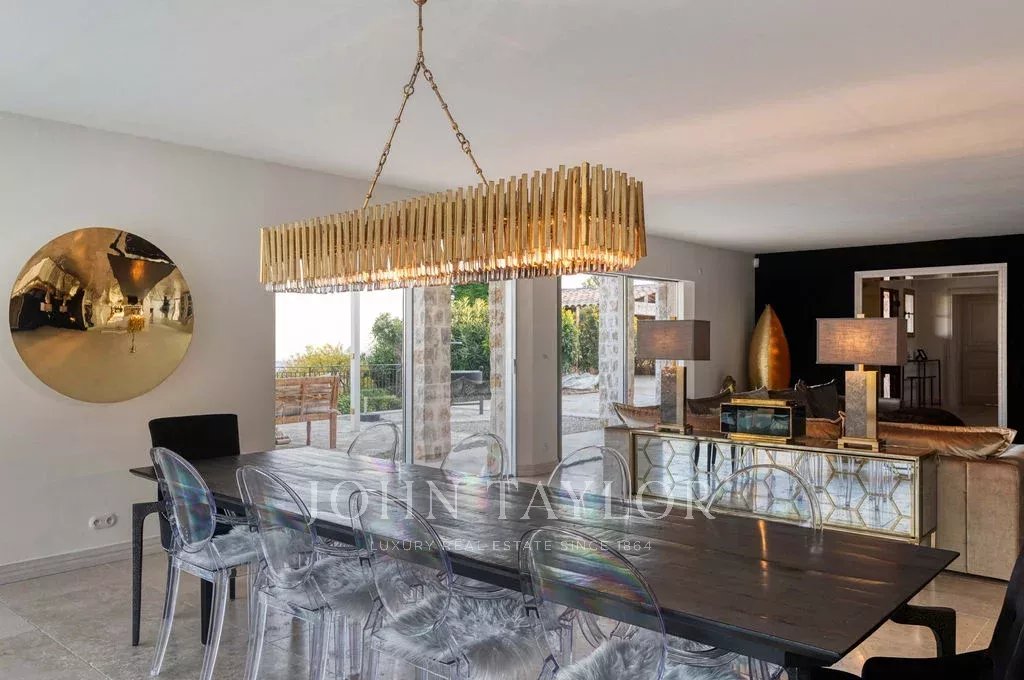 Somptueuse villa de 300m2 située au calme total dans les hauteurs de Tourrettes-sur-Loup, à deux pas du vieux village et des chemins de randonnée. Magnifique vue sur la mer et les collines aux alentours.