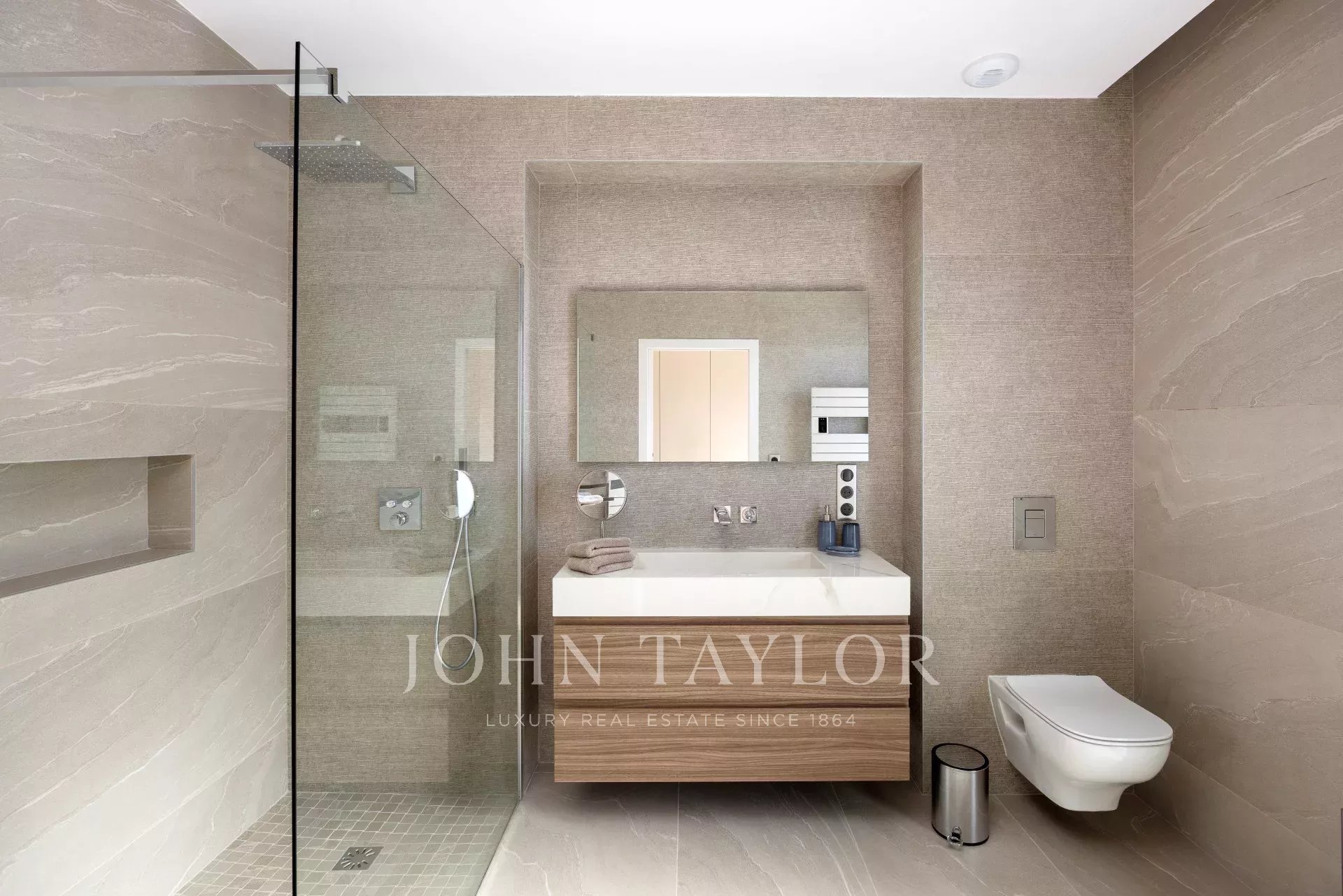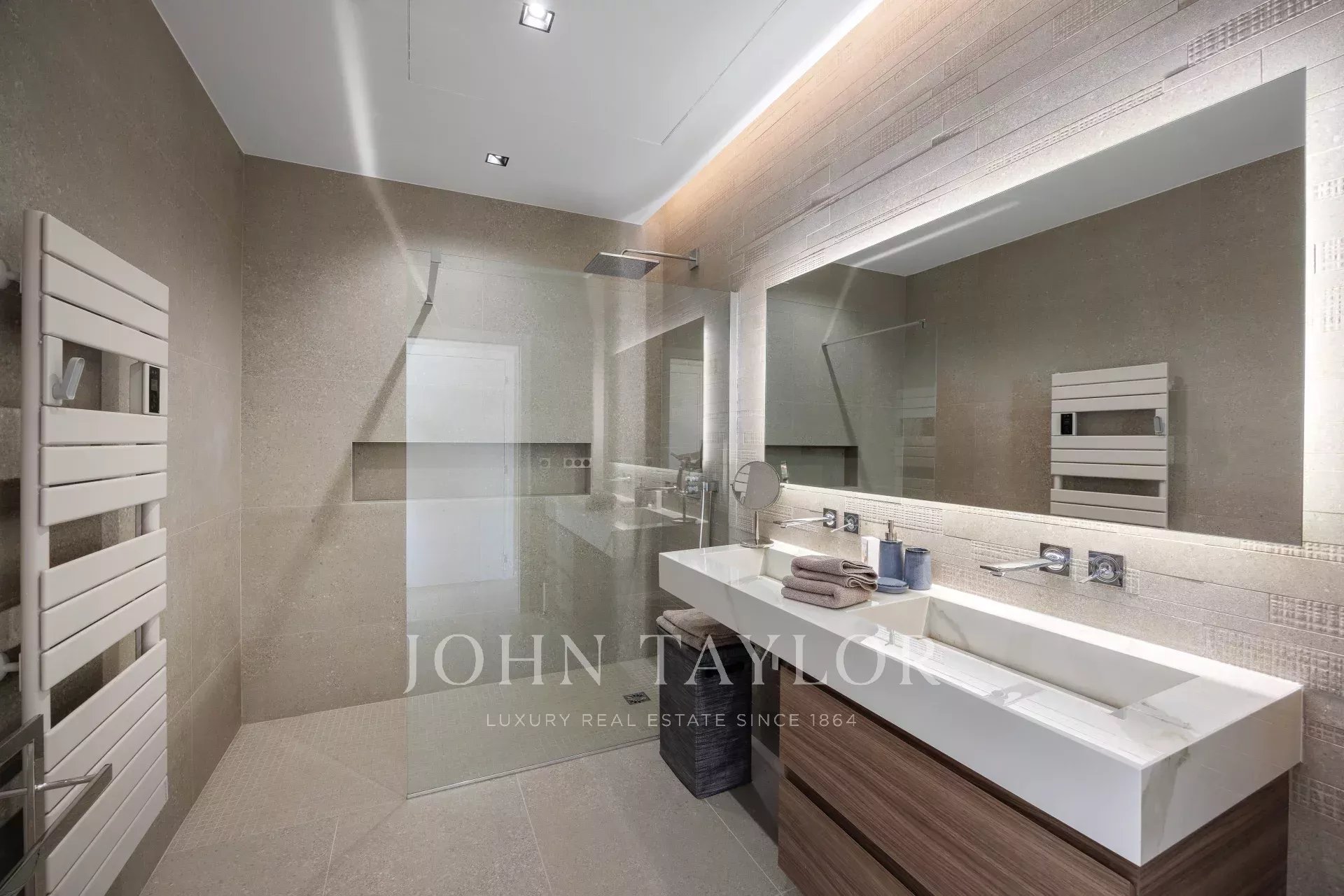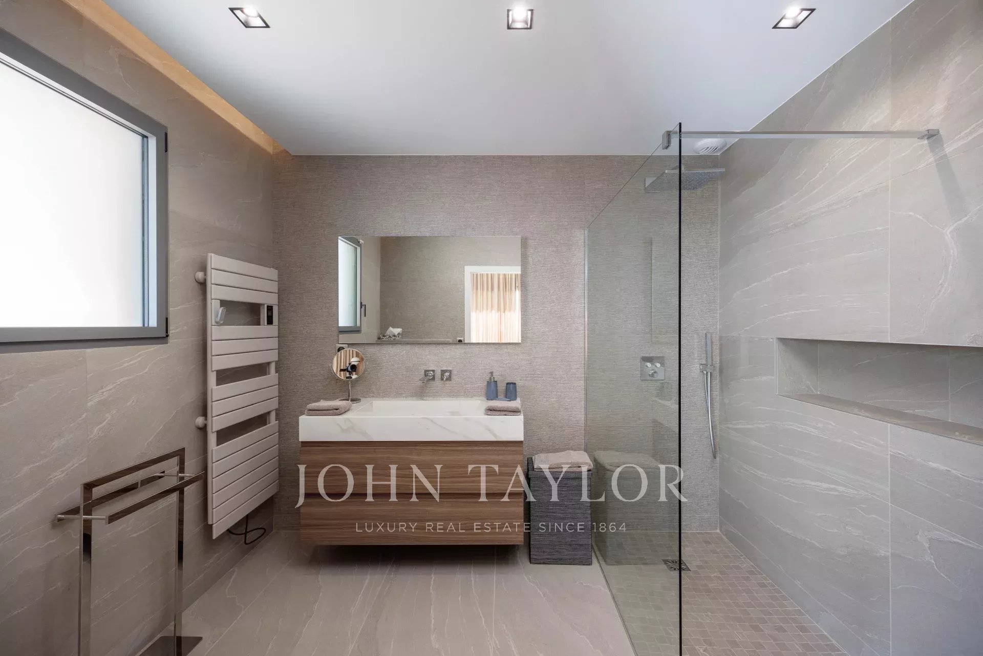 Cette villa spacieuse et lumineuse comprend trois chambres, chacune dotée de sa propre salle de douche et d’un dressing privatif.