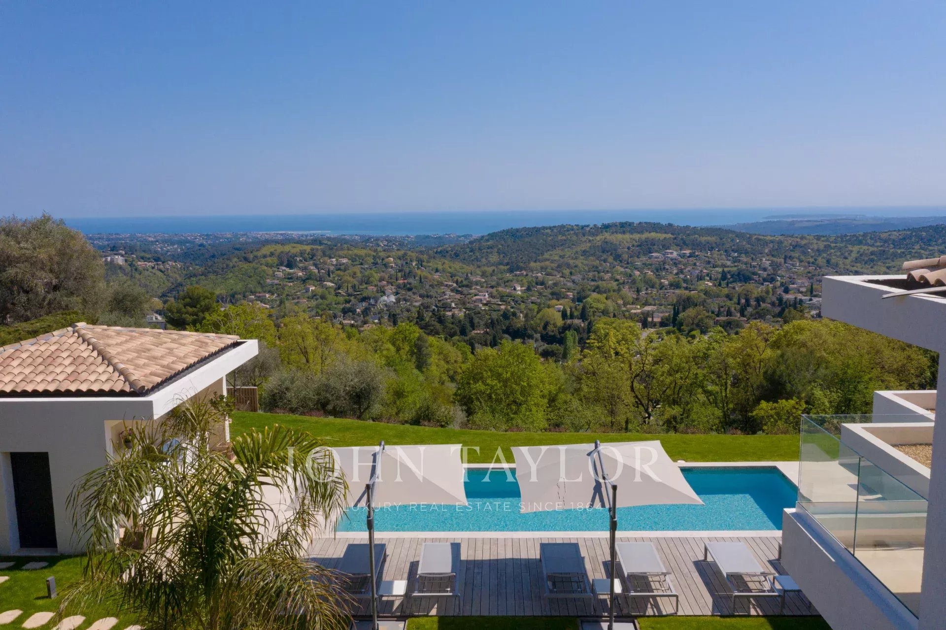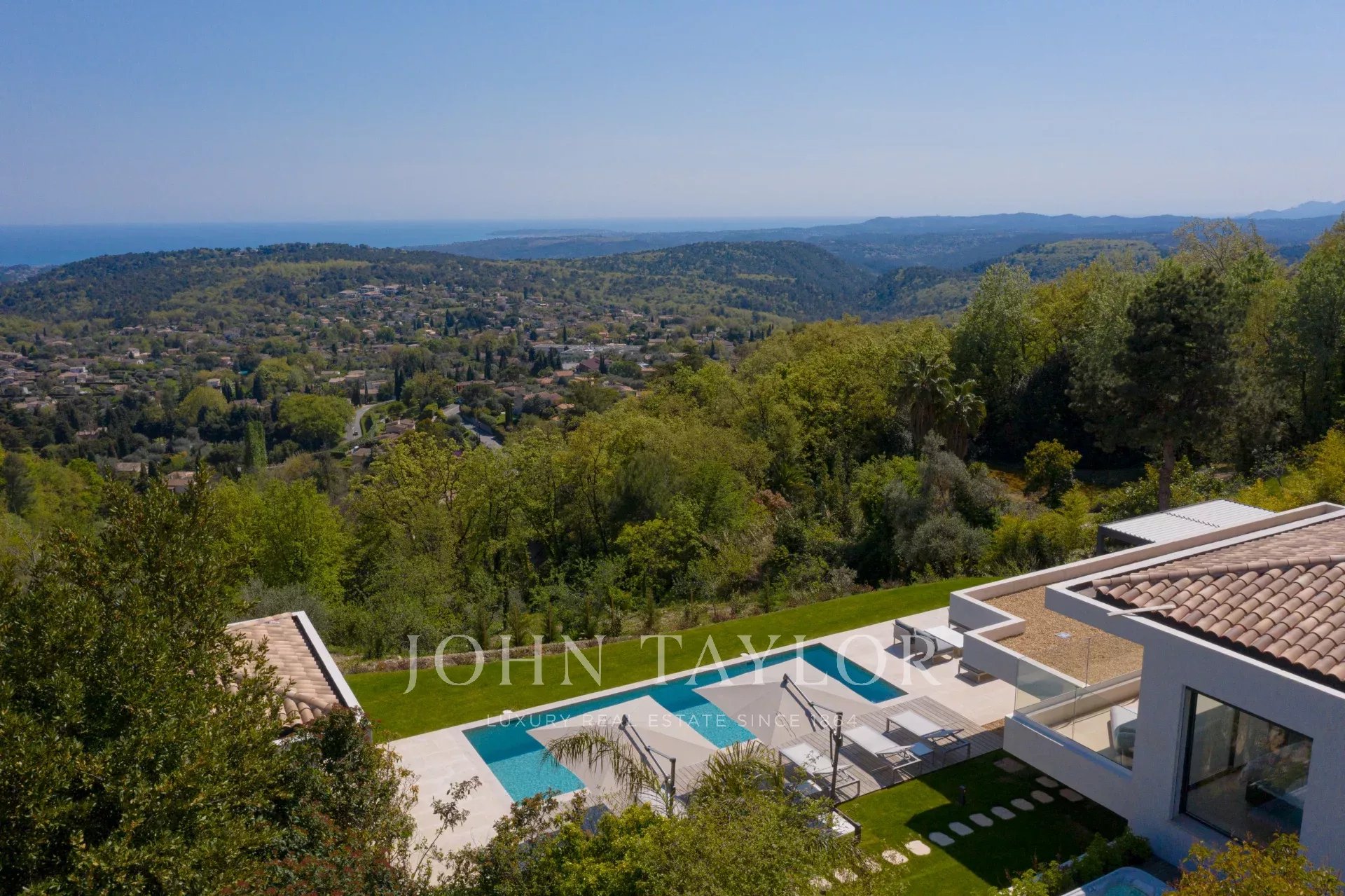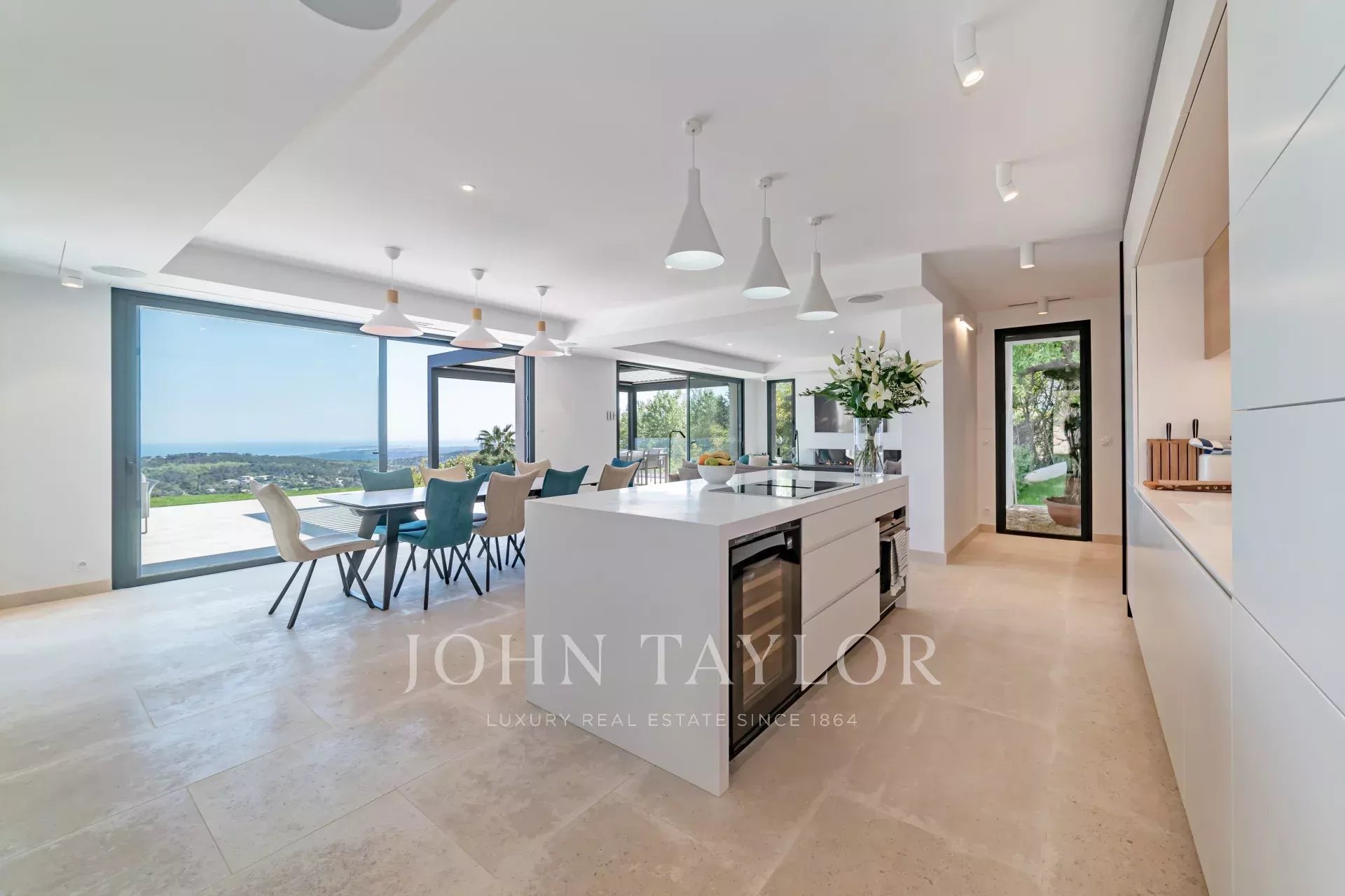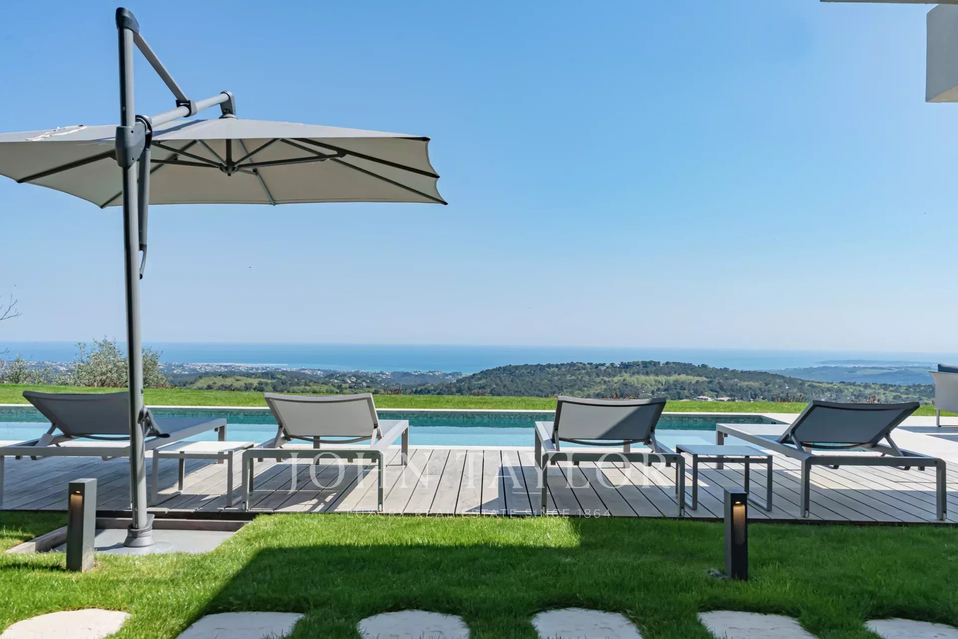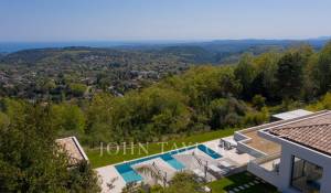 En position dominante sur les hauteurs de Vence, cette splendide villa propose 5 chambres avec salle de bains/douches ensuite, une pièce de vie très lumineuse avec une cuisine ouverte donnant directement accès à une très belle terrasse.