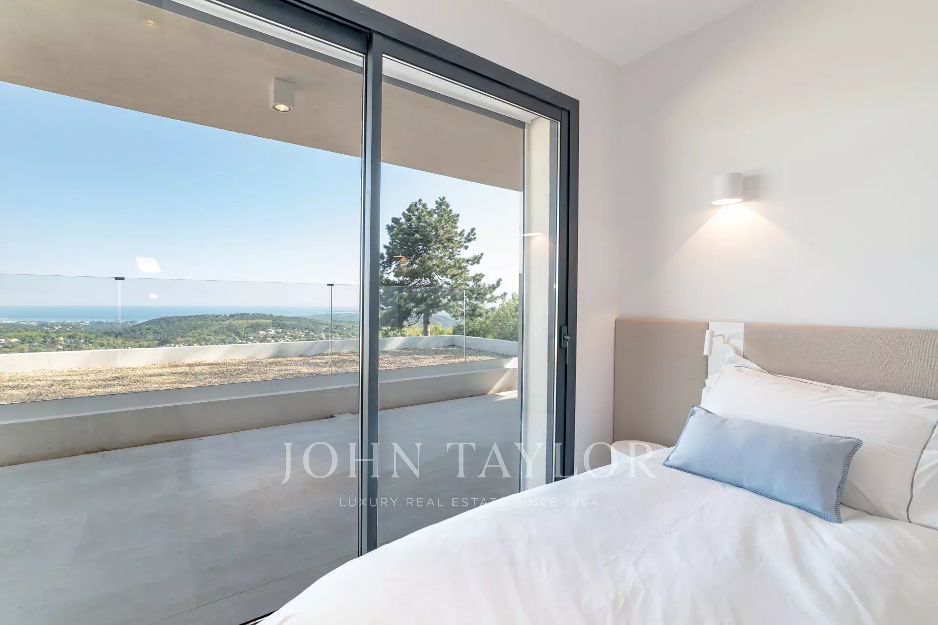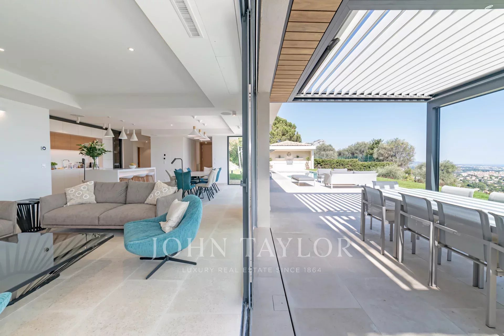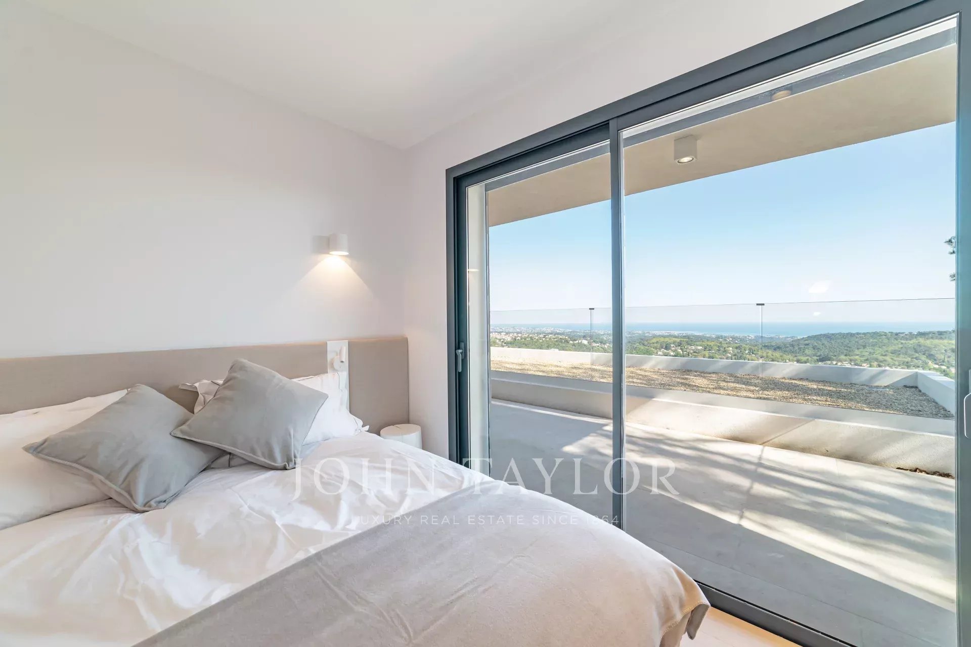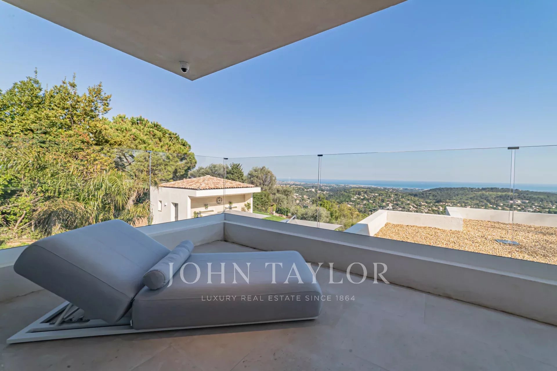 En position dominante sur les hauteurs de Vence, cette splendide villa propose 5 chambres avec salle de bains/douches ensuite, une pièce de vie très lumineuse avec une cuisine ouverte donnant directement accès à une très belle terrasse.