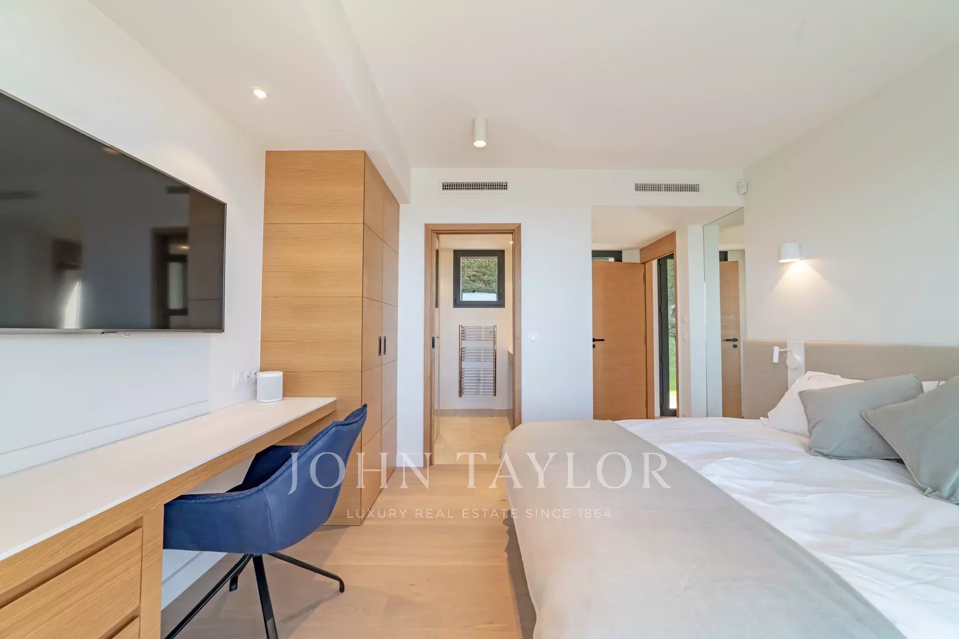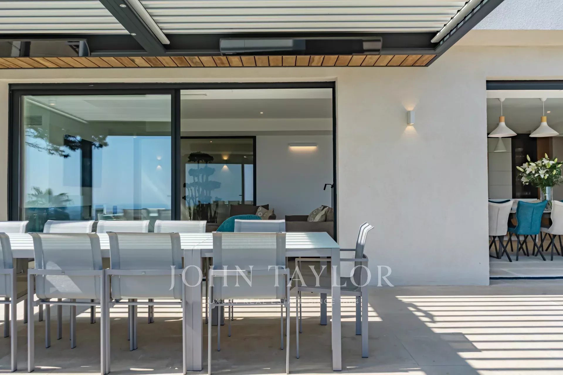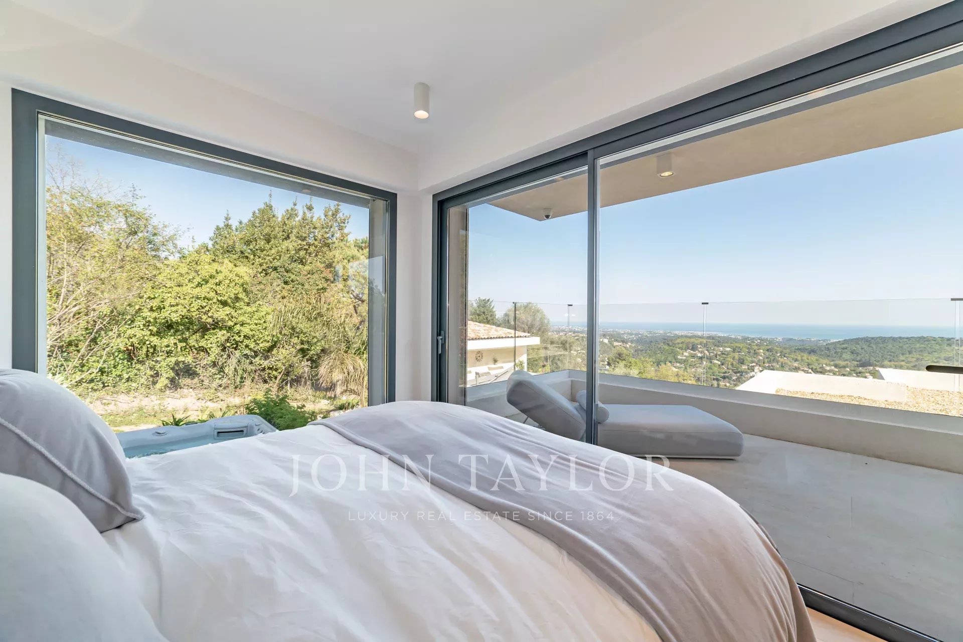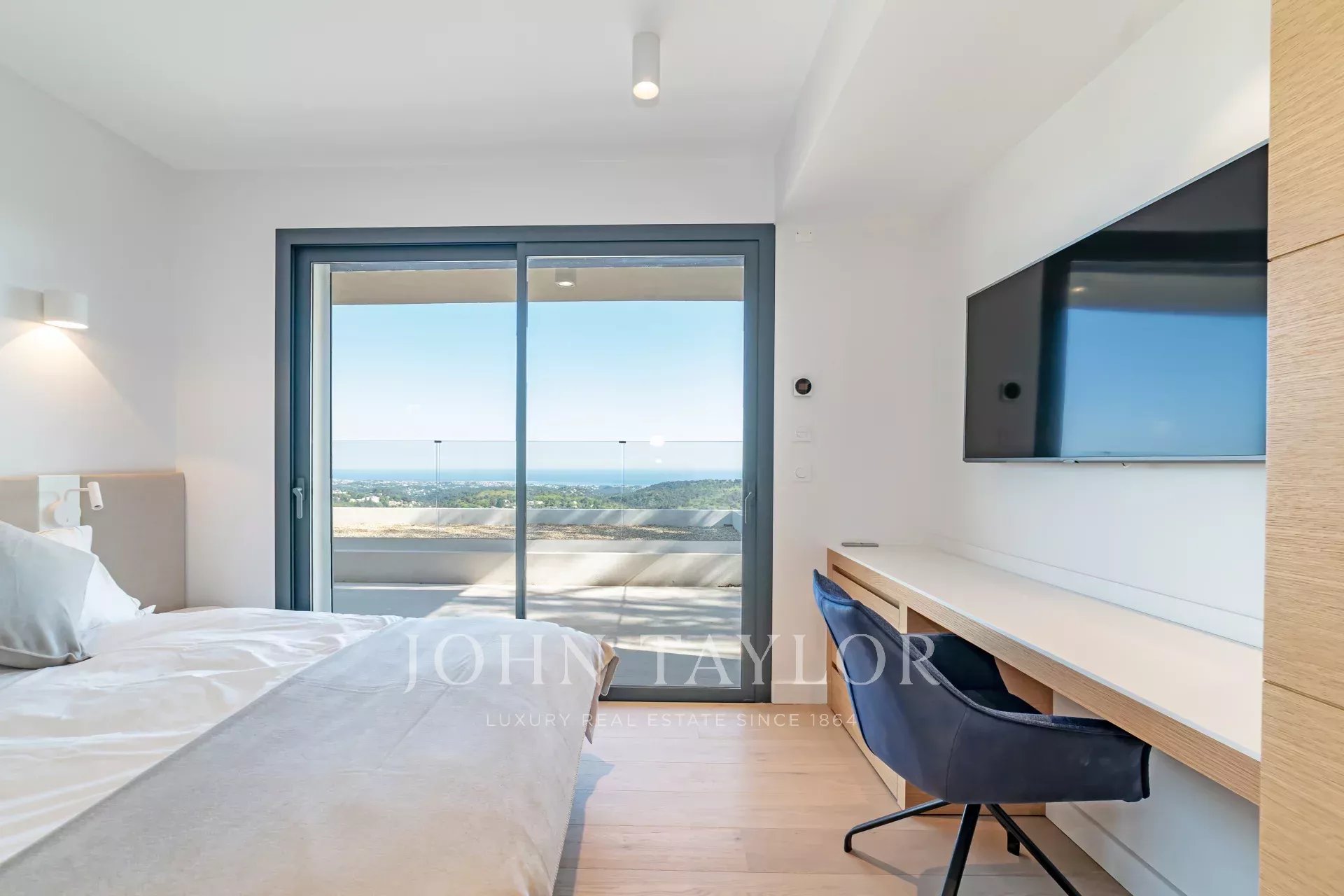 En position dominante sur les hauteurs de Vence, cette splendide villa propose 5 chambres avec salle de bains/douches ensuite, une pièce de vie très lumineuse avec une cuisine ouverte donnant directement accès à une très belle terrasse.