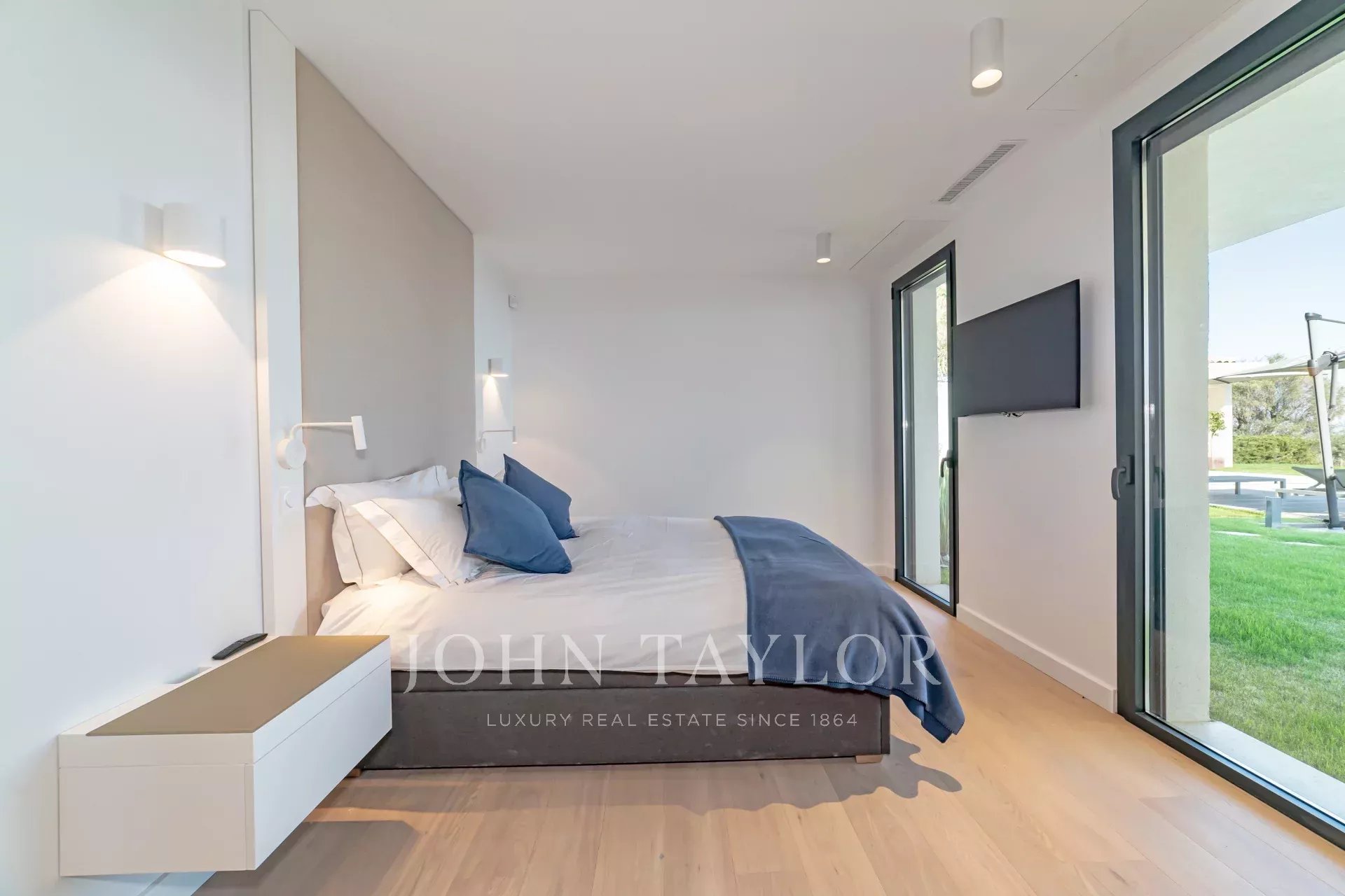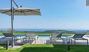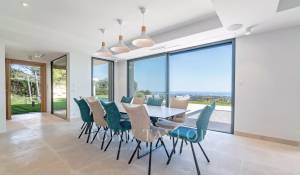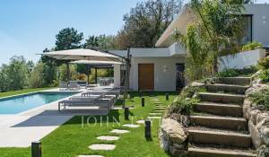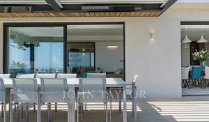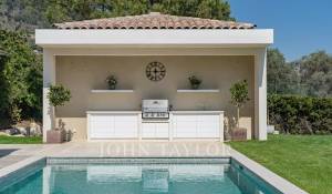 A l’extérieur une piscine avec vue panoramique sur la Méditerranée, un pool house avec canapé convertible, un Jacuzzi et un terrain de pétanque complètent cette superbe villa de vacances.