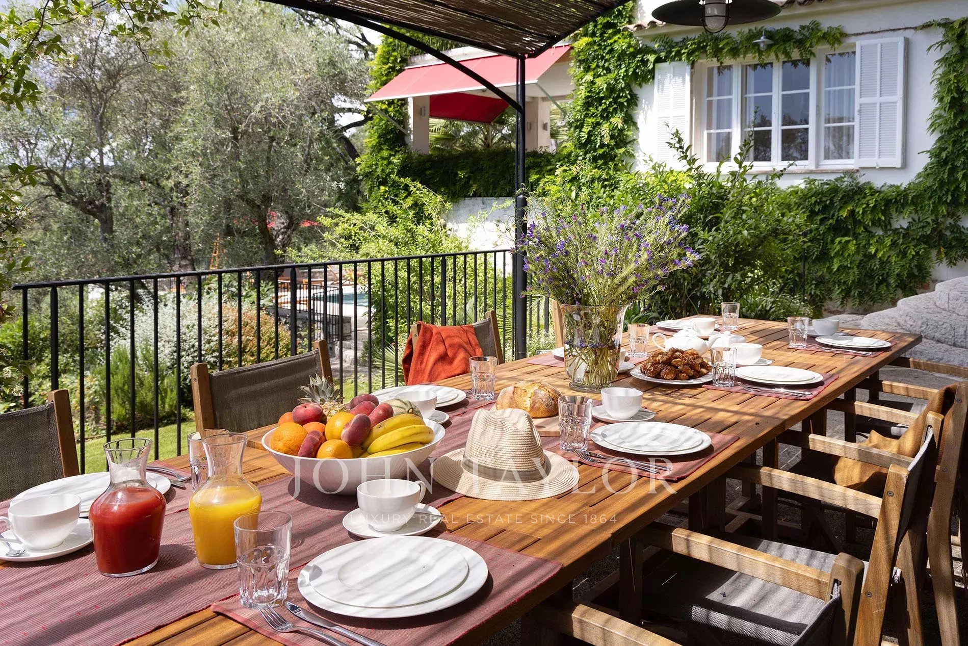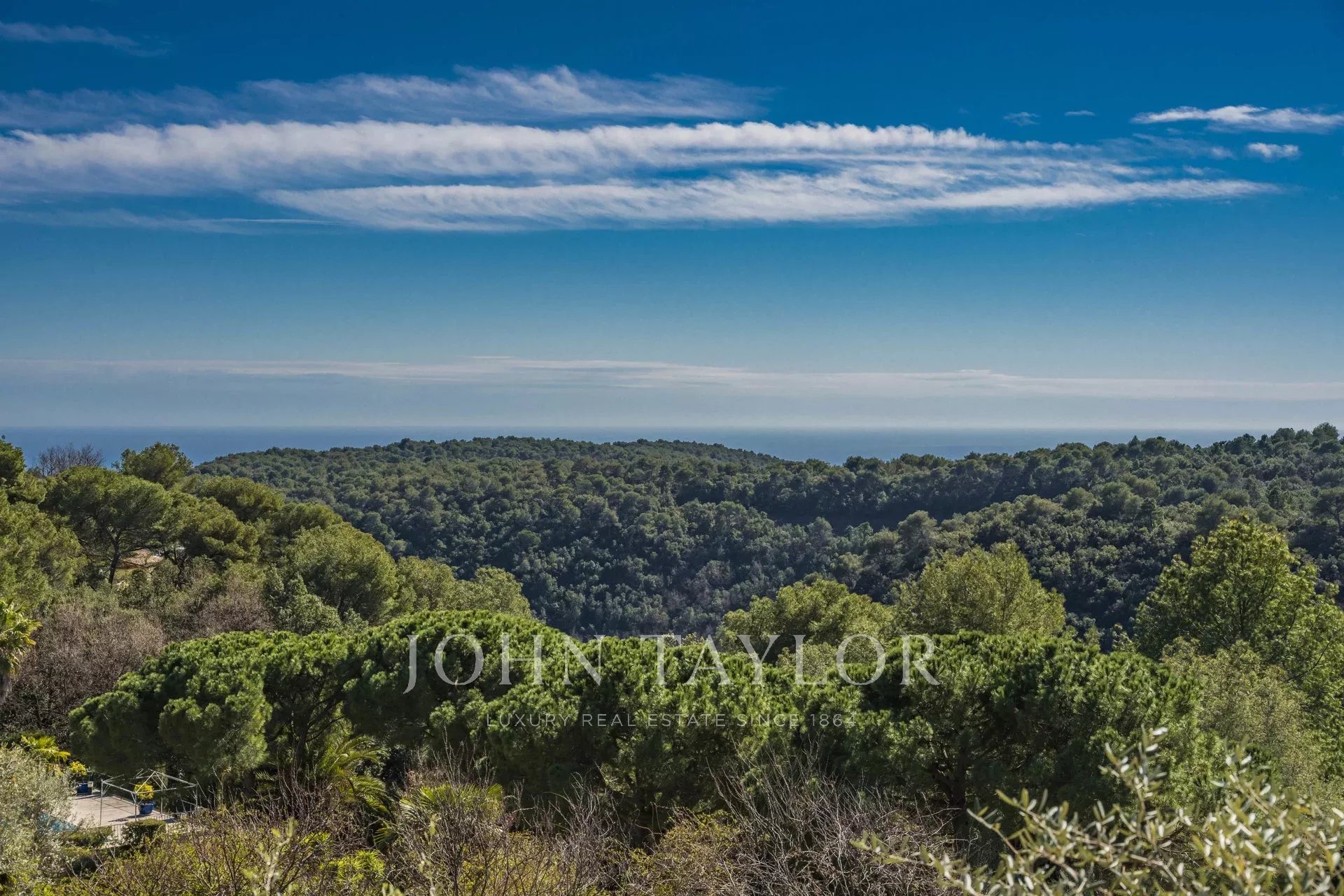 La propriété offre un emplacement exceptionnel situé entre la chaleur de la plaine côtière et la fraîcheur relative des contreforts des Alpes d'azur.