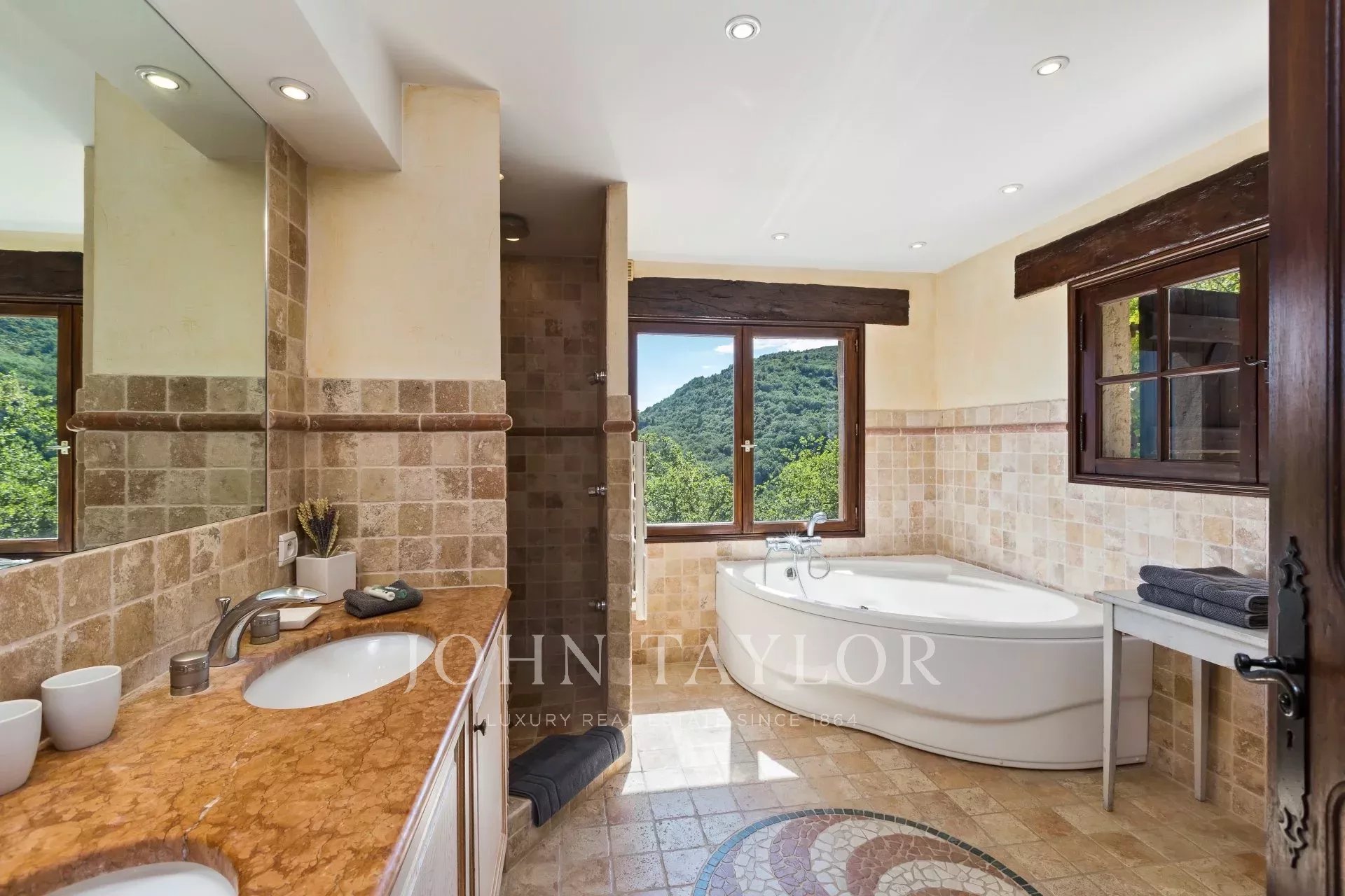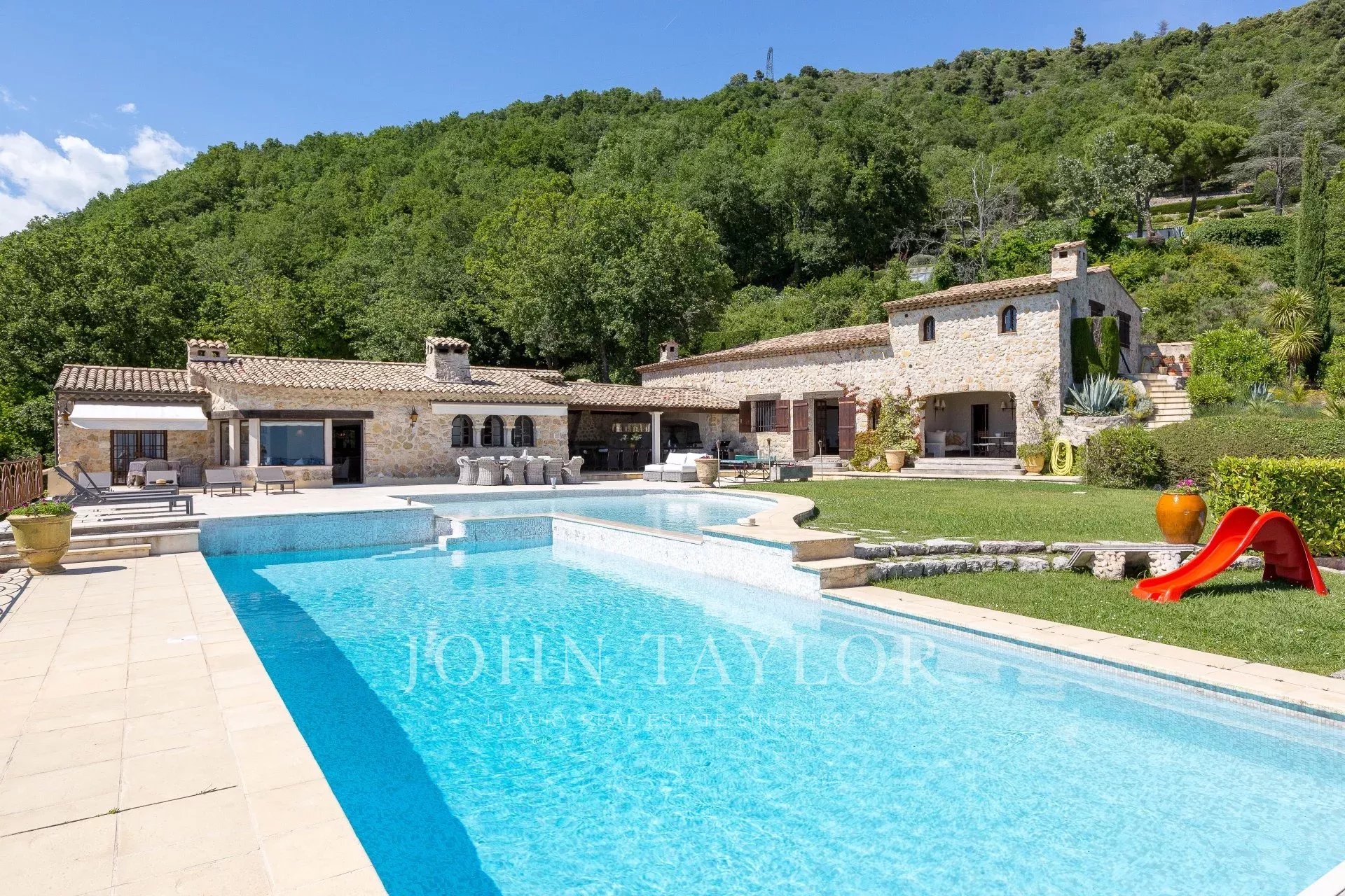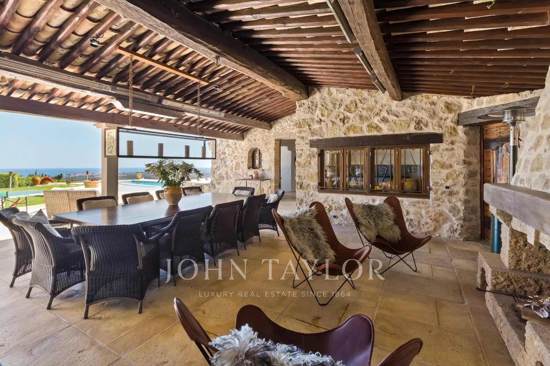 On ne peut que tomber sous le charme de cette sublime propriété en pierres, qui grâce sa position dominante dans les hauteurs de Vence, bénéficie d'une vue exceptionnelle sur toute la Côte d'Azur.