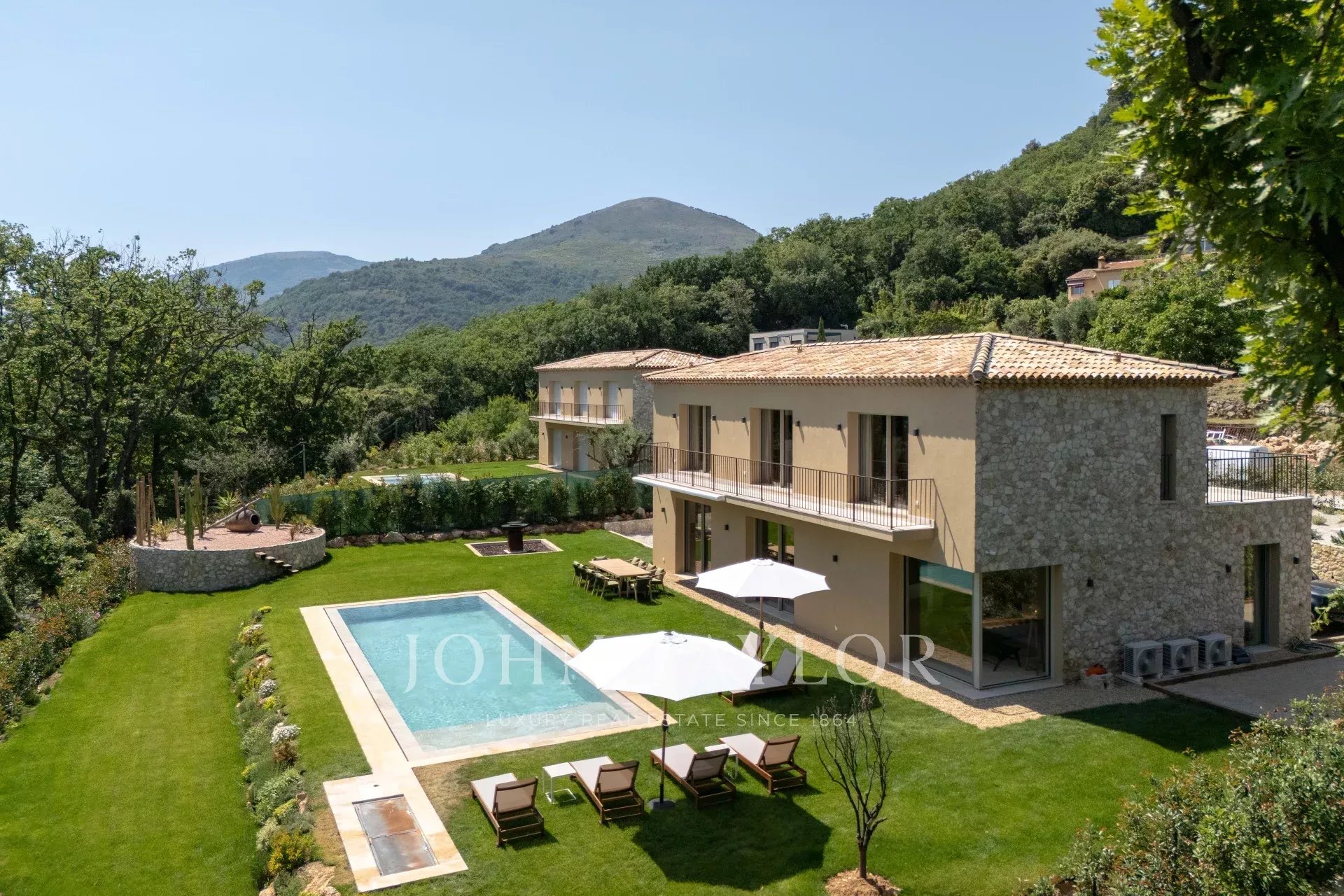 Récemment rénovée, cette propriété allie design contemporain, matériaux de qualité et prestations haut de gamme, le tout à seulement quelques minutes du centre de Vence et de ses commodités.