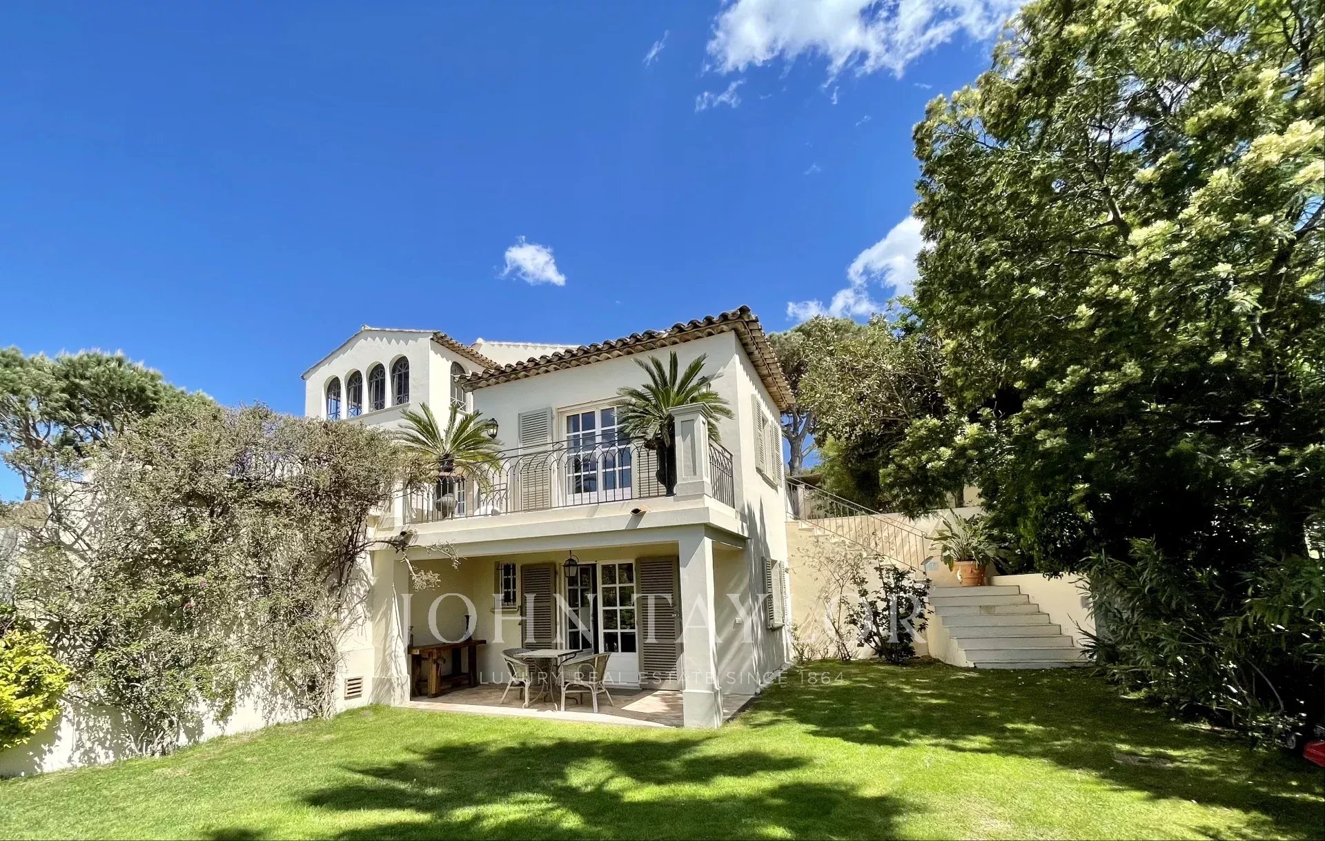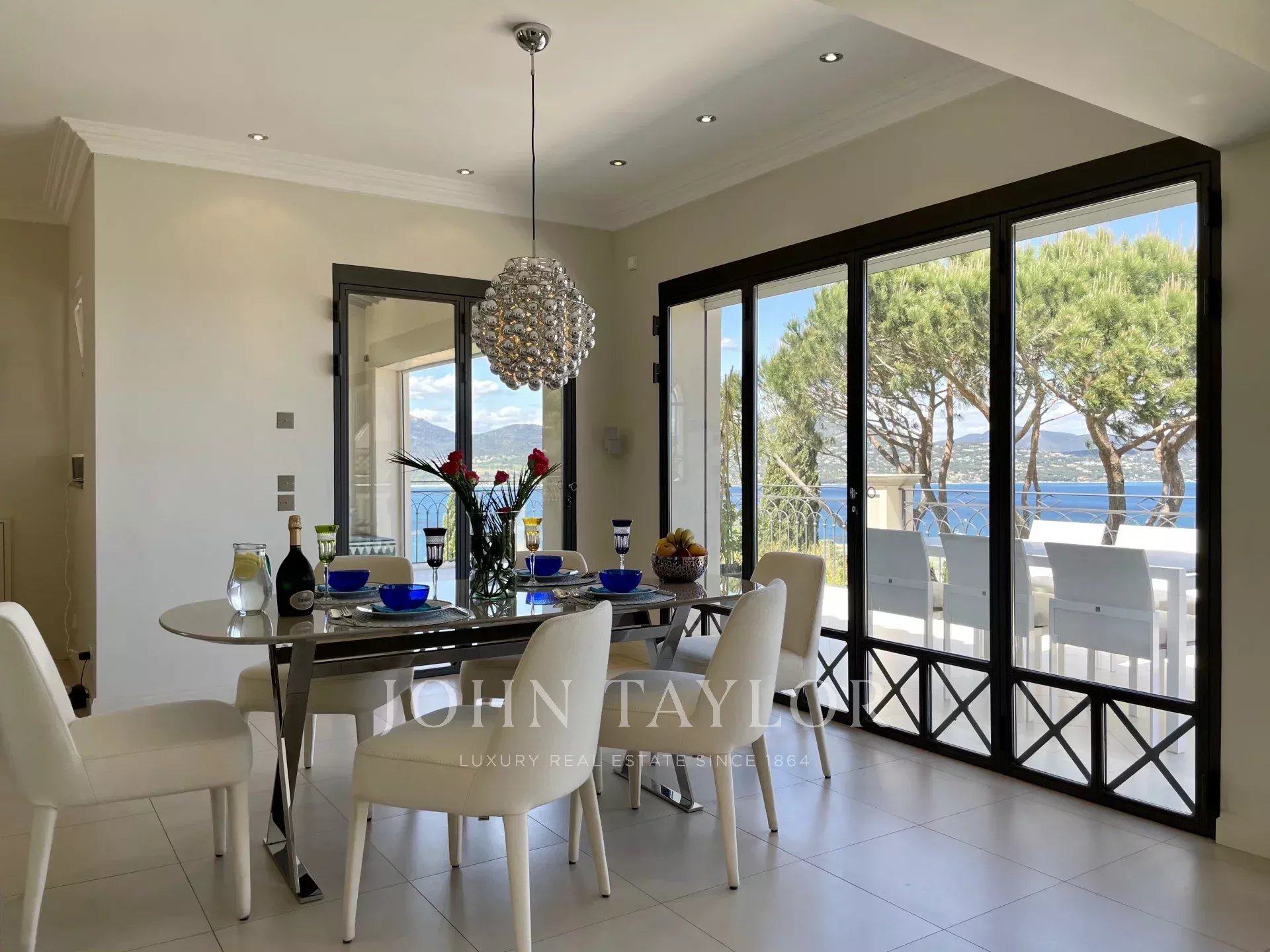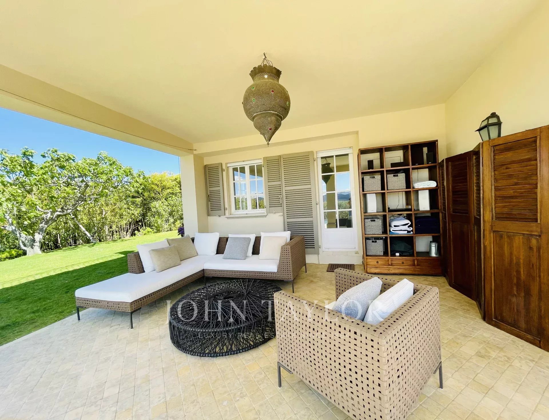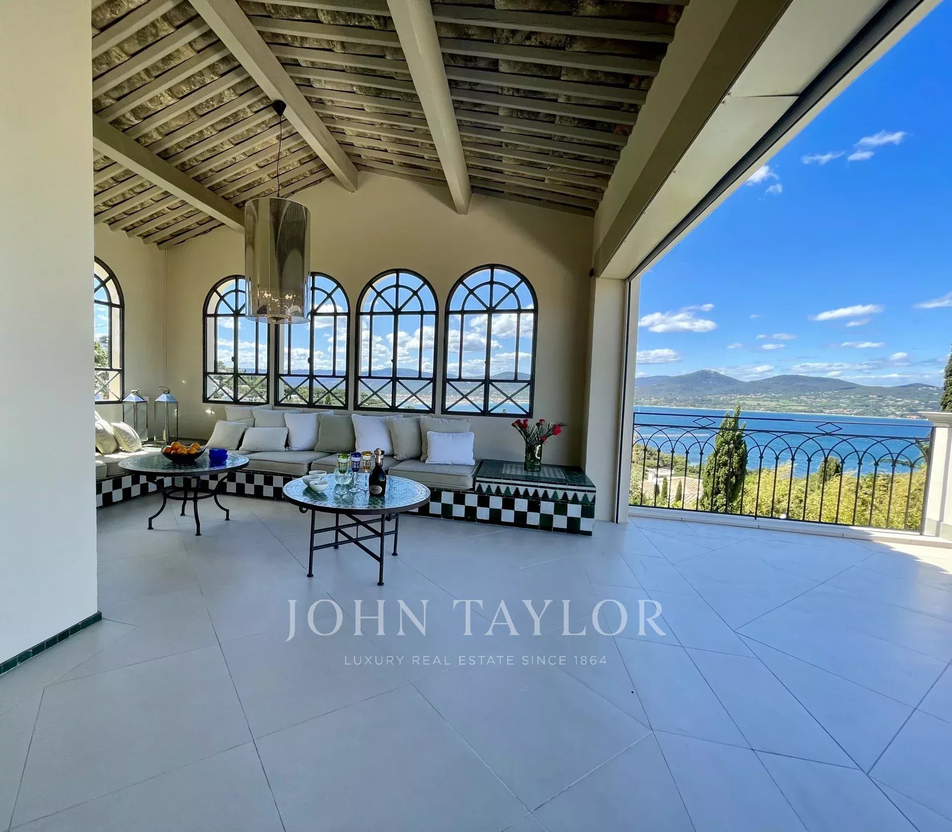 Située au calme, cette très belle villa offre une double vue mer sur Grimaud et Saint-Tropez.