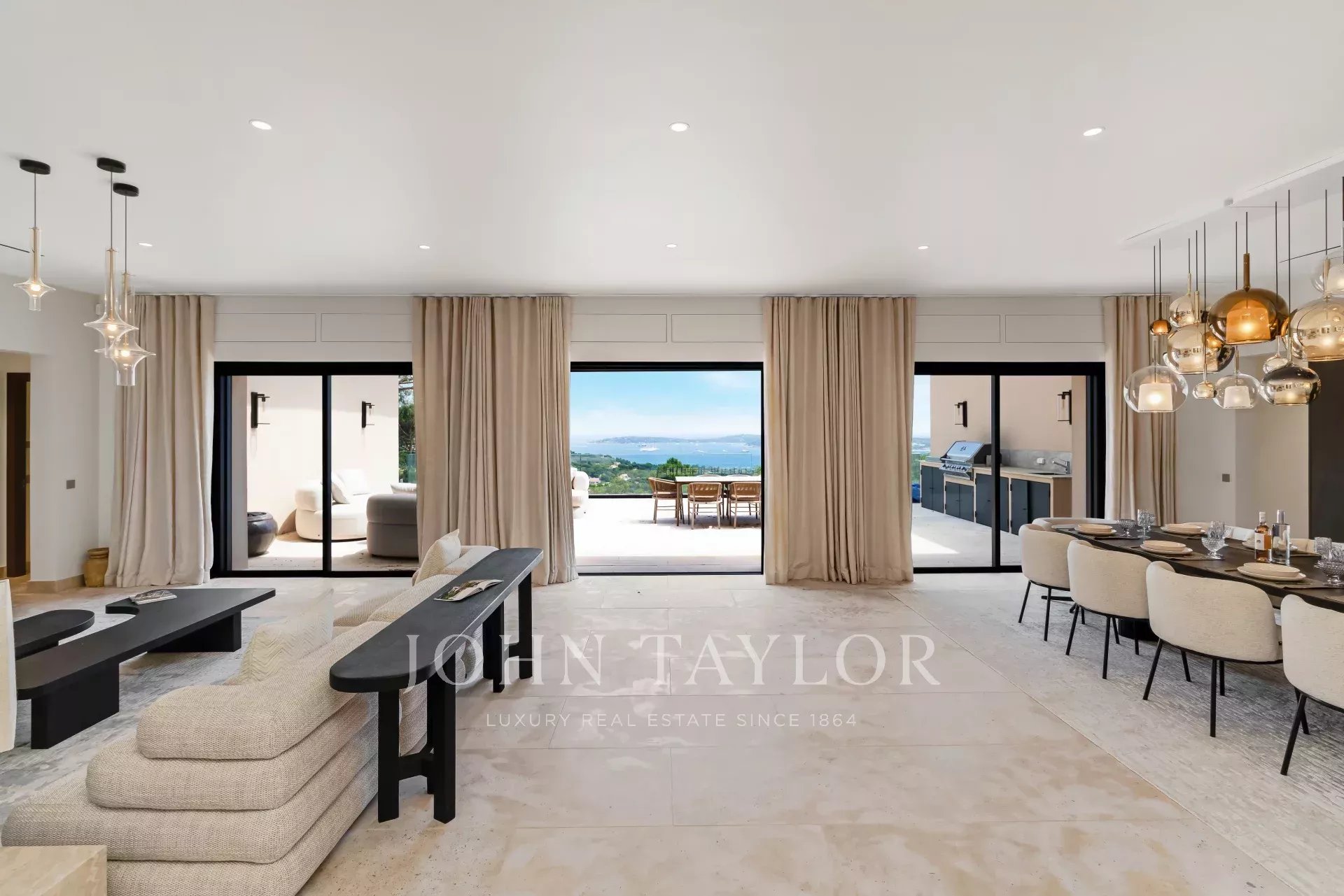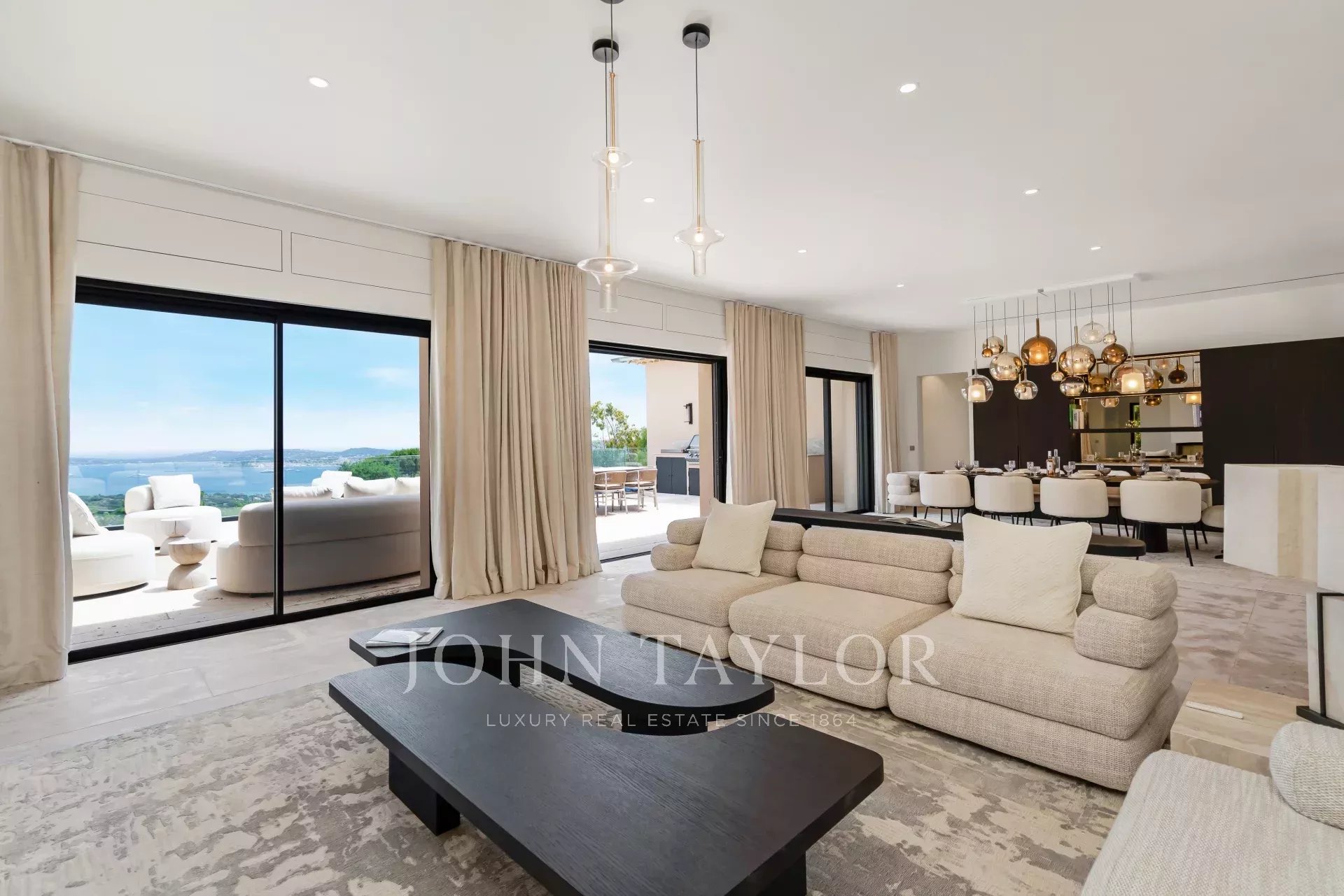 - Salon TV avec grandes baies vitrées