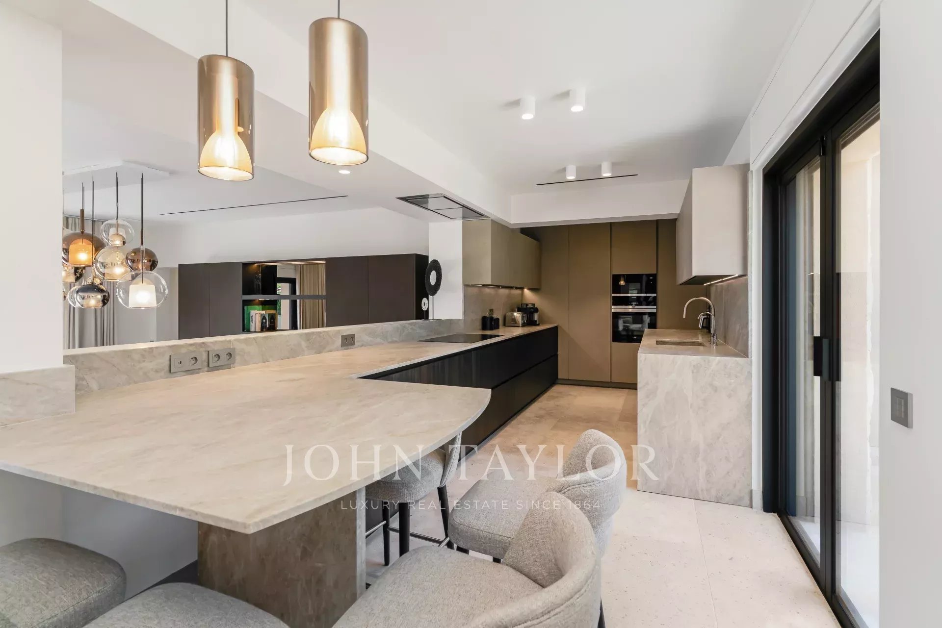 - Un salon avec TV et un bar équipé d’une cave à vin, d’un réfrigérateur et d’un lave-vaisselle