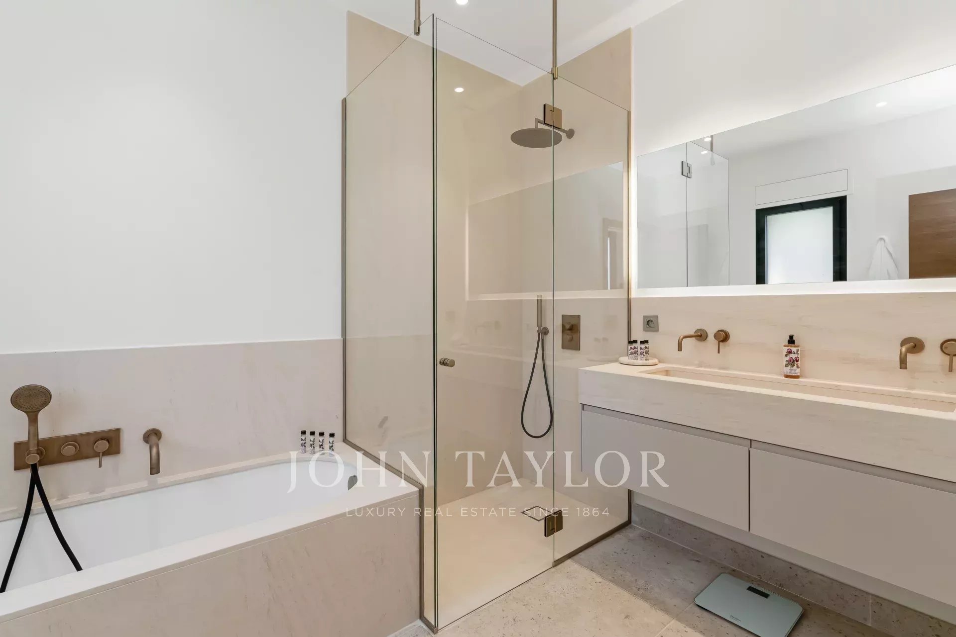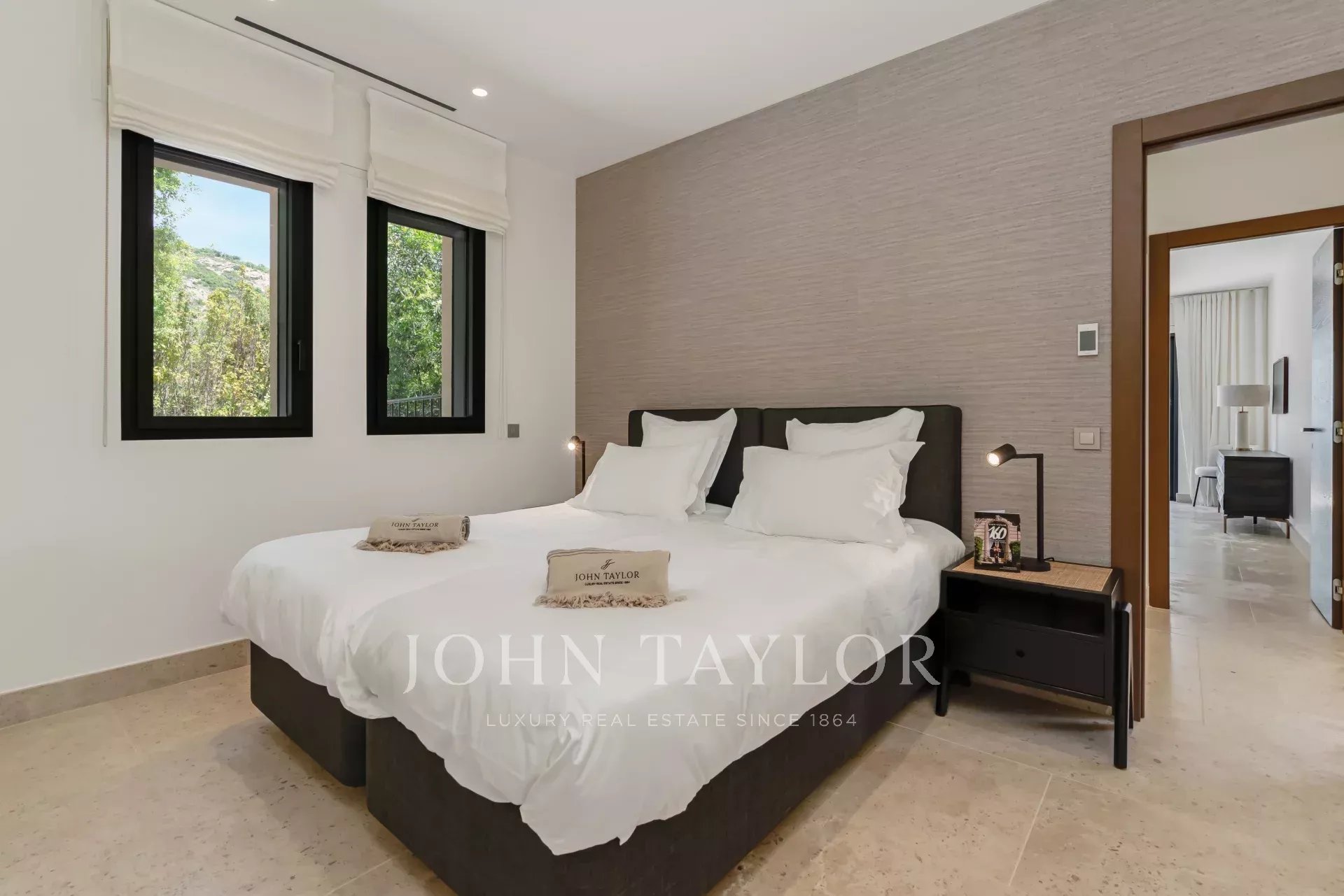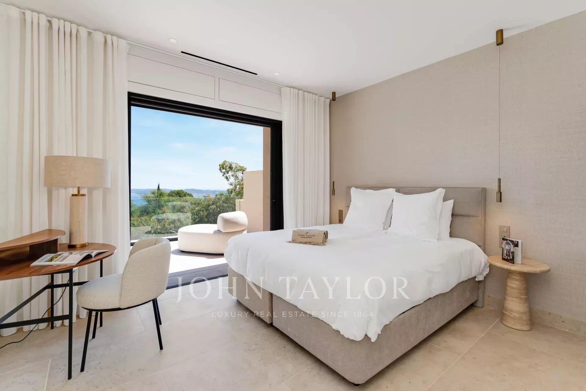 - Chambre 2 : lit 180x200, TV, salle d’eau (douche, double vasque, WC) et accès direct à la terrasse