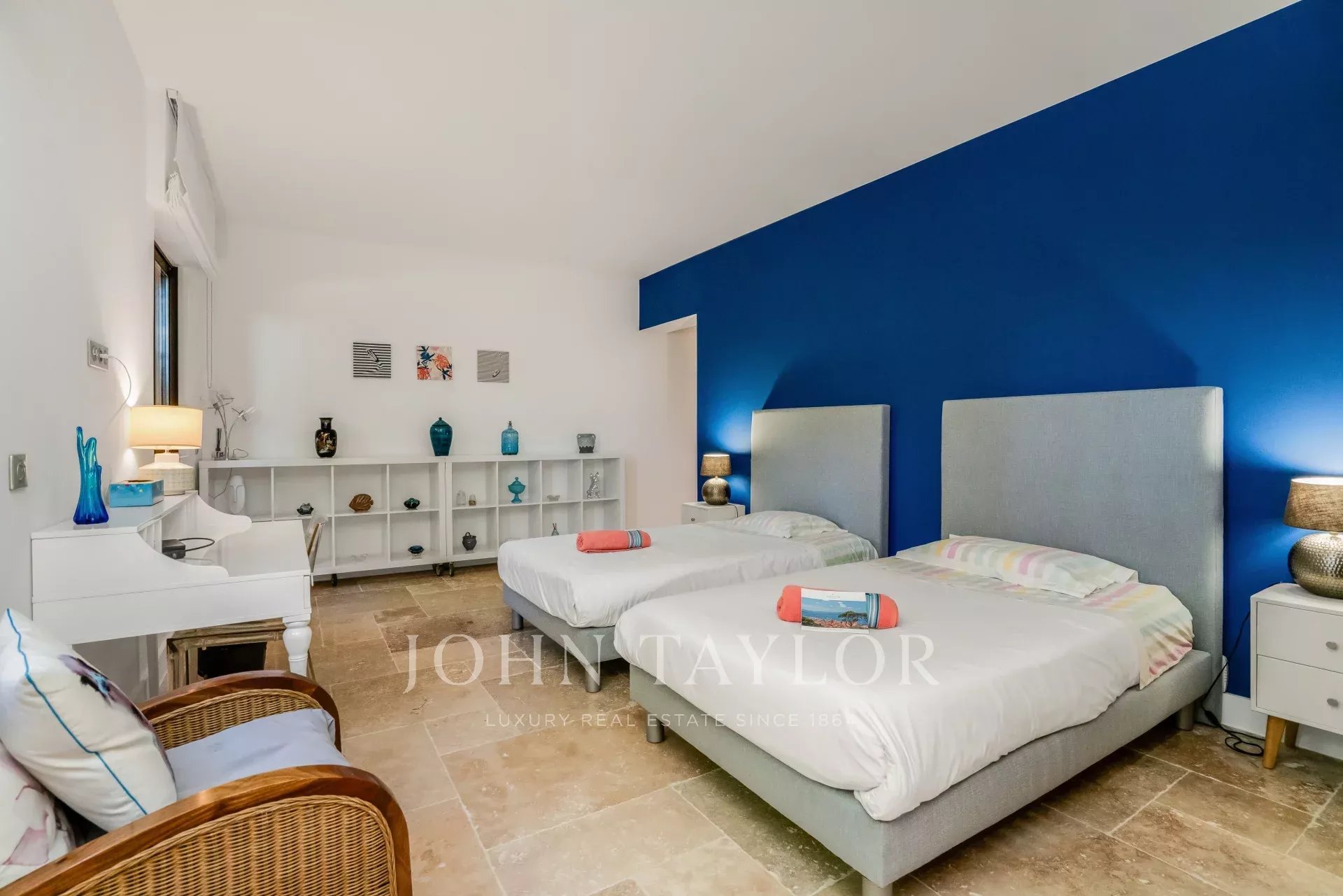 - Une chambre avec un lit (160x200), TV, une salle de douche avec double vasque et WC séparé, dressing avec coffre-fort.