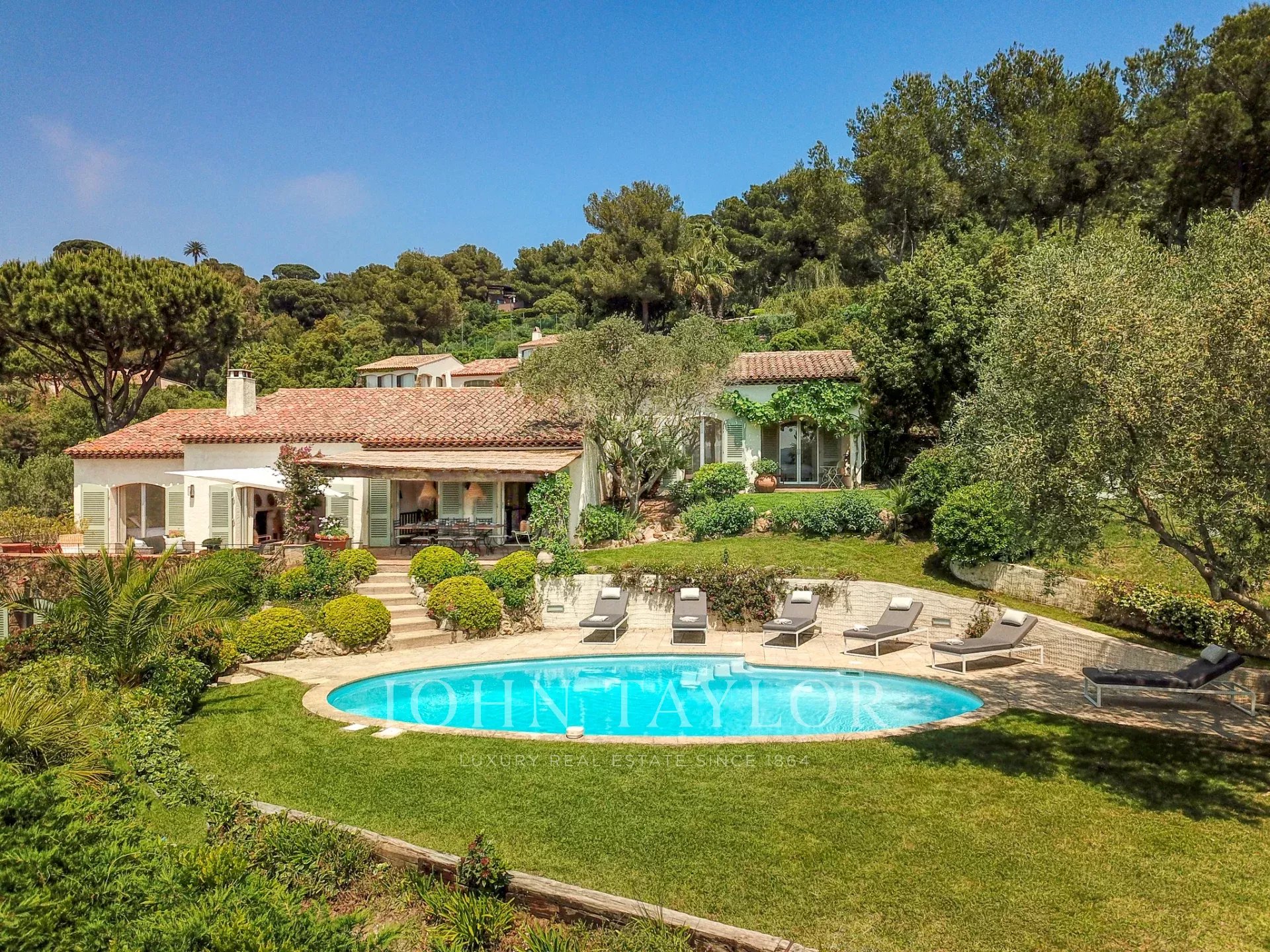 Très bel emplacement pour cette villa de vacances située dans un Domaine privé avec un accès rapide aux plages de Pampelonne elle comprend sur 3 niveaux: