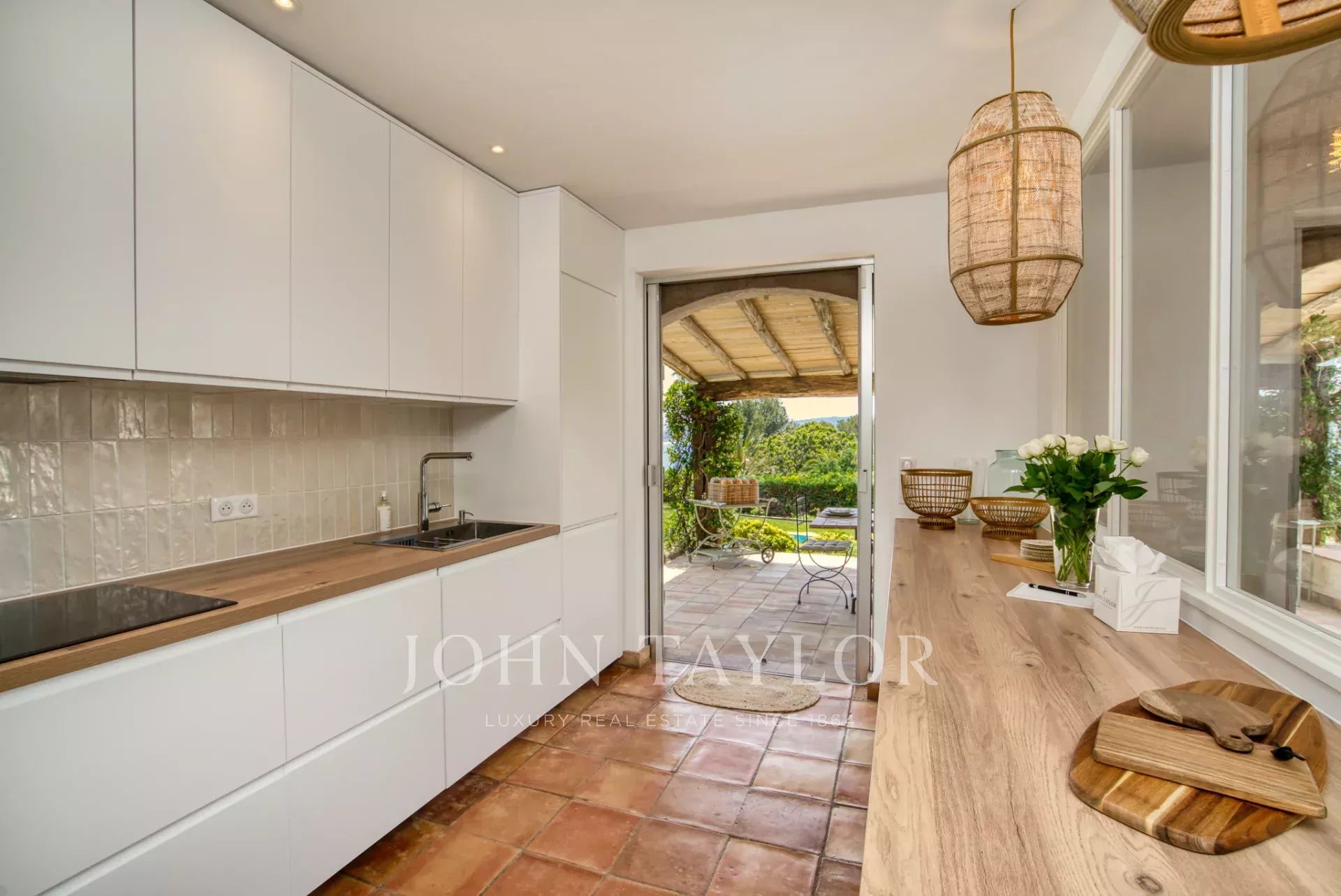 - une cuisine équipée ouvrant sur une terrasse couverte