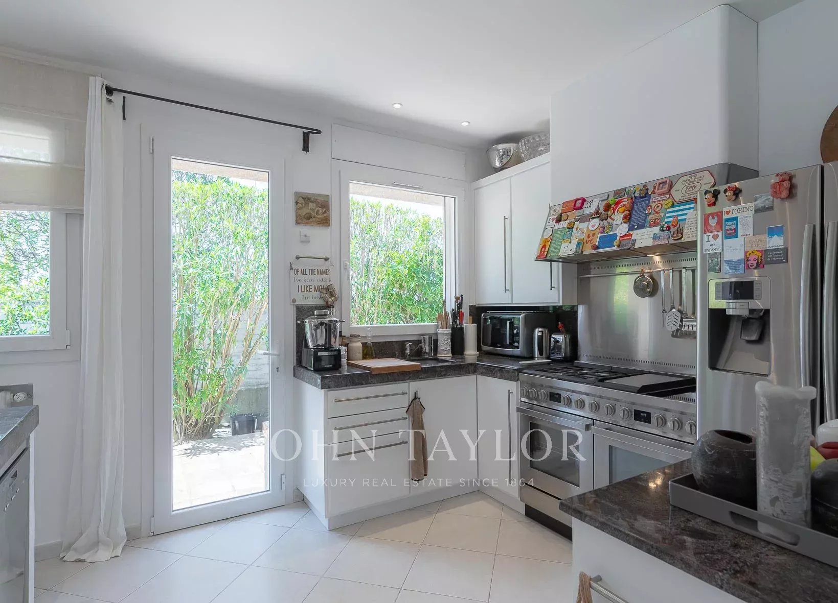 - Une cuisine ouverte sur la sale à manger et la terrasse couverte a l'abri du vent
