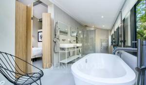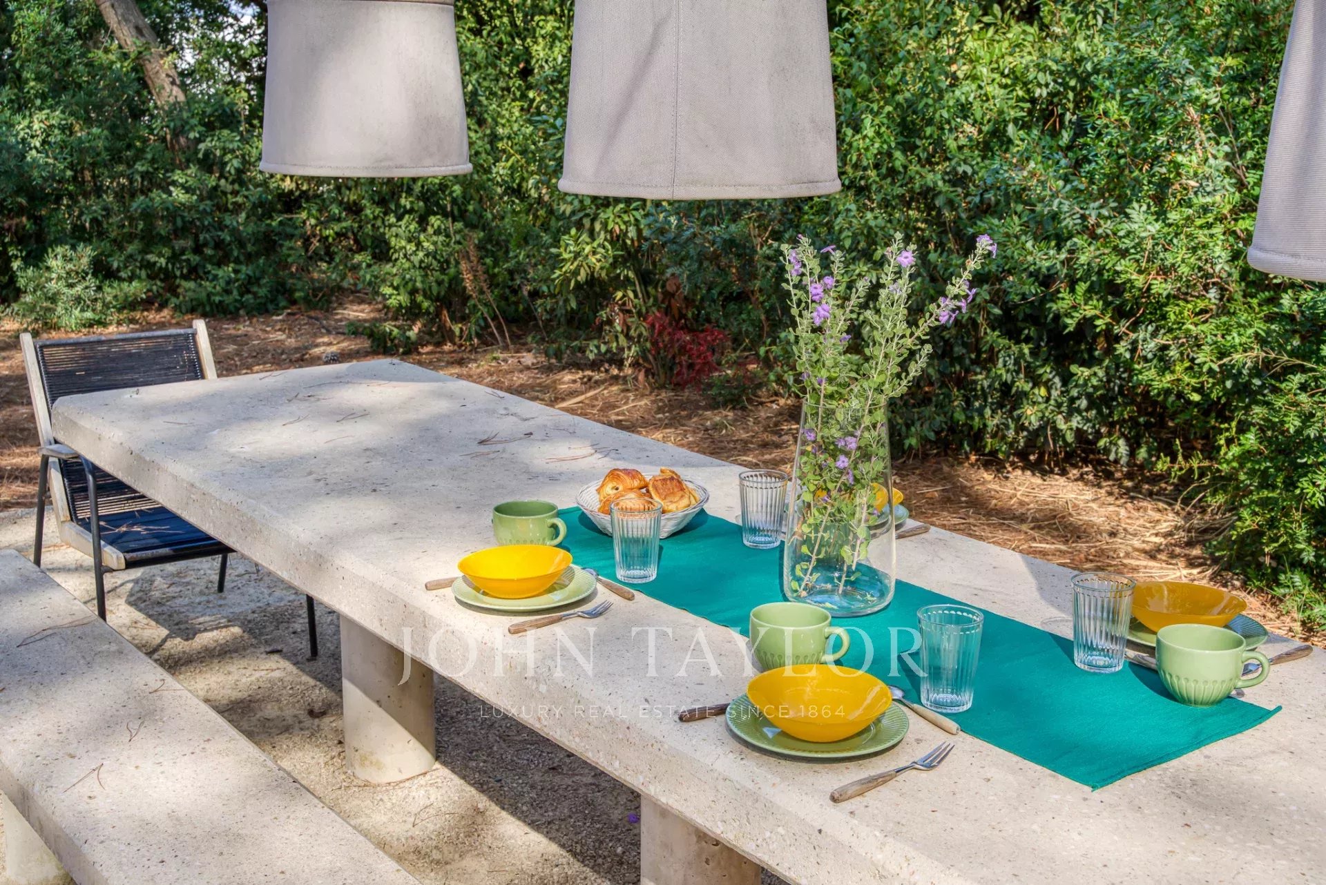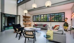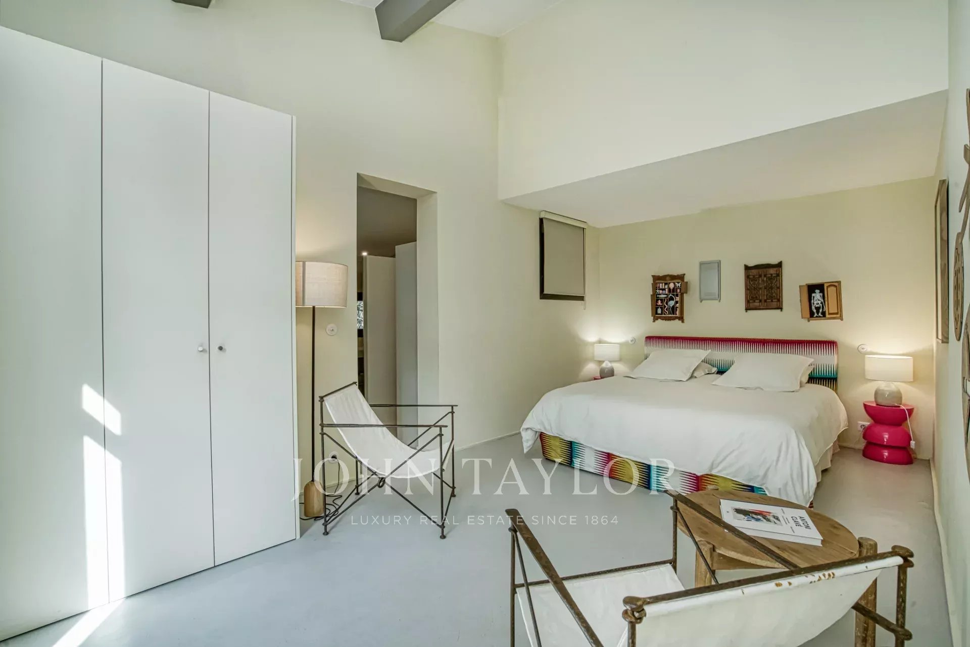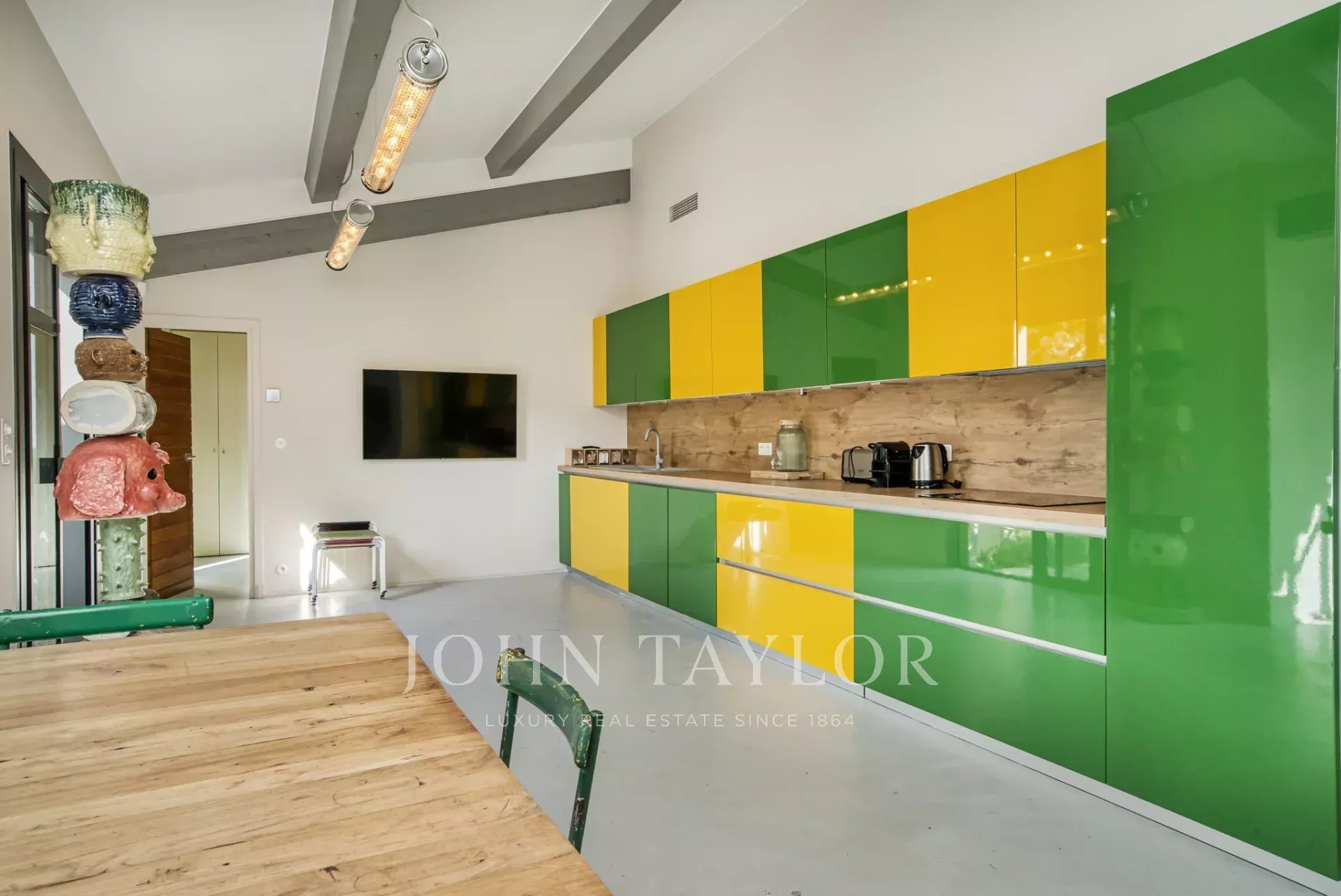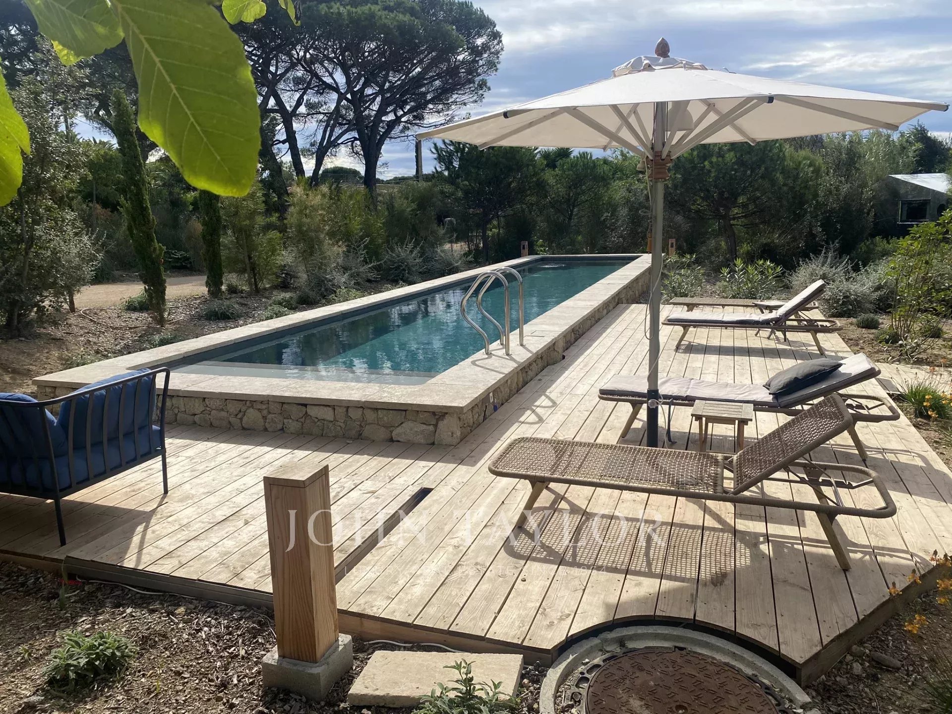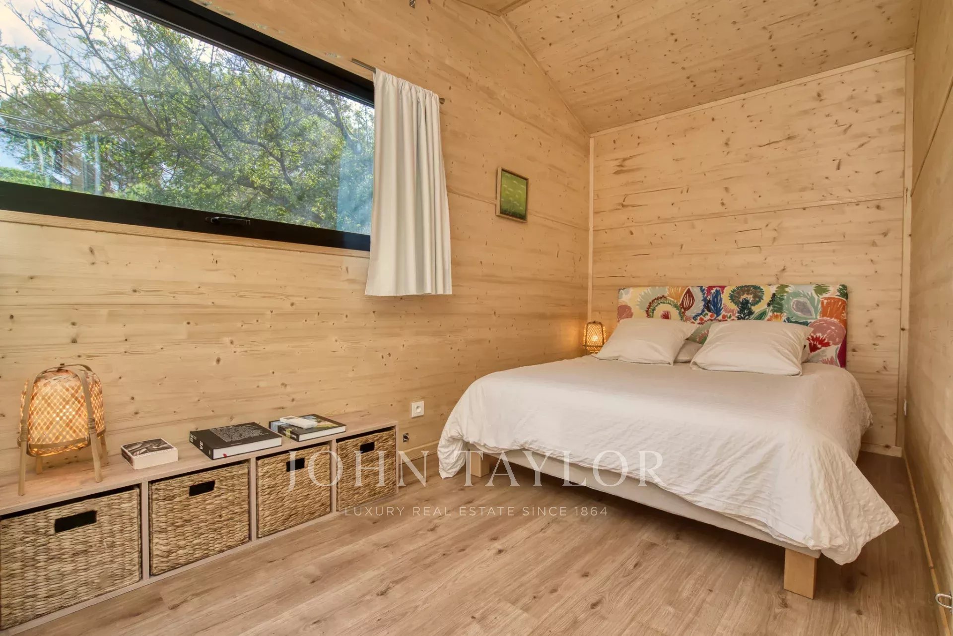 Autrefois un atelier d'artiste, cette propriété minutieusement rénovée de 220 m2 respire le caractère et le charme. Entièrement climatisée, elle bénéficie d'un jardin luxuriant s'étendant sur environ 5000 m2, créé avec soin par les renommés paysagistes "Essard et Maurieres", offrant un accès exclusif à la baie des Canoubiers.