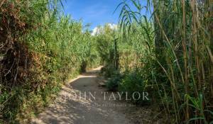 L'accès à la baie des Canoubiers se fait discrètement par un sentier caché, offrant aux résidents une entrée isolée et privilégiée vers ce havre côtier idyllique.