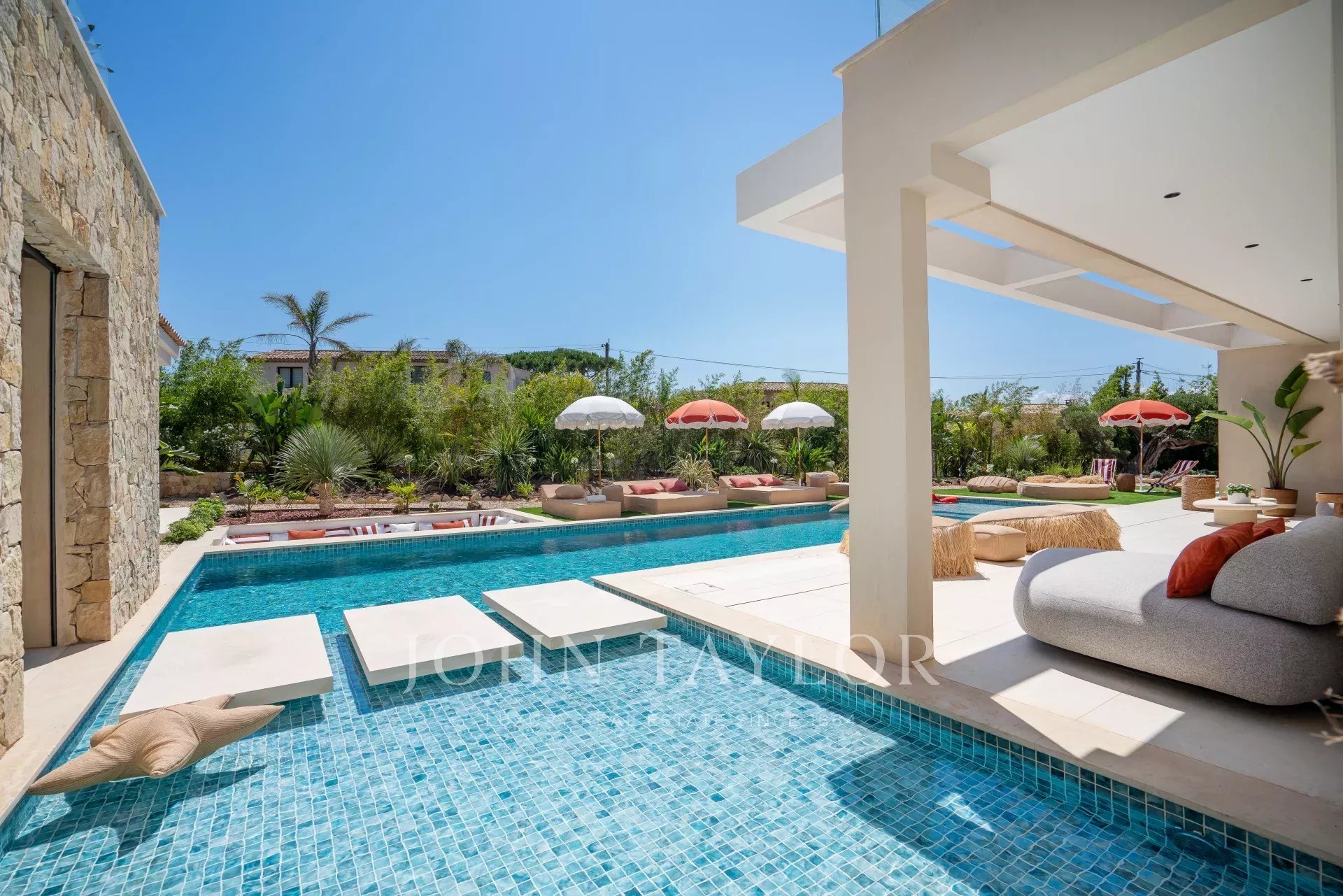 Cette villa familiale, idéalement située à proximité du célèbre village de Saint-Tropez et offrant un accès rapide à la route des plages, est un véritable havre de paix doté de prestations luxueuses et de confort moderne.