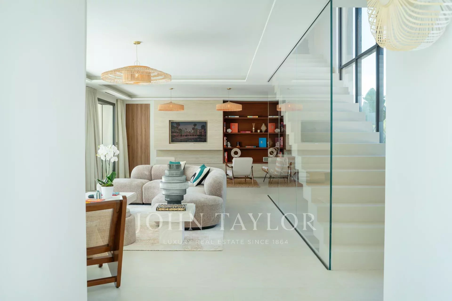 - Salon : Un vaste salon lumineux avec un espace TV, parfait pour des moments de détente en famille ou entre amis.