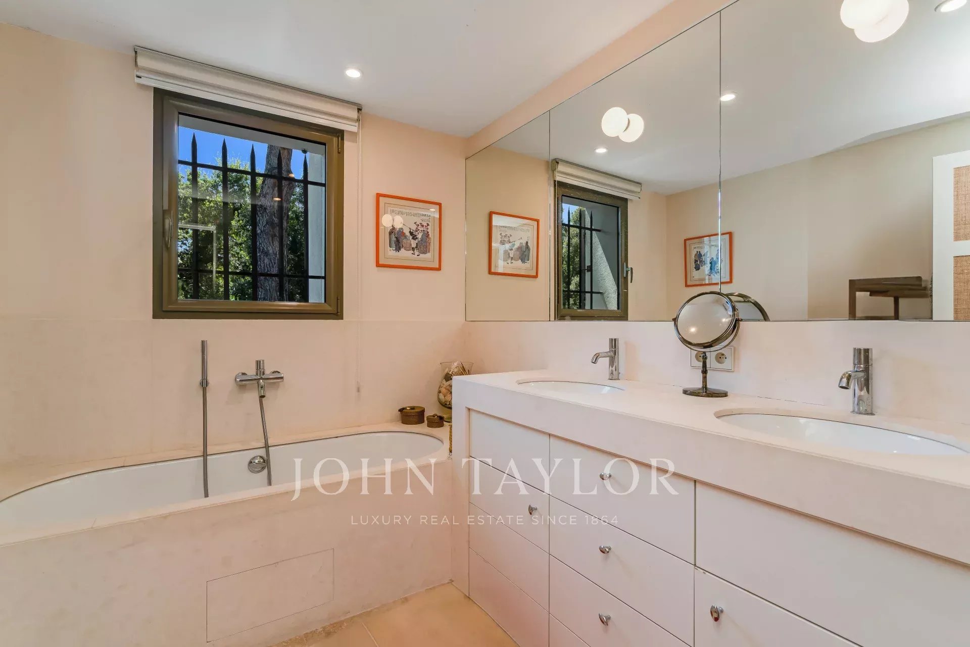 Idéalement située dans un secteur calme, à proximité du centre du village de Saint-Tropez, cette maison pleine de charme est parfaite pour des vacances en famille. Elle offre de beaux volumes extérieurs et une vue mer, le tout dans un environnement paisible.