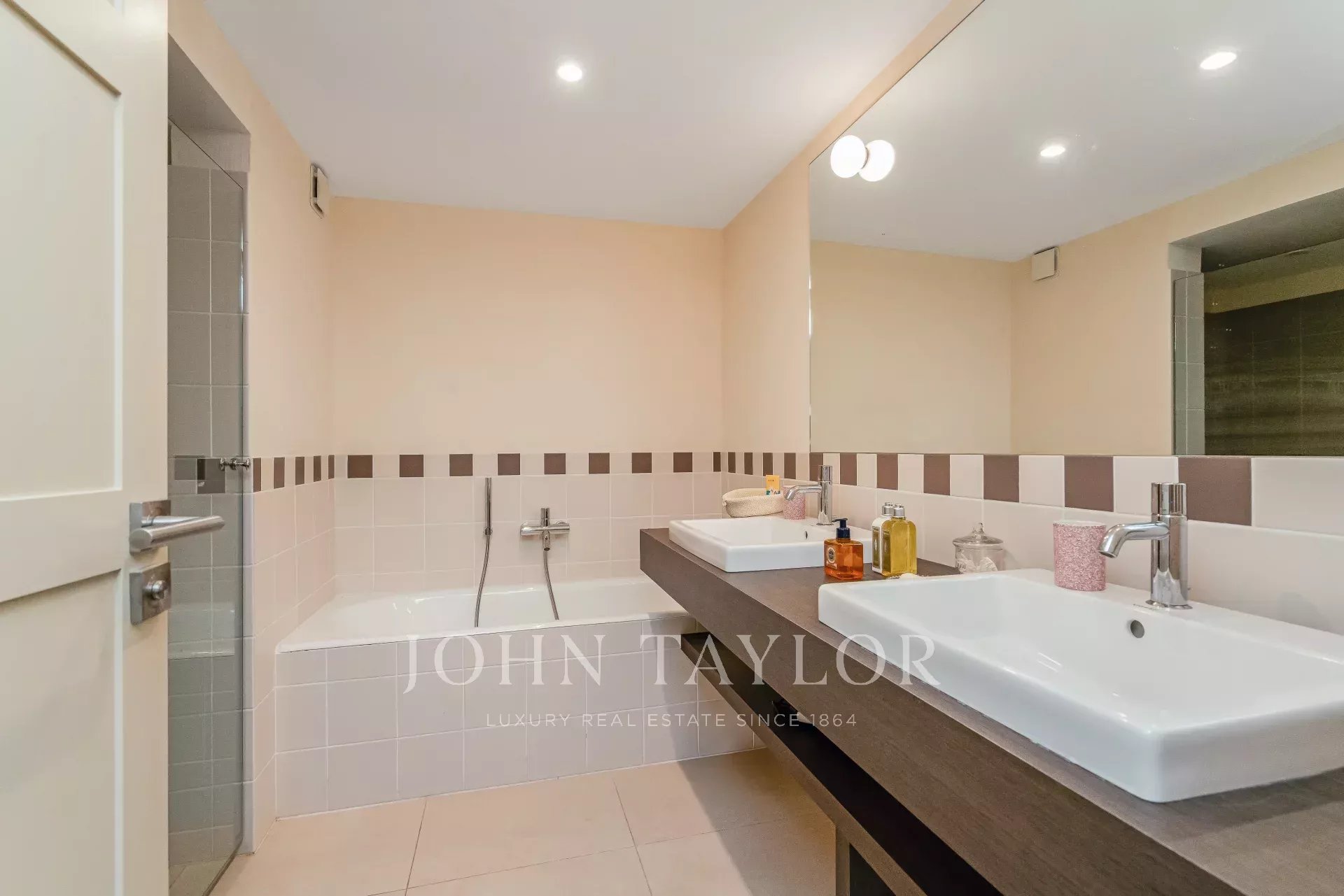 - Suite 2 : chambre parentale (lit 160x200, bureau, placards) + chambre enfants (2 lits 90x200), salle de bain (baignoire, douche, double vasque) et WC séparés