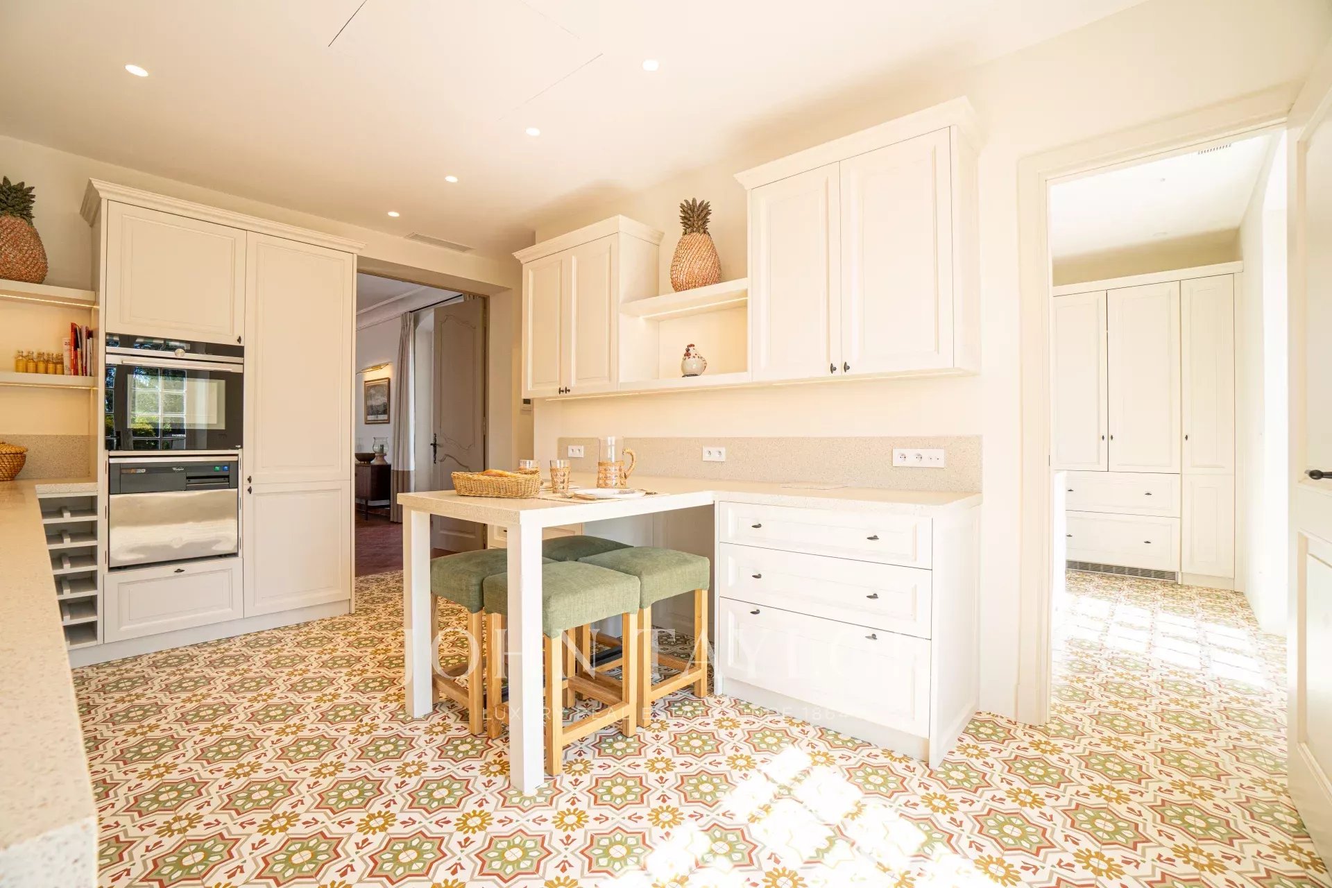 Equipements : 3 chambres pour le personnel avec 2 salles de douches, la climatisation, coffres, chambre froide, buanderie, piscine chauffée, garage, gardiens sur place, ascenseur, boulodrome.
