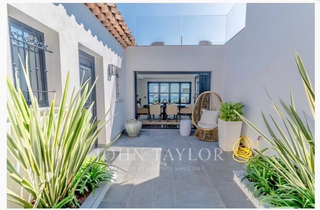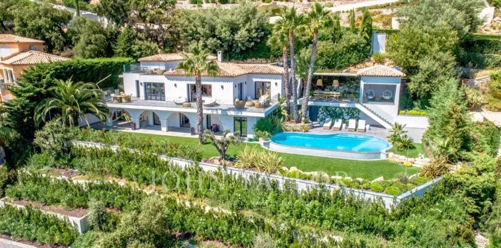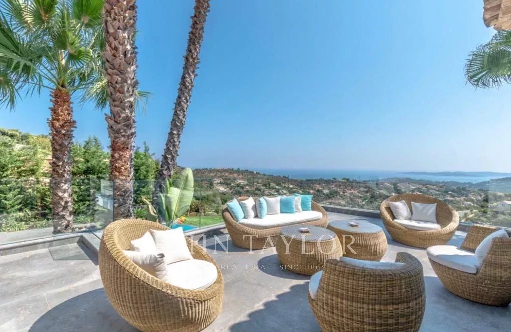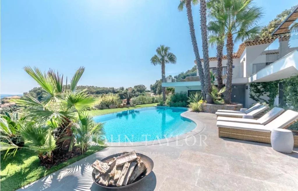 Idéalement située dans un domaine sécurisé et calme, cette propriété moderne bénéficie d'une vue sur la mer et sur le golf de Sainte-Maxime. Elle est composée :