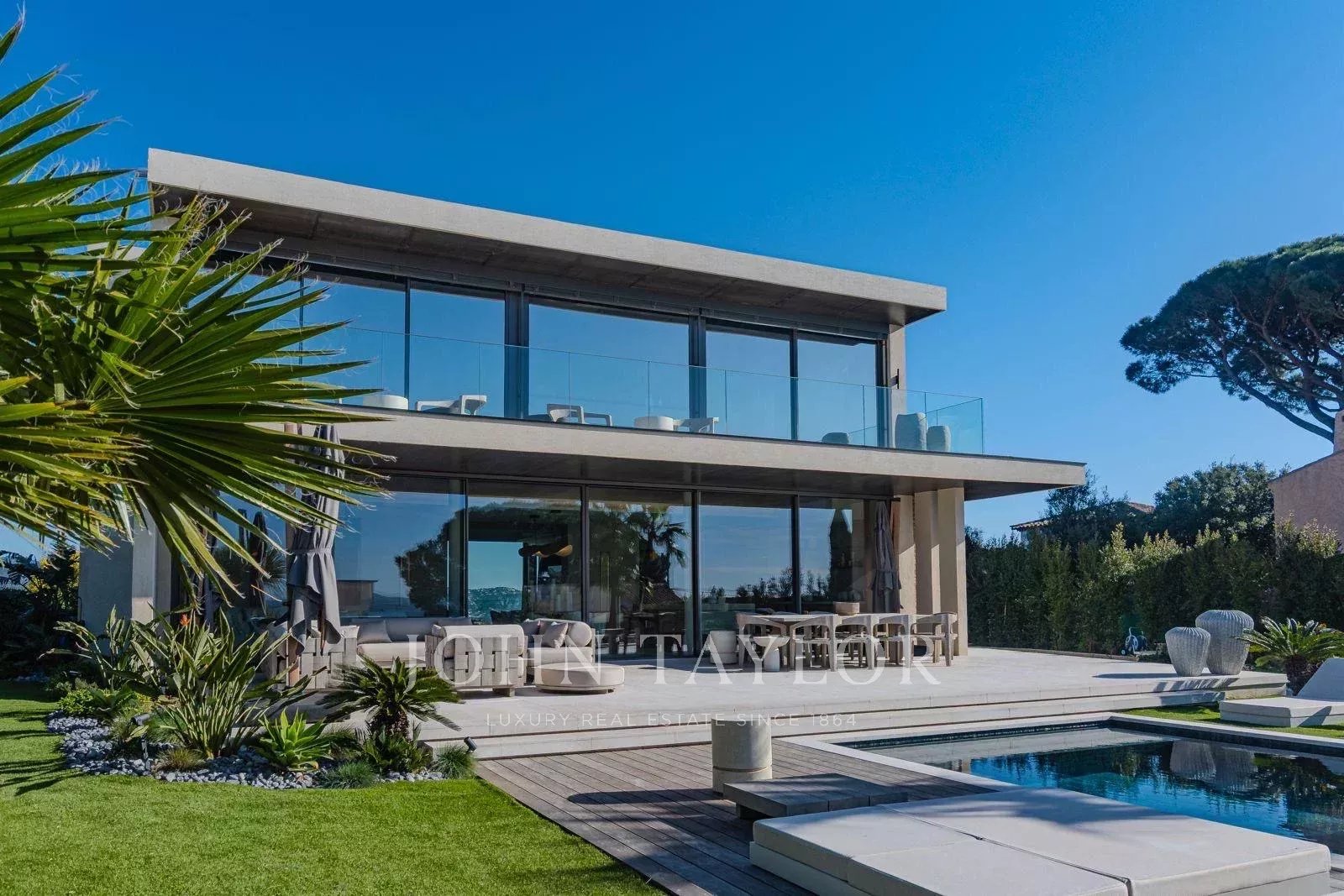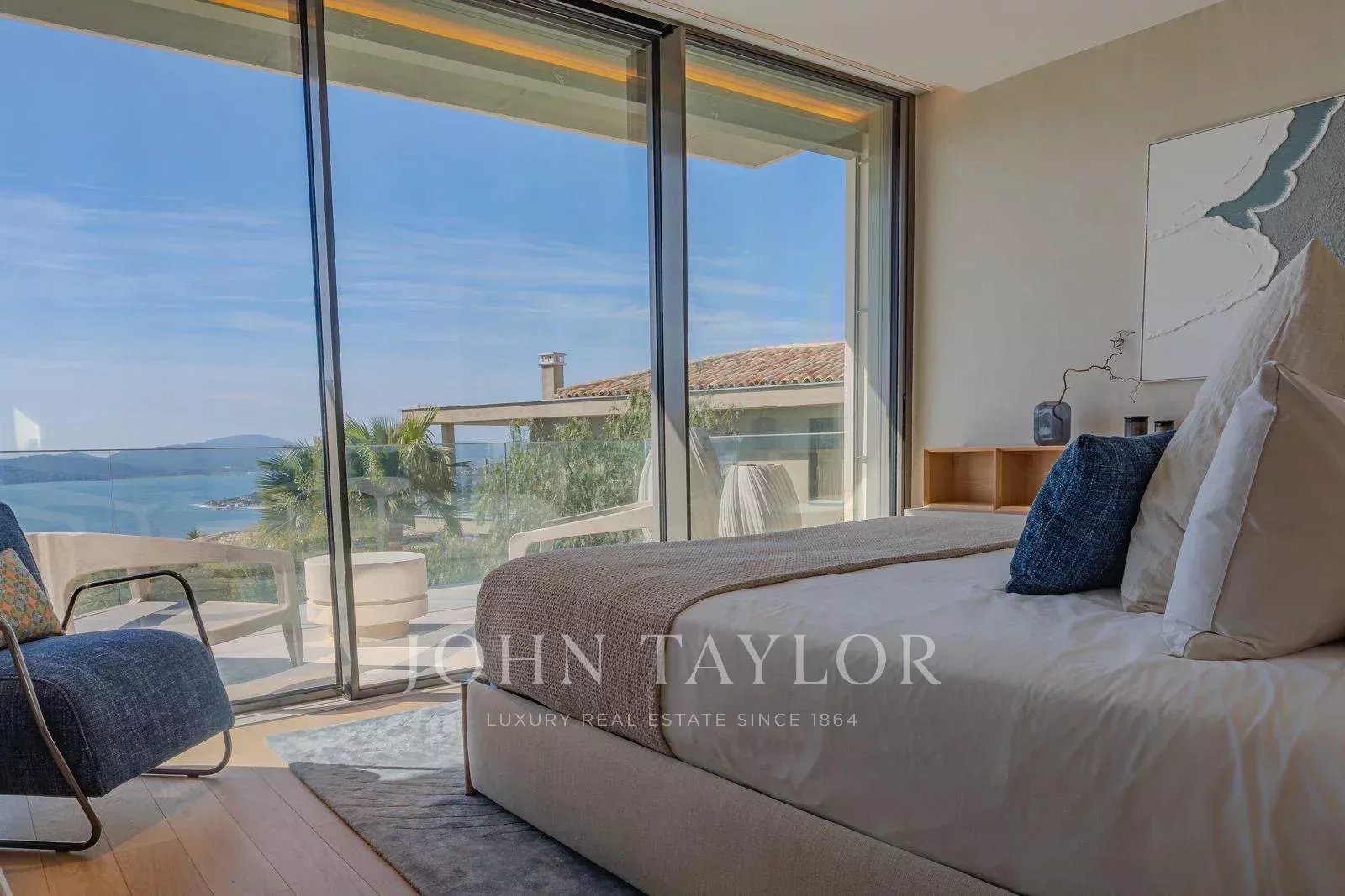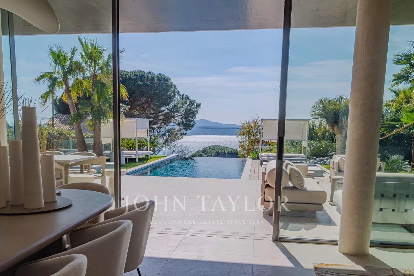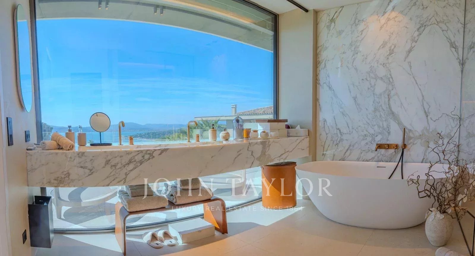 Située sur les hauteurs de Sainte-Maxime dans un quartier résidentiel à proximité du centre ville, cette villa de style californien entièrement redessinée par un architecte bénéficie d'une très belle vue mer sur le Golfe de Saint-Tropez. Elle se compose comme suit :