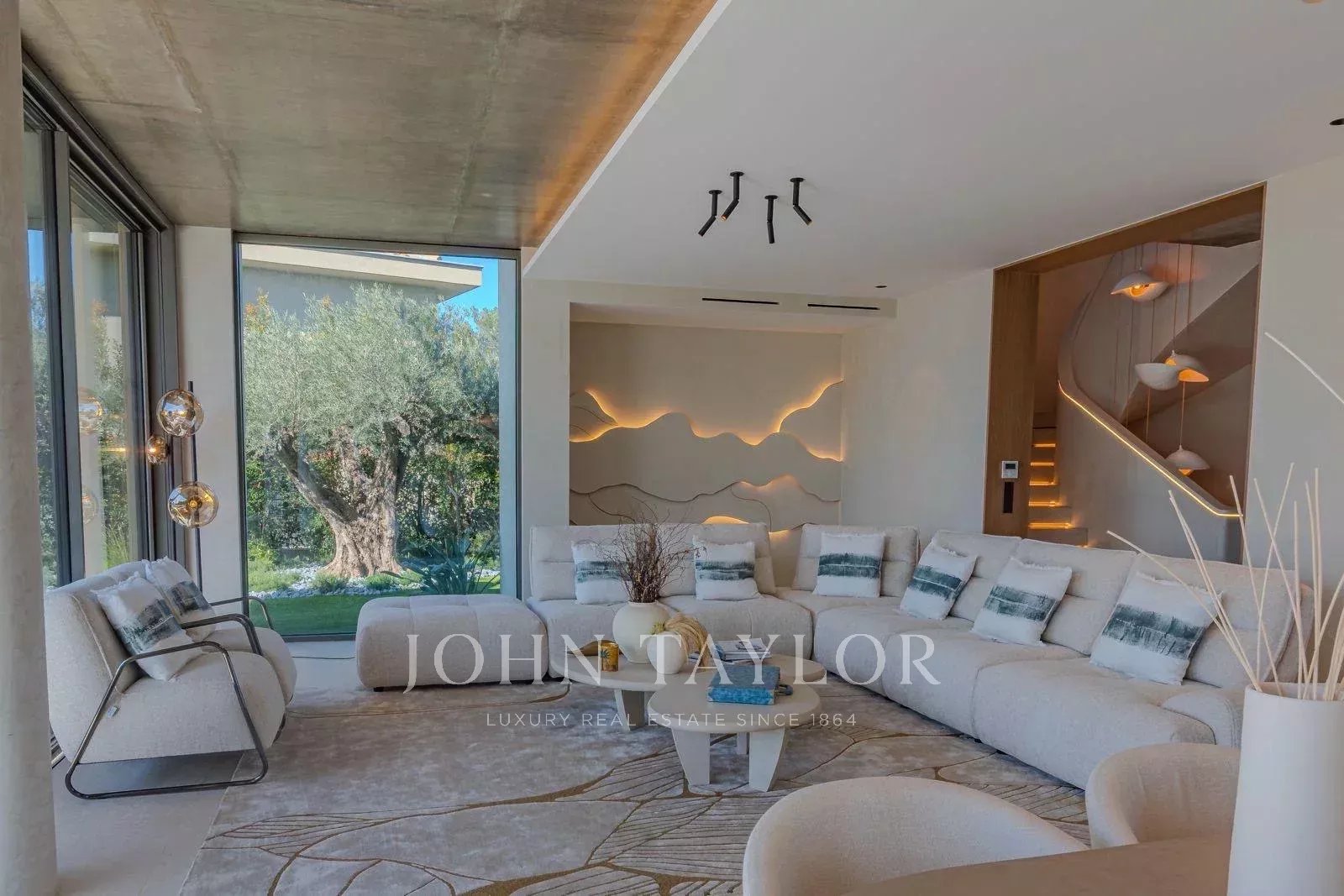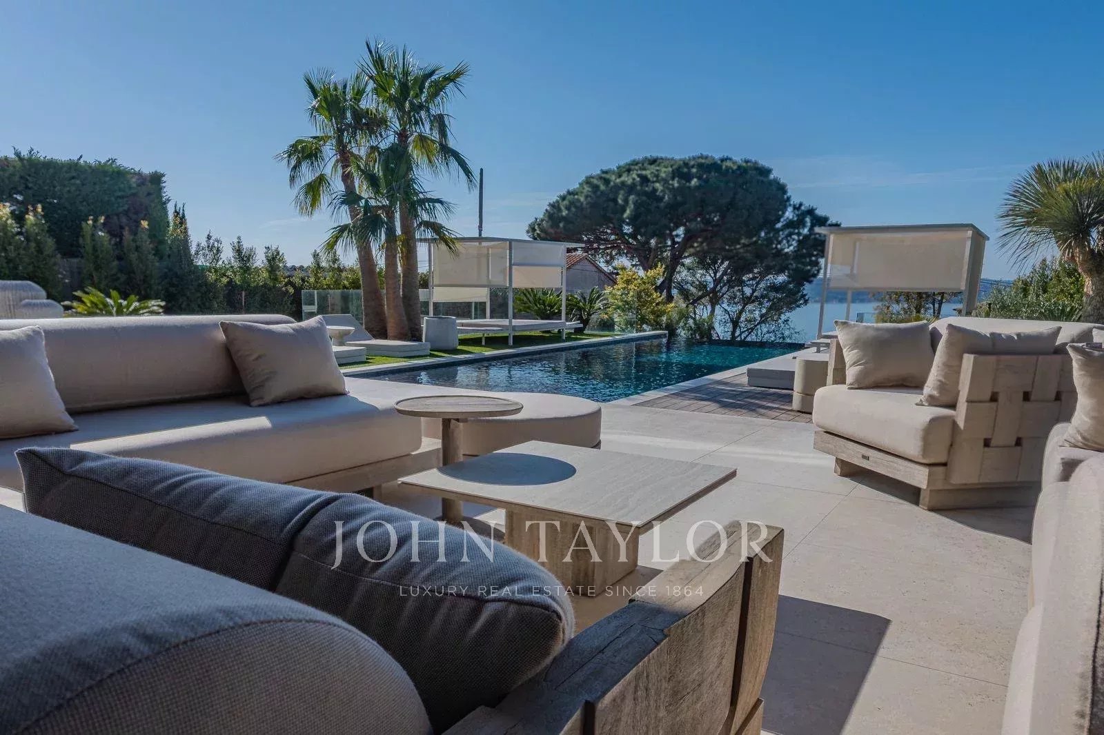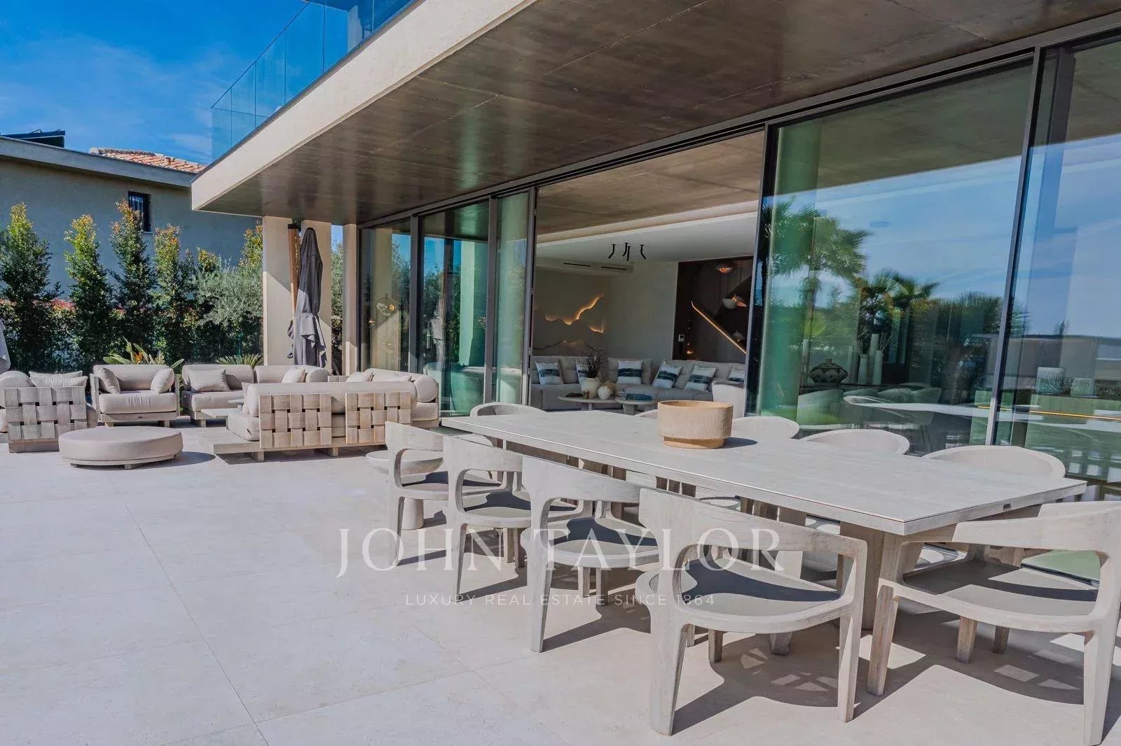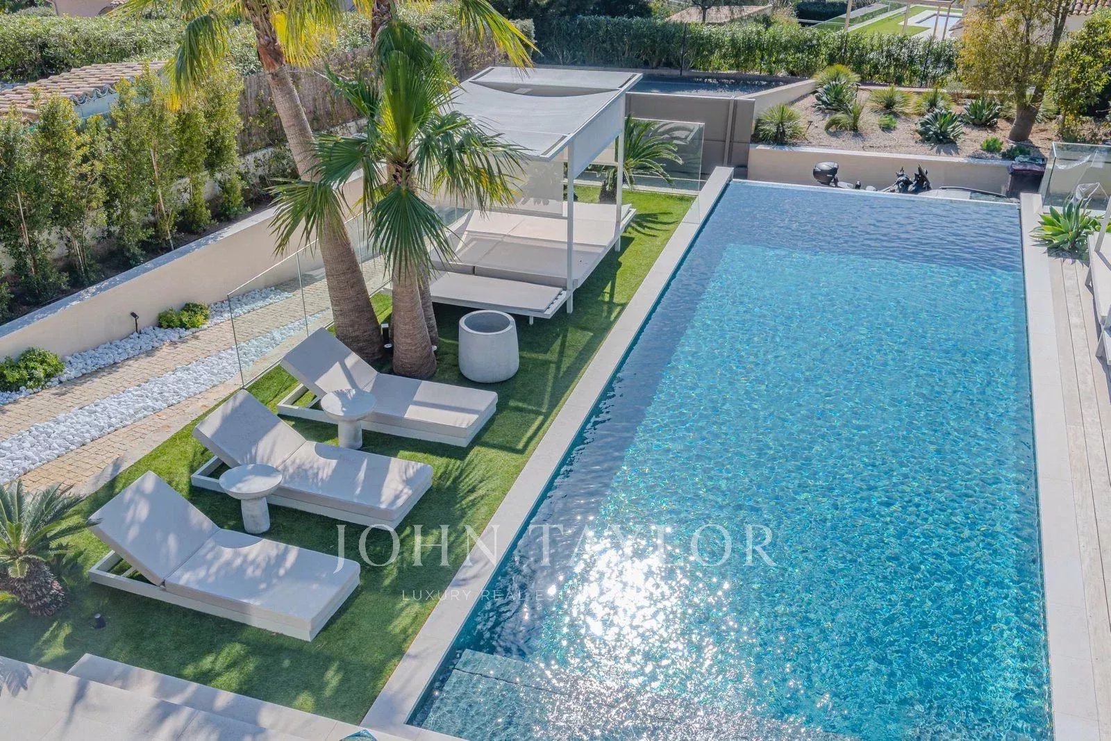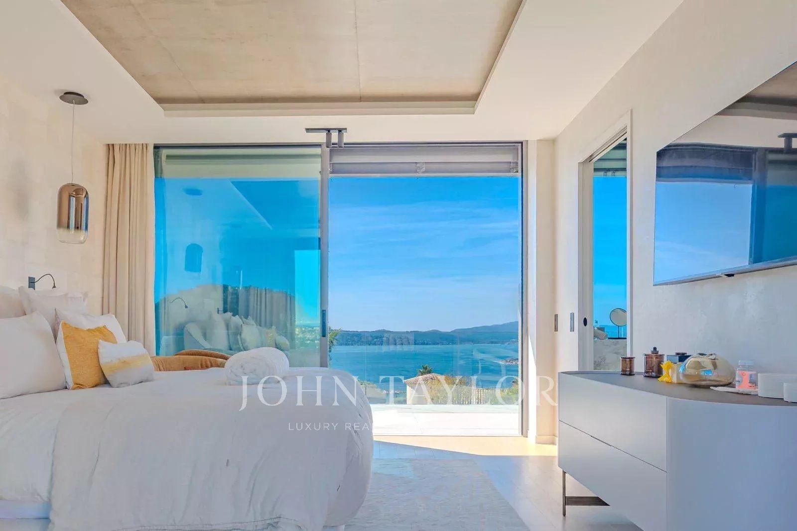 Située sur les hauteurs de Sainte-Maxime dans un quartier résidentiel à proximité du centre ville, cette villa de style californien entièrement redessinée par un architecte bénéficie d'une très belle vue mer sur le Golfe de Saint-Tropez. Elle se compose comme suit :