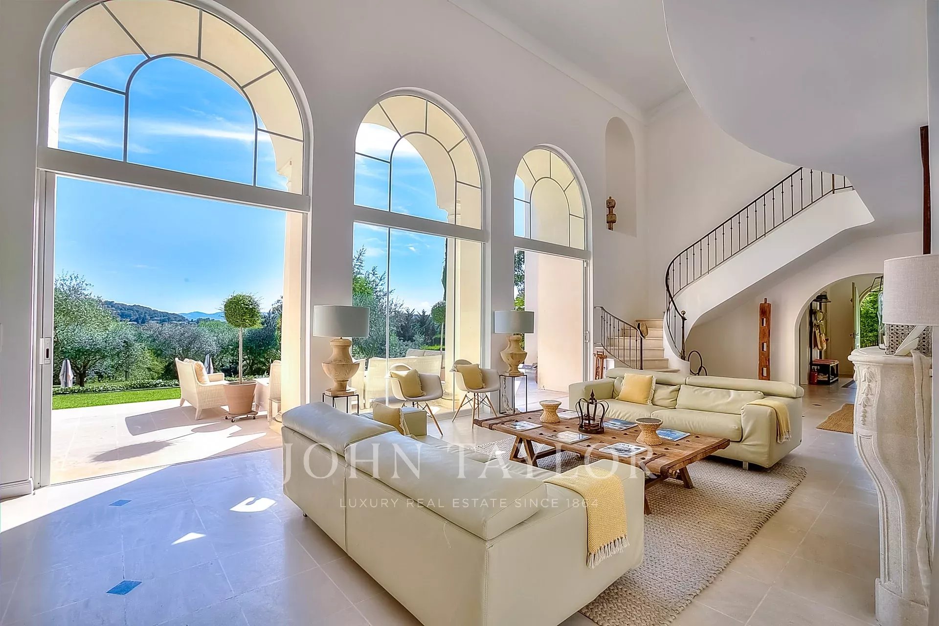 Nichée dans un environnement paisible et verdoyant, à seulement 3 minutes du village de Valbonne, cette magnifique villa offre 400 m² d'espaces de vie aux volumes généreux, implantée au cœur d’un vaste terrain de 9 000 m² agrémenté d’essences méditerranéennes et d’une zone boisée.