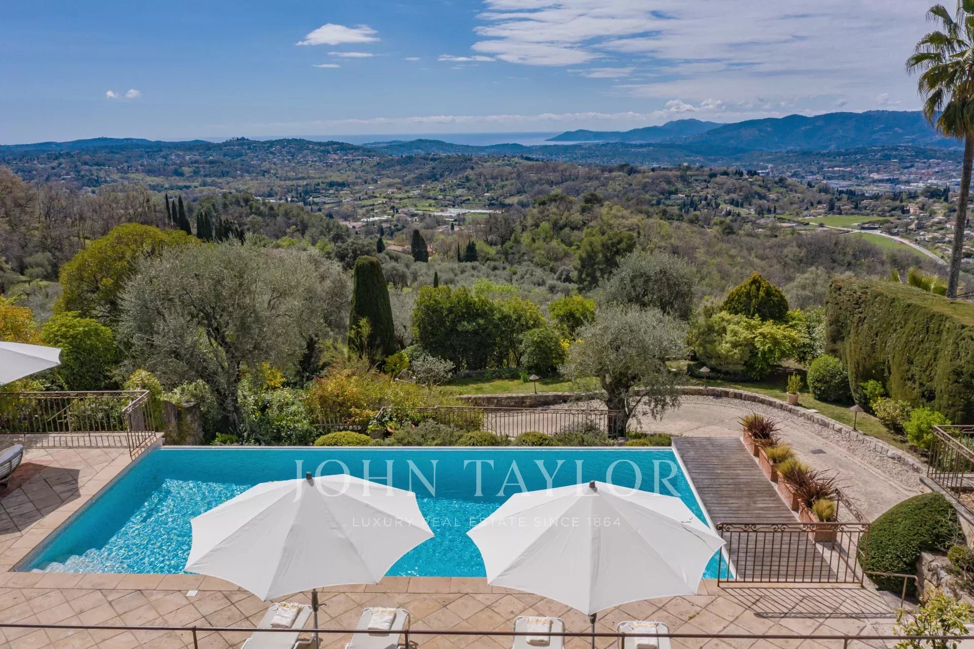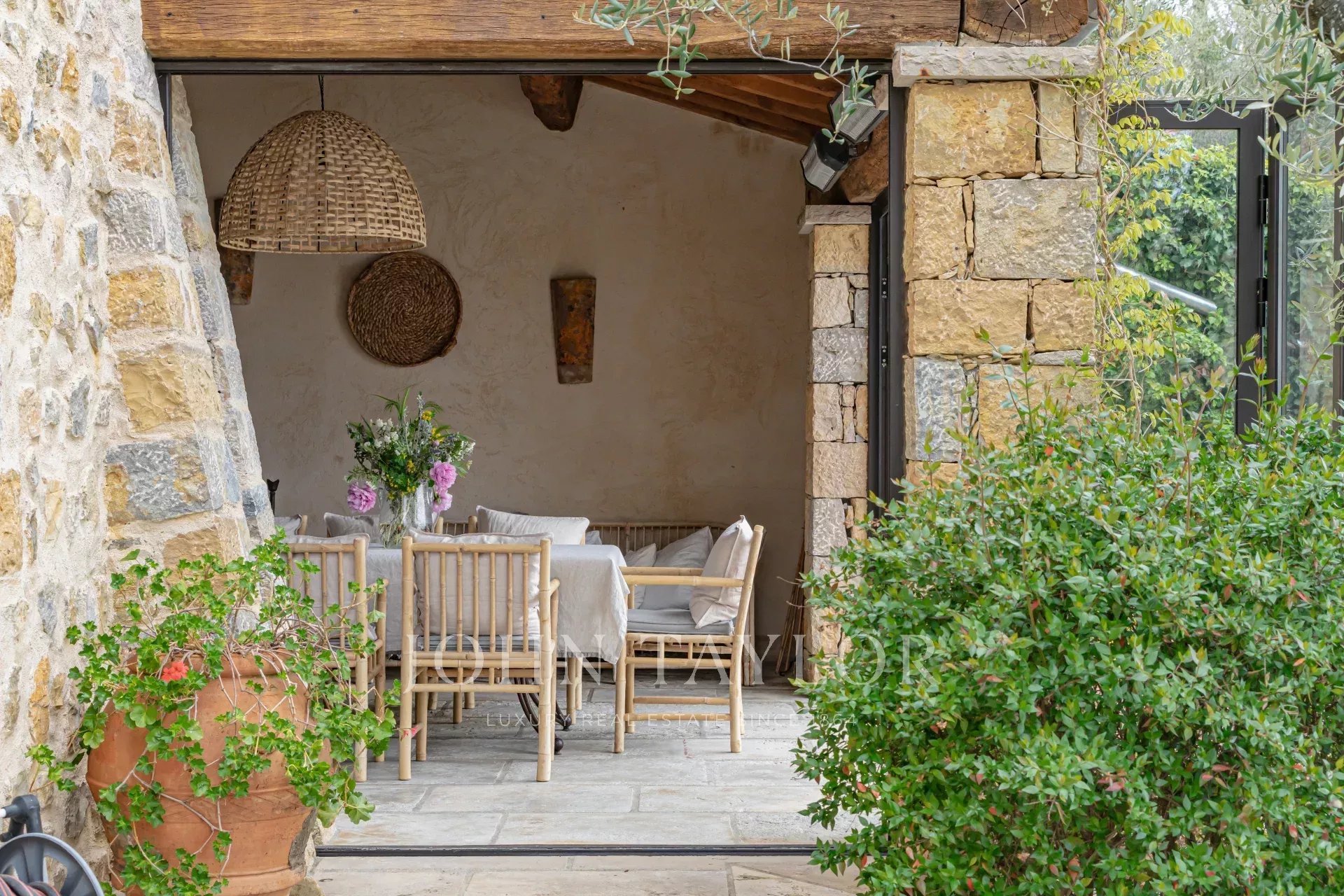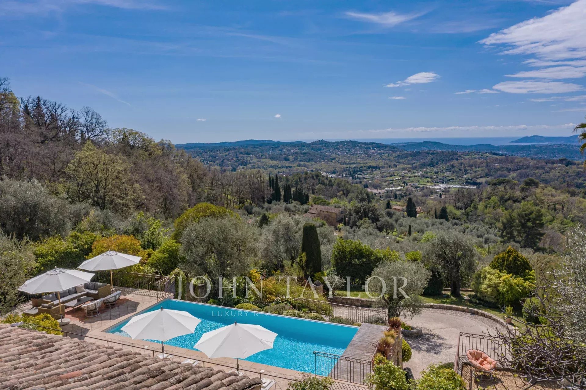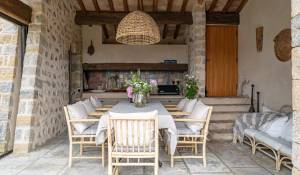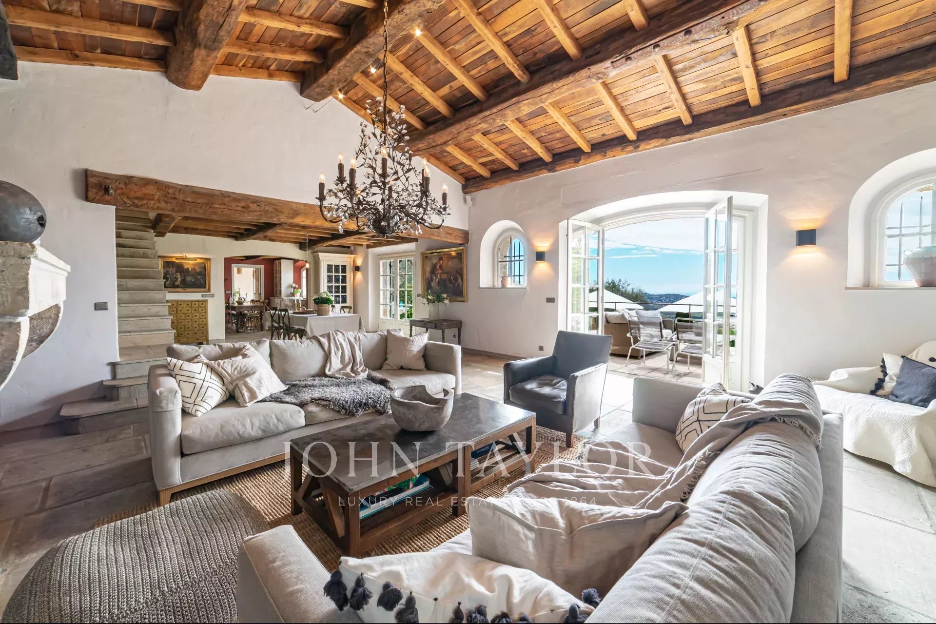 Cette splendide bastide en pierre jouit d'une vue panoramique plein sud au-dessus de la colline et jusqu'à la mer.