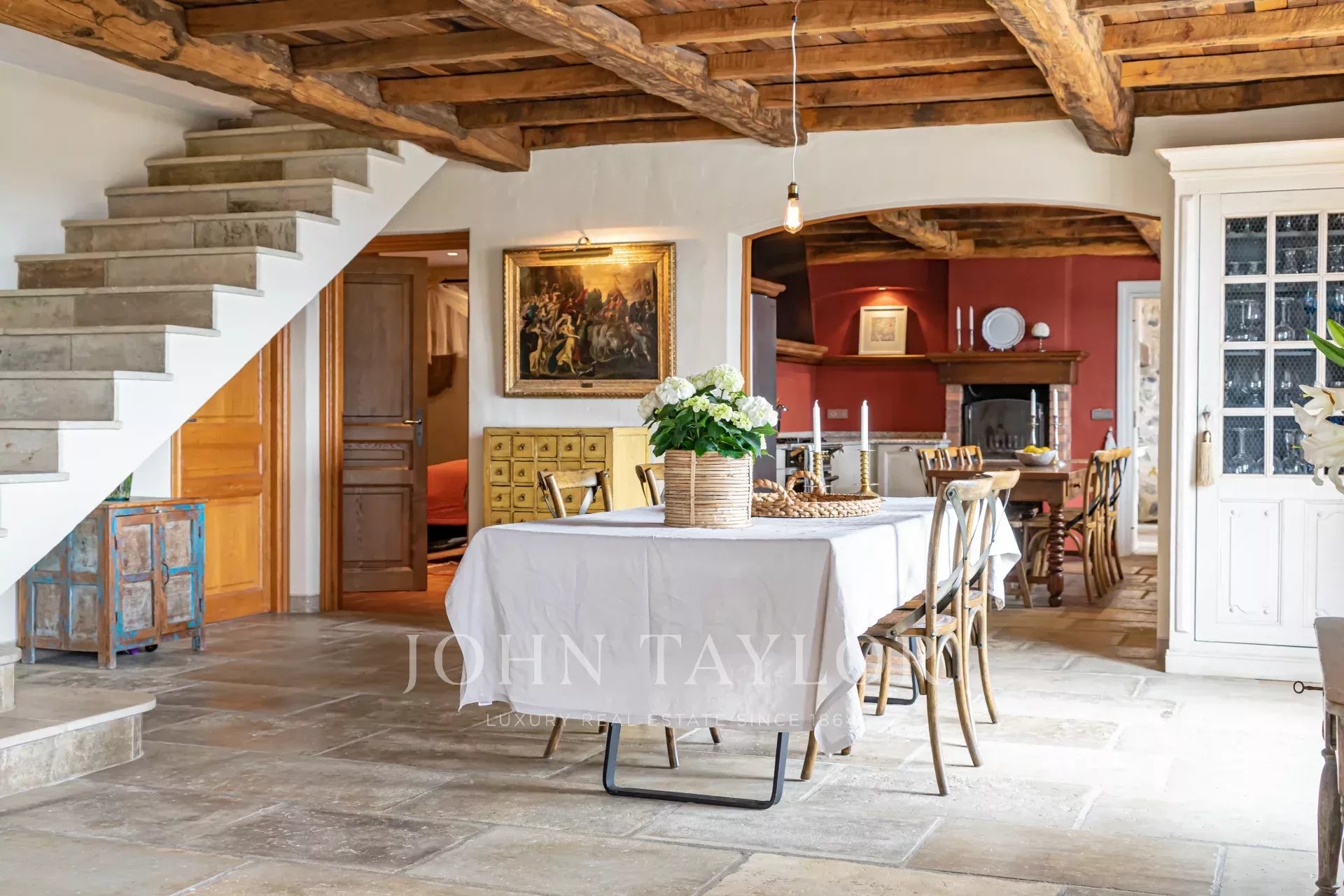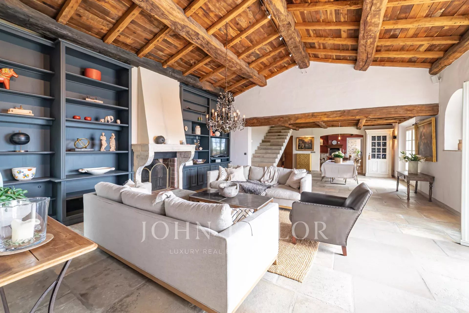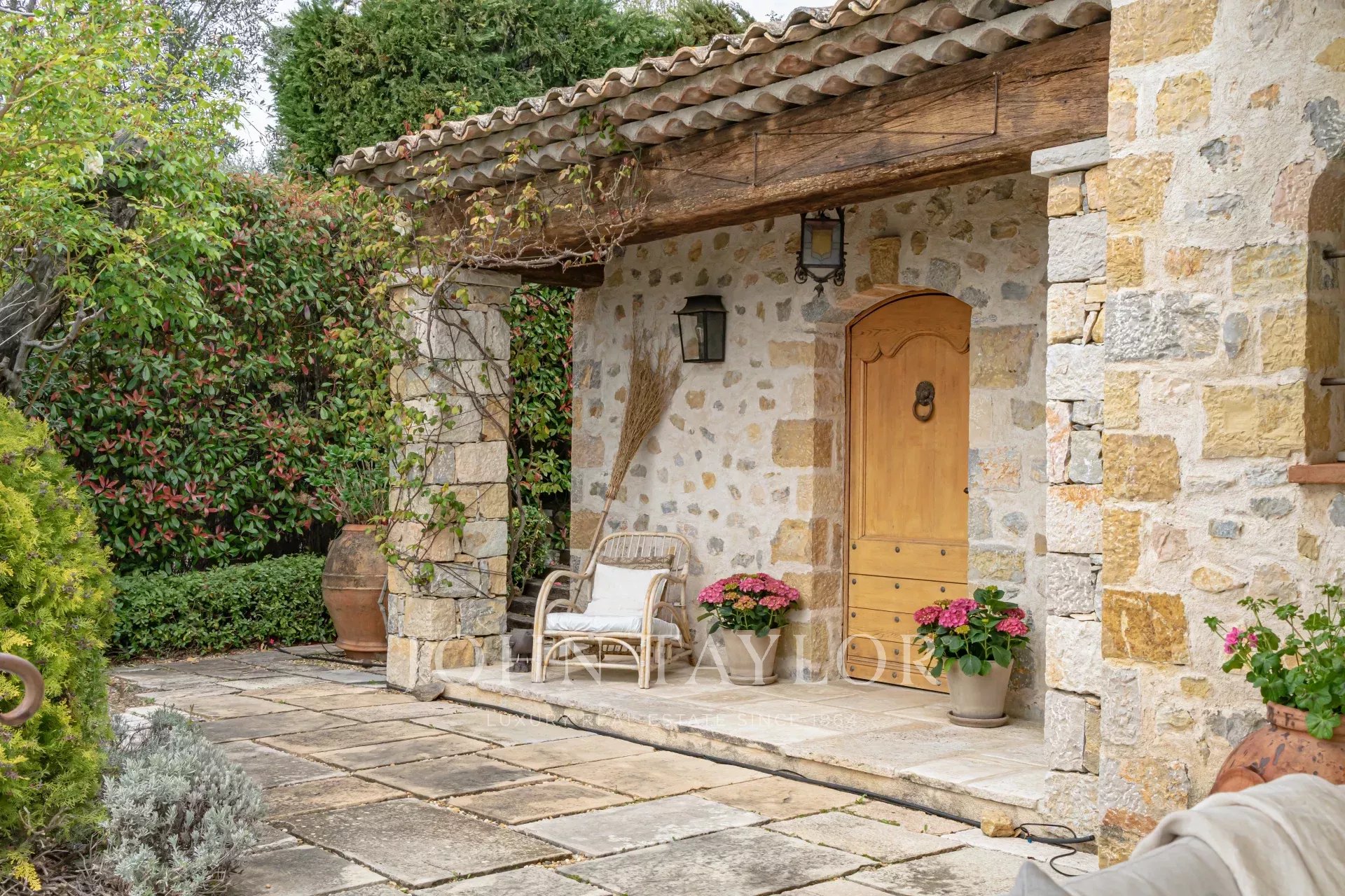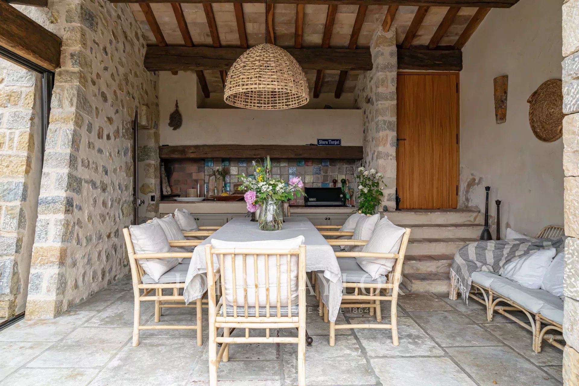 Cette splendide bastide en pierre jouit d'une vue panoramique plein sud au-dessus de la colline et jusqu'à la mer.