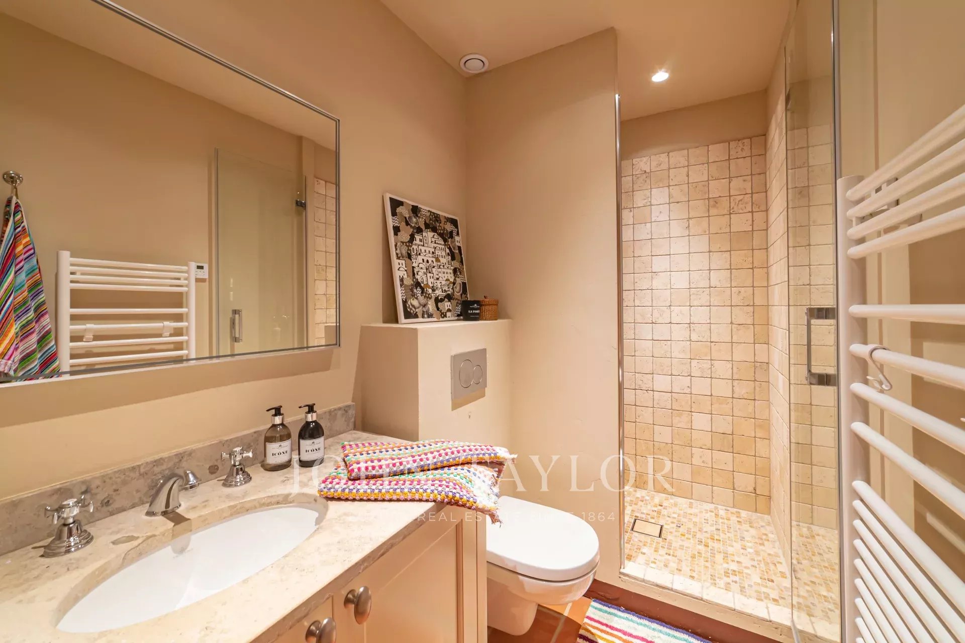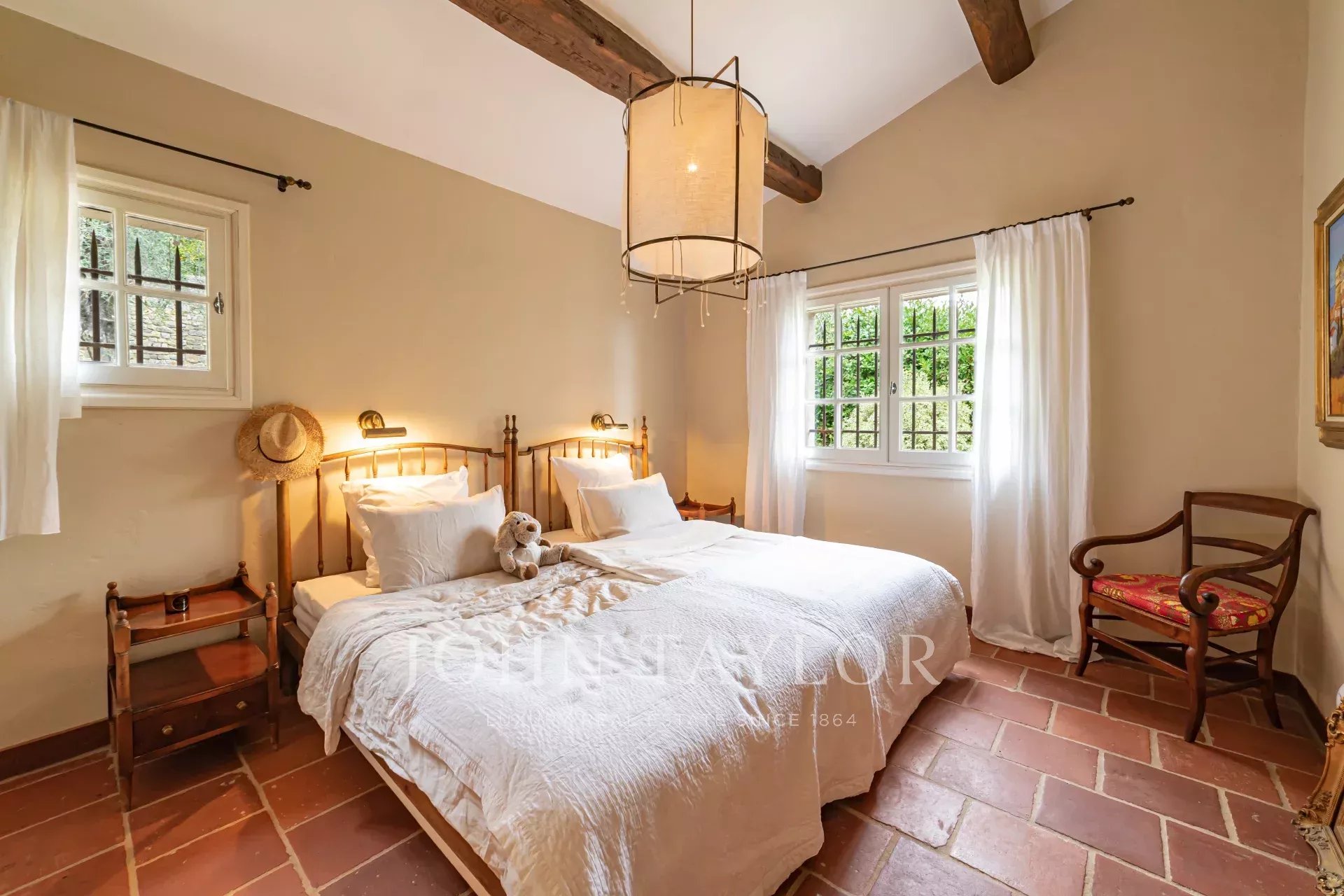 La propriété de 220 m² environ et son jardin de 1 900 m² environ agrémenté de magnifiques oliviers peut accueillir jusqu’à 8 invités dans 4 chambres (dont 1 chambre de plain-pied).