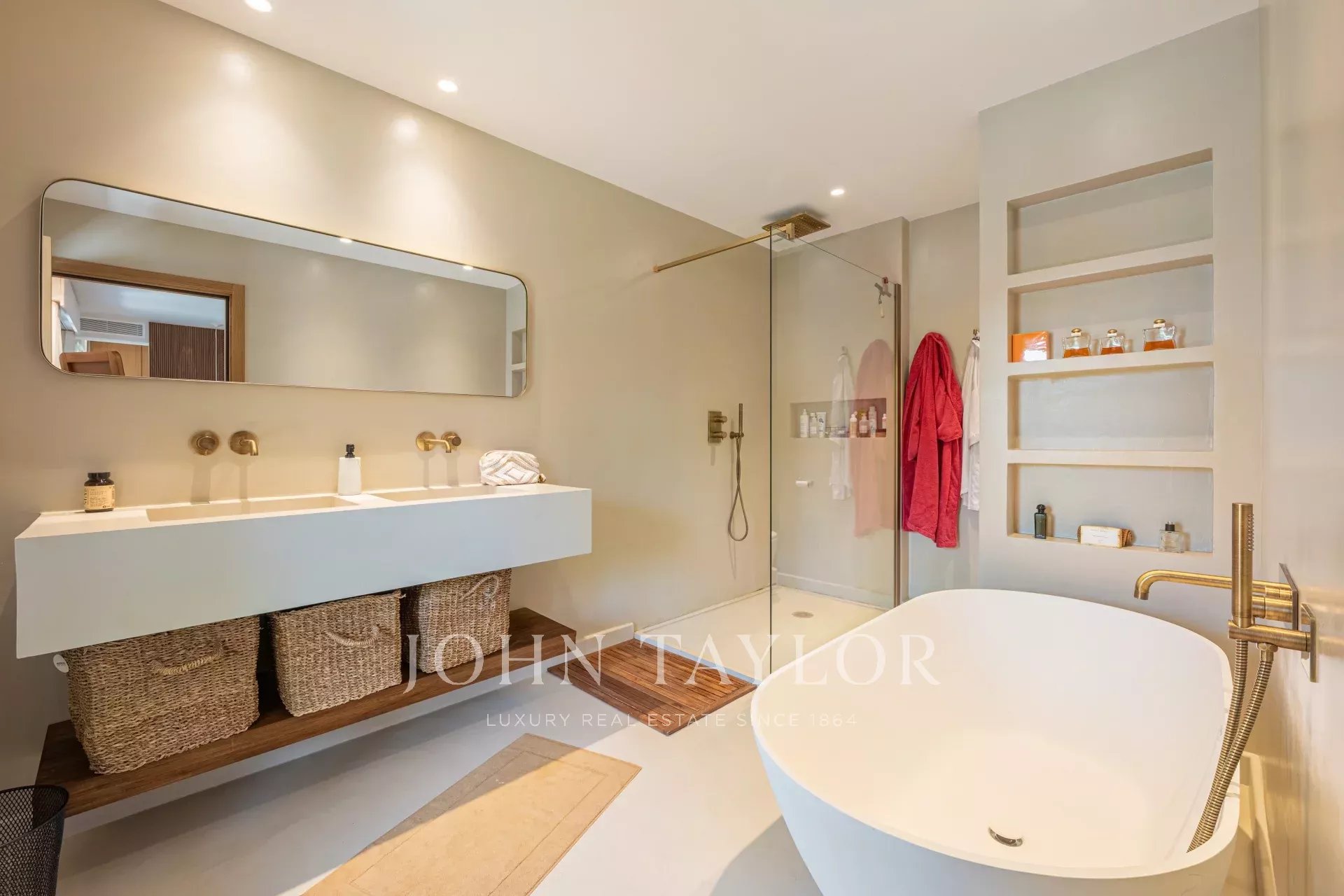 Côté bien-être, profitez d’une salle de sport privée et d’un sauna extérieur, parfaits pour des séjours détente sous le soleil de la Côte d’Azur.