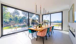 Érigée en 2022, la villa déploie 440 m² habitables sur trois niveaux, desservis par un ascenseur. Ses vastes espaces de vie, baignés de lumière grâce à son exposition plein sud, s’ouvrent sur un domaine paysager de 1,5 hectare sans aucun vis-à-vis. Six élégantes chambres, neuf toilettes, une cave à vin et une salle de sport de 50 m² composent ce lieu exclusif, entièrement meublé avec un souci du détail absolu.