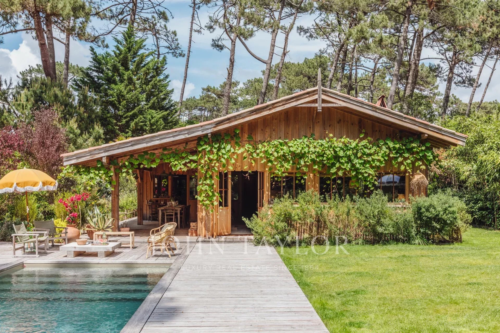 Cette villa de plain-pied authentique, emblématique du Cap-Ferret, vous invite à une véritable évasion temporelle au milieu d’un jardin luxuriant, pour des vacances empreintes de sérénité.