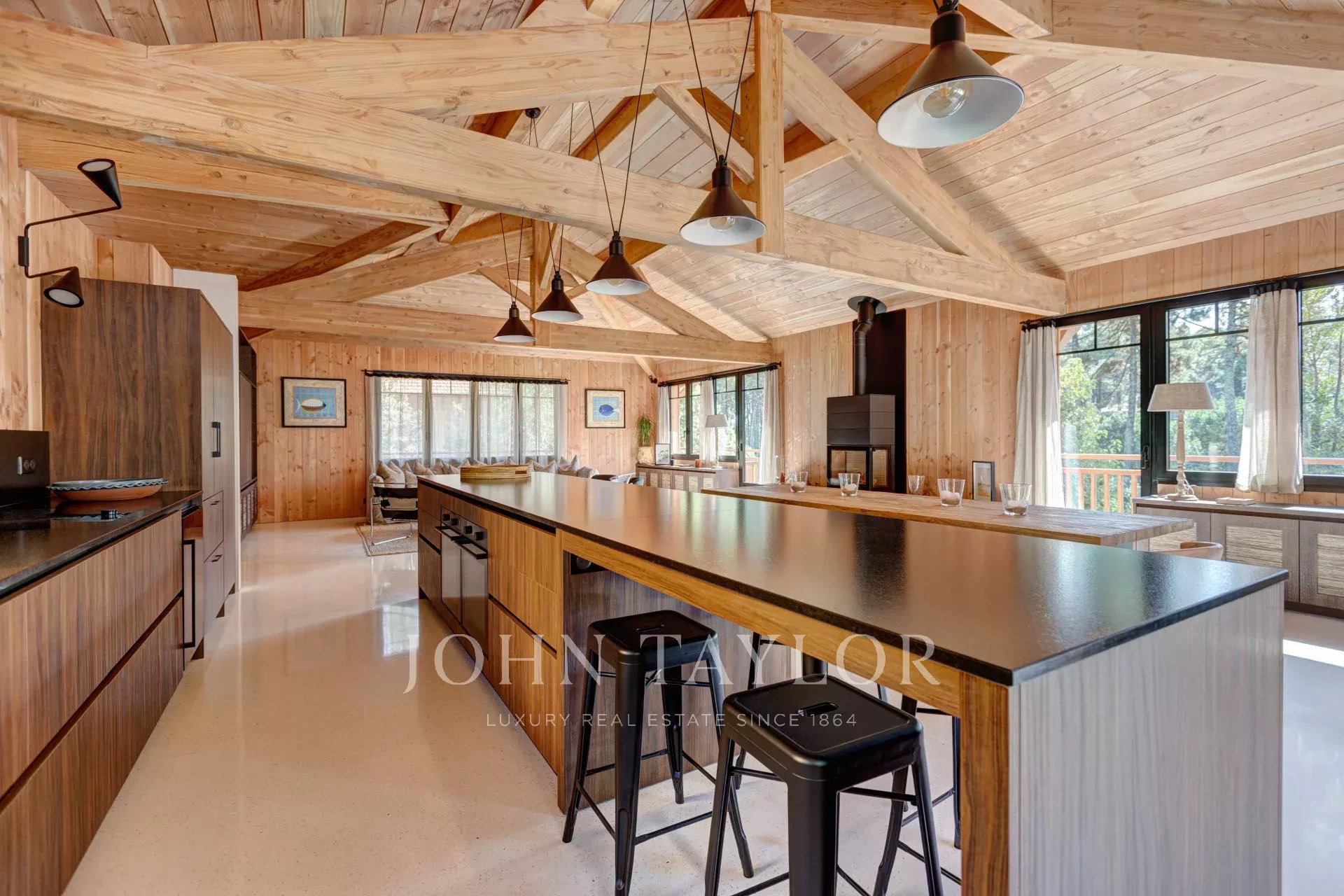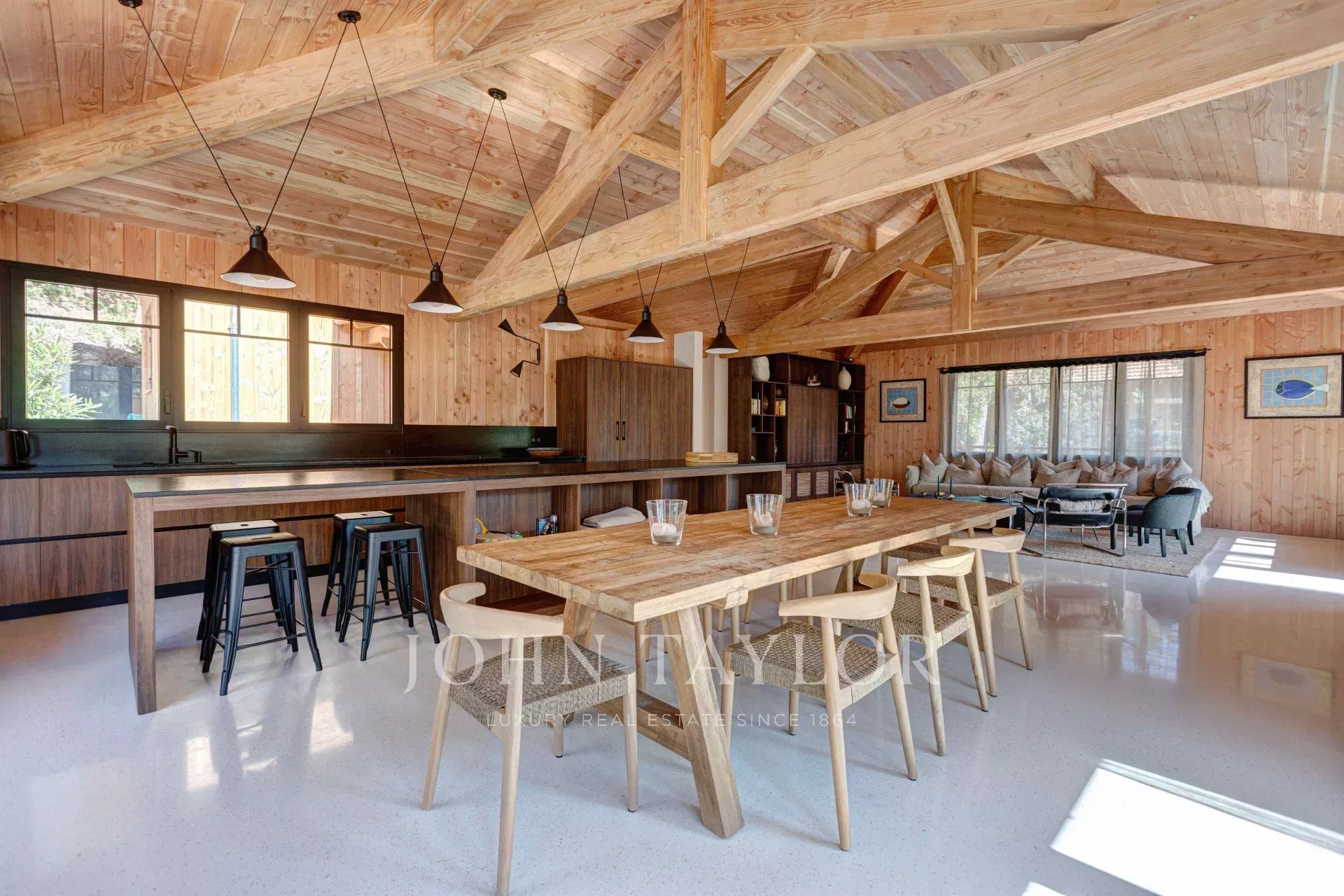 La superbe pièce à vivre de plus de 80 m² vous accueille pour des moments de convivialité inoubliables, que ce soit autour d’un dîner en famille ou entre amis. La large cuisine ouverte entièrement équipée sera le point de rencontre idéal pour vos séjours entre amis ou en famille. L’espace se prolonge harmonieusement sur la terrasse, offrant un espace confortable et multifonctions au bord de la piscine chauffée, idéale pour se détendre à tout moment de la journée.