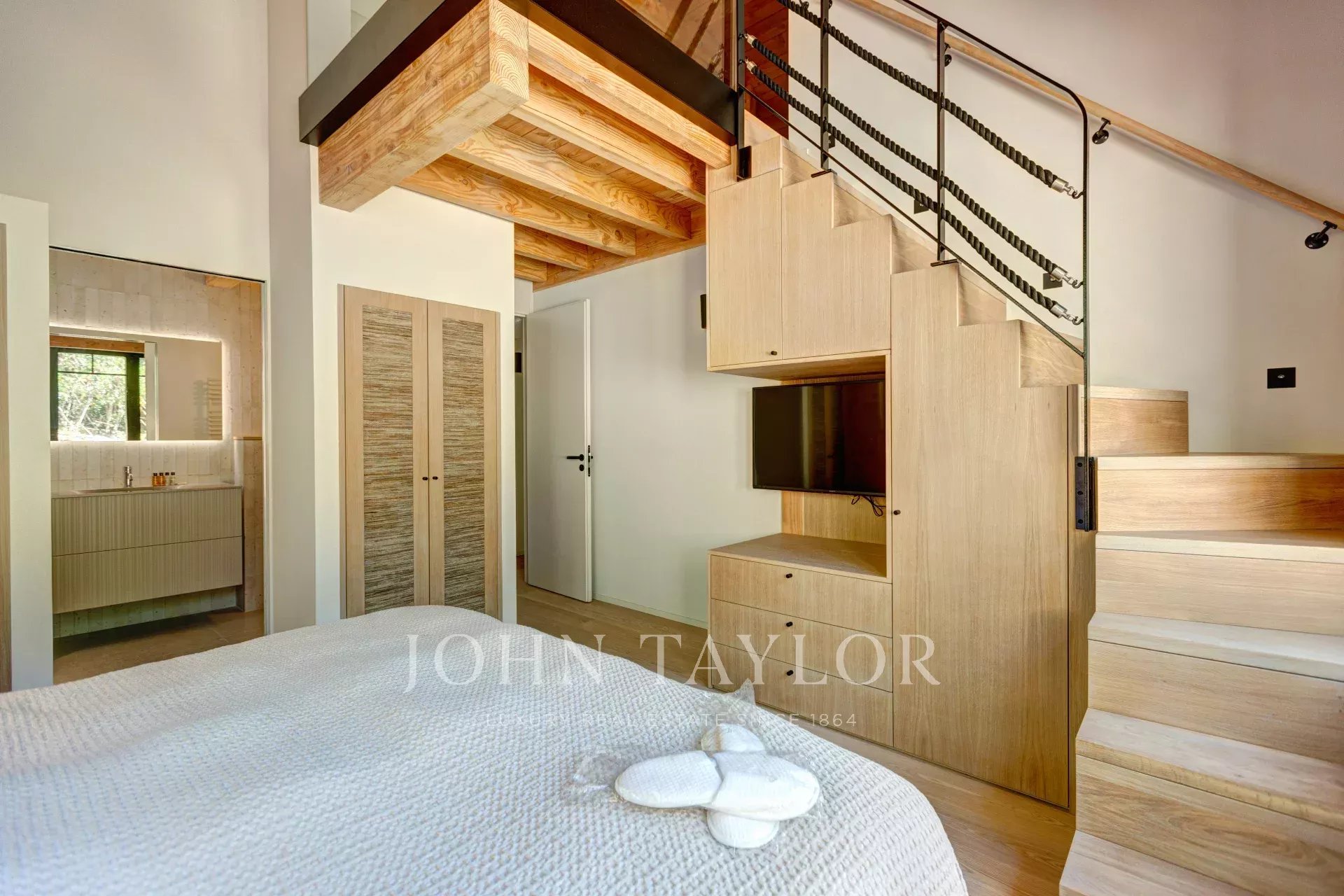 Les 4 suites de cette villa, toutes climatisées et équipées de literie de qualité hôtelière 180x200, pour des nuits réparatrices dignes des plus beaux établissements. Chaque suite dispose d’un accès indépendant à l’extérieur, ainsi que d’une salle d’eau et de WC privatifs pour une intimité totale.