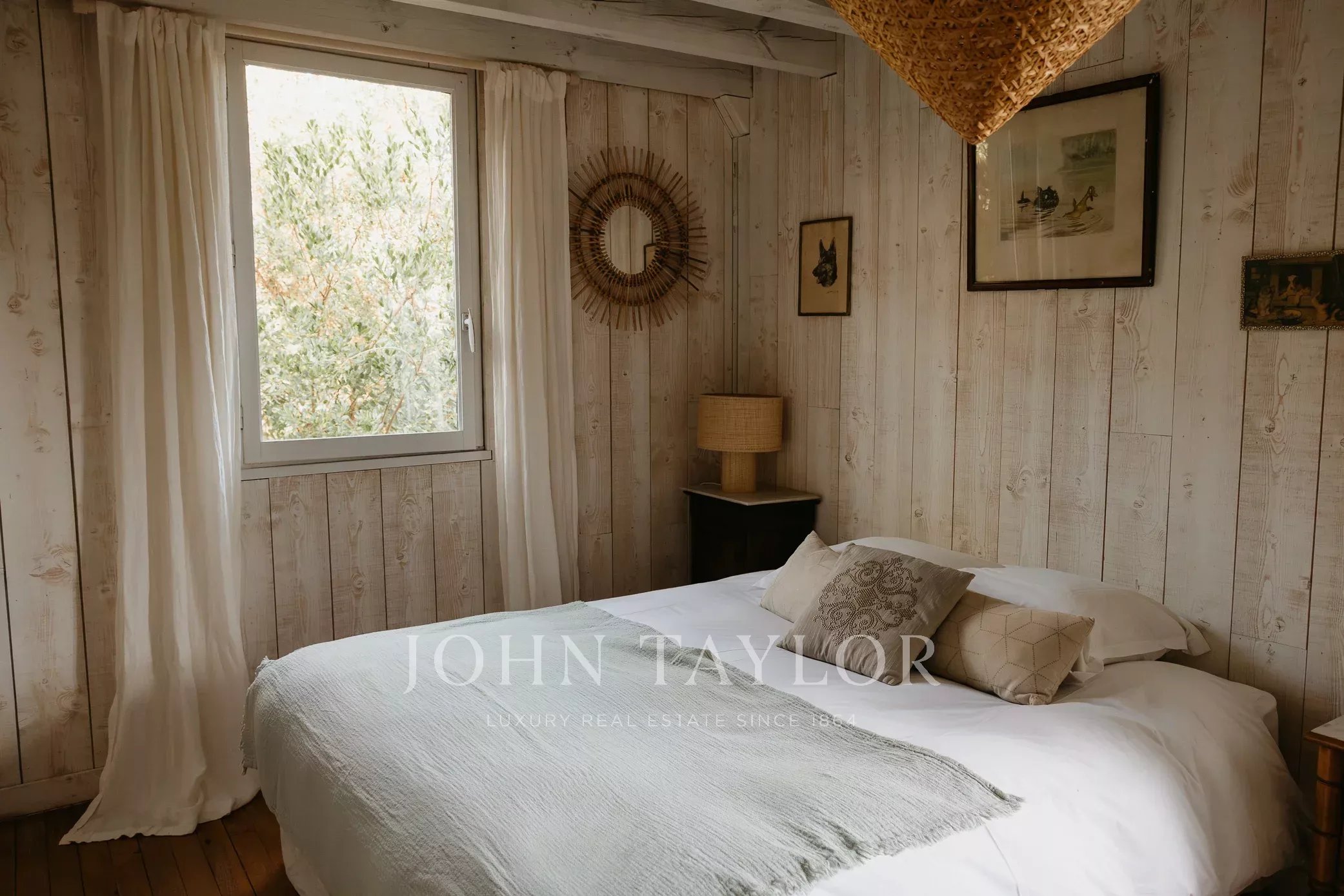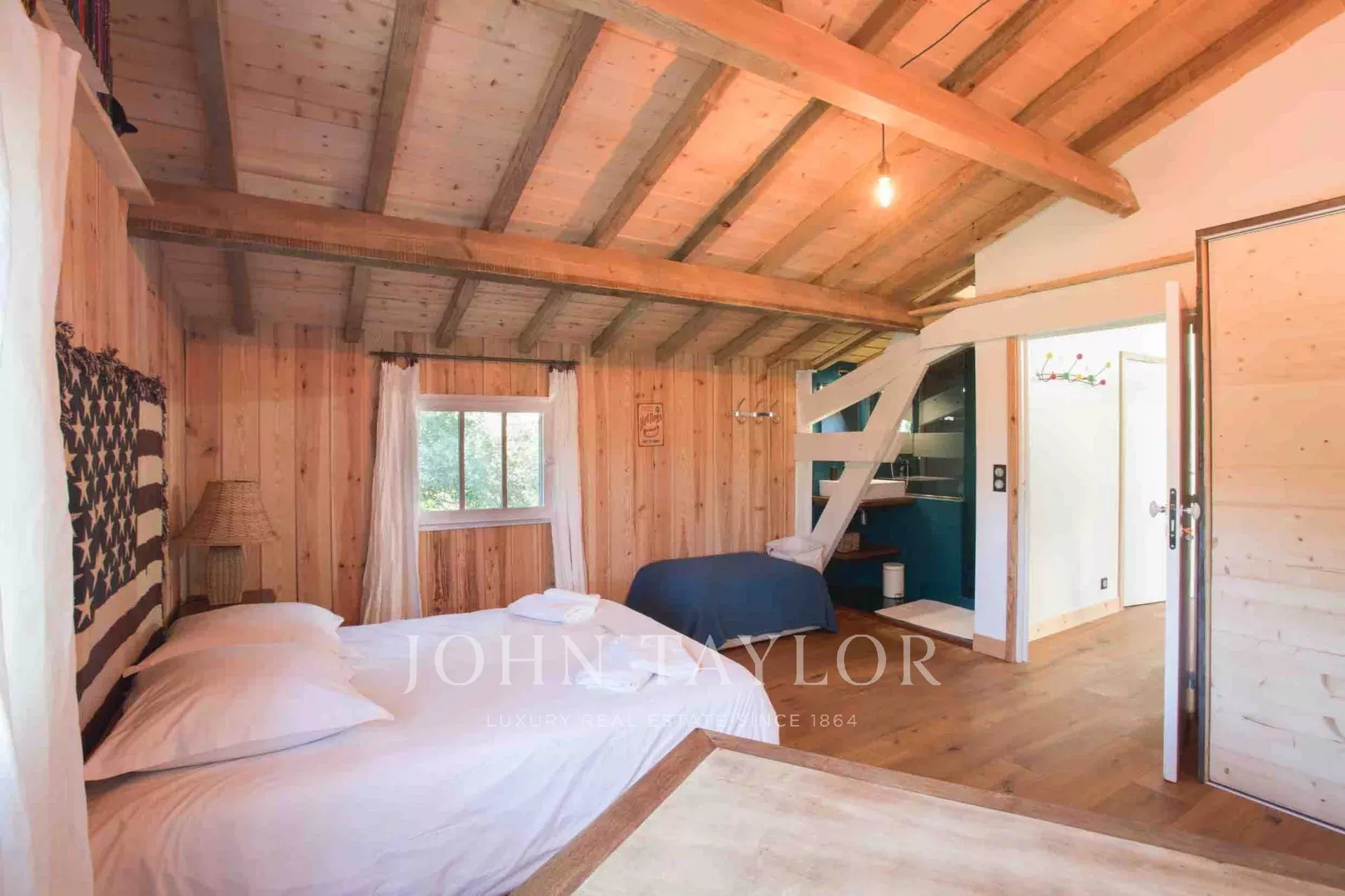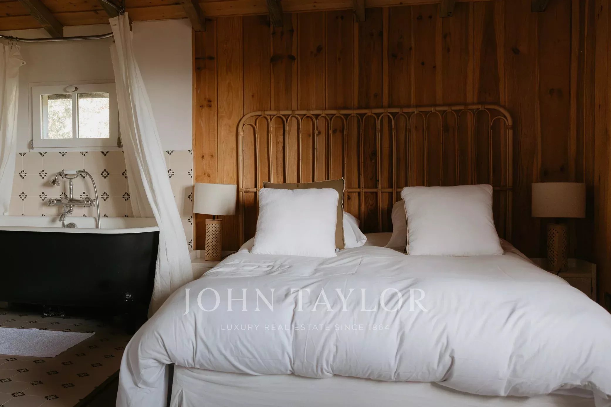 La maison principale accueille cinq chambres, chacune dotée de sa salle d’eau privative, pour garantir un confort absolu à chacun de vos invités. Un studio indépendant, avec deux couchages et sa propre cuisine, vient compléter cet ensemble, offrant une flexibilité précieuse pour recevoir en toute simplicité.