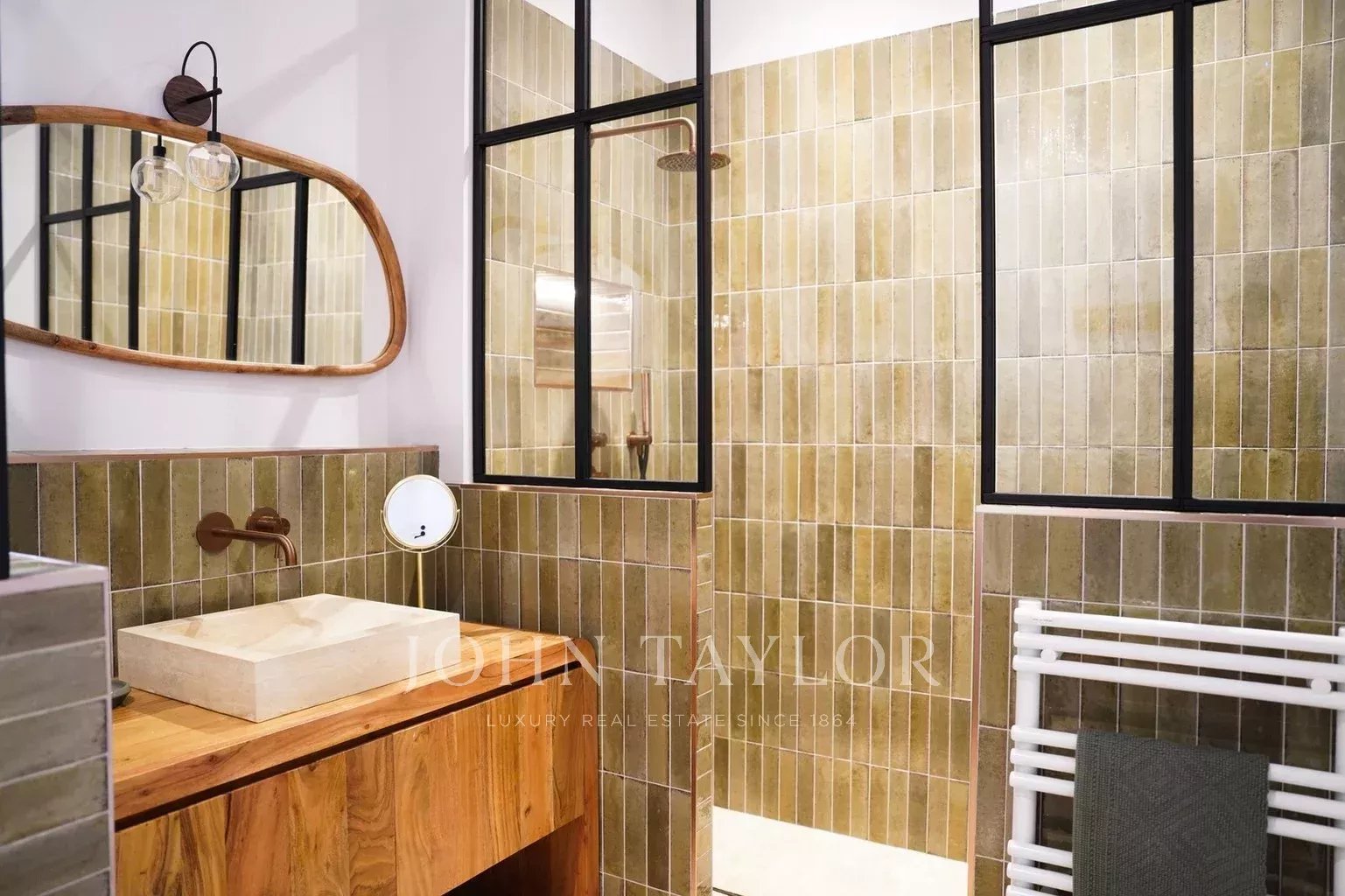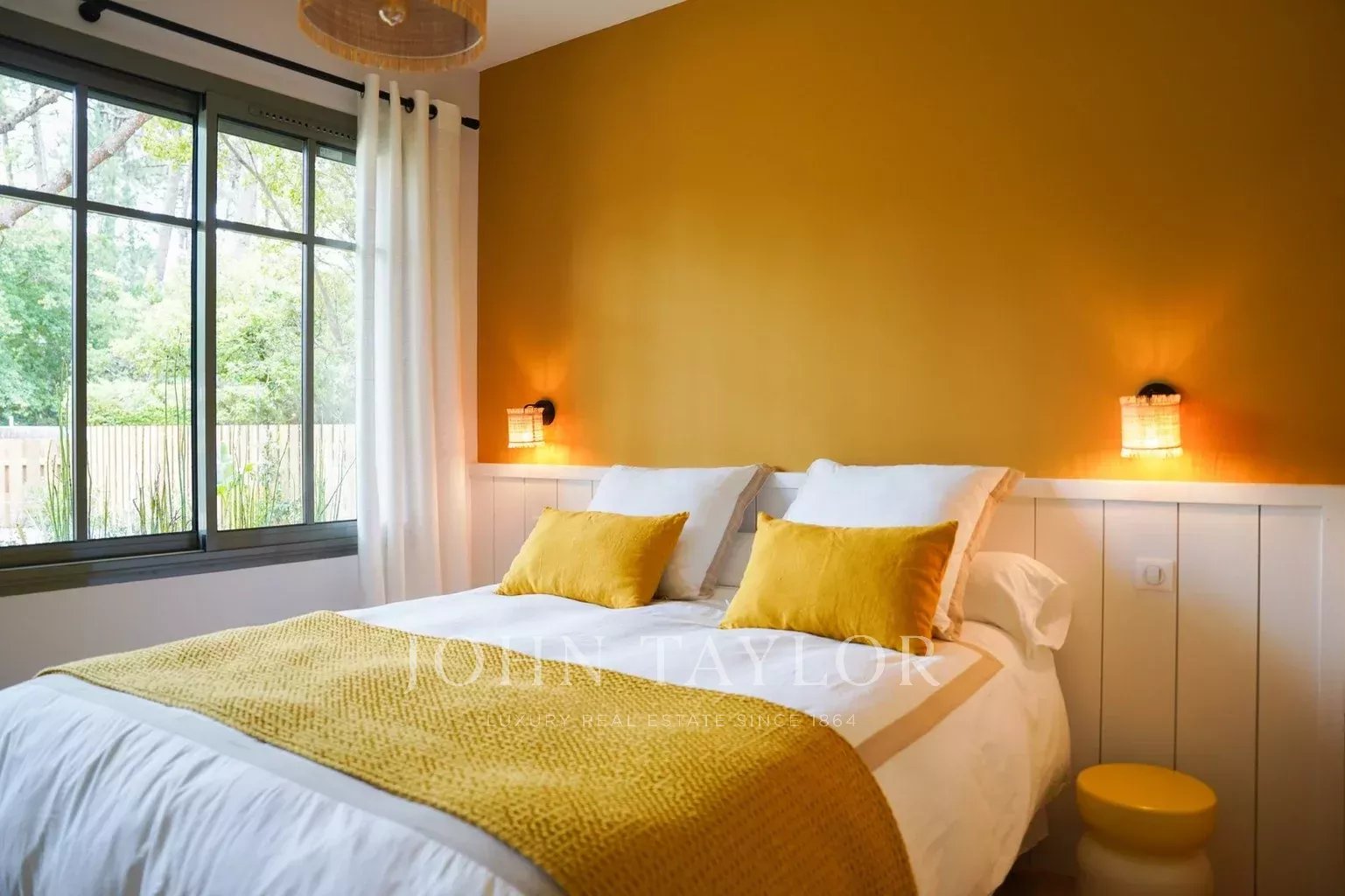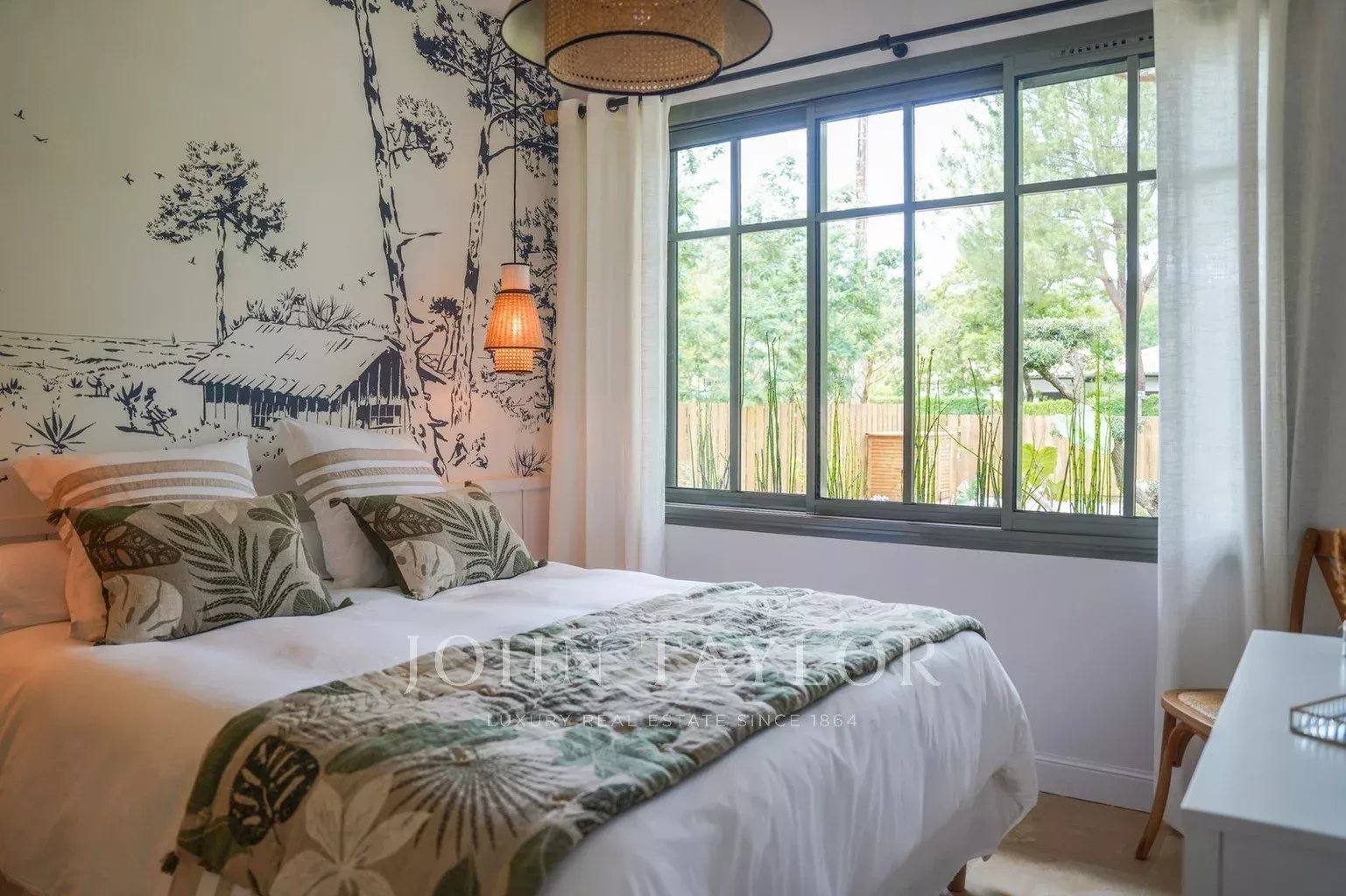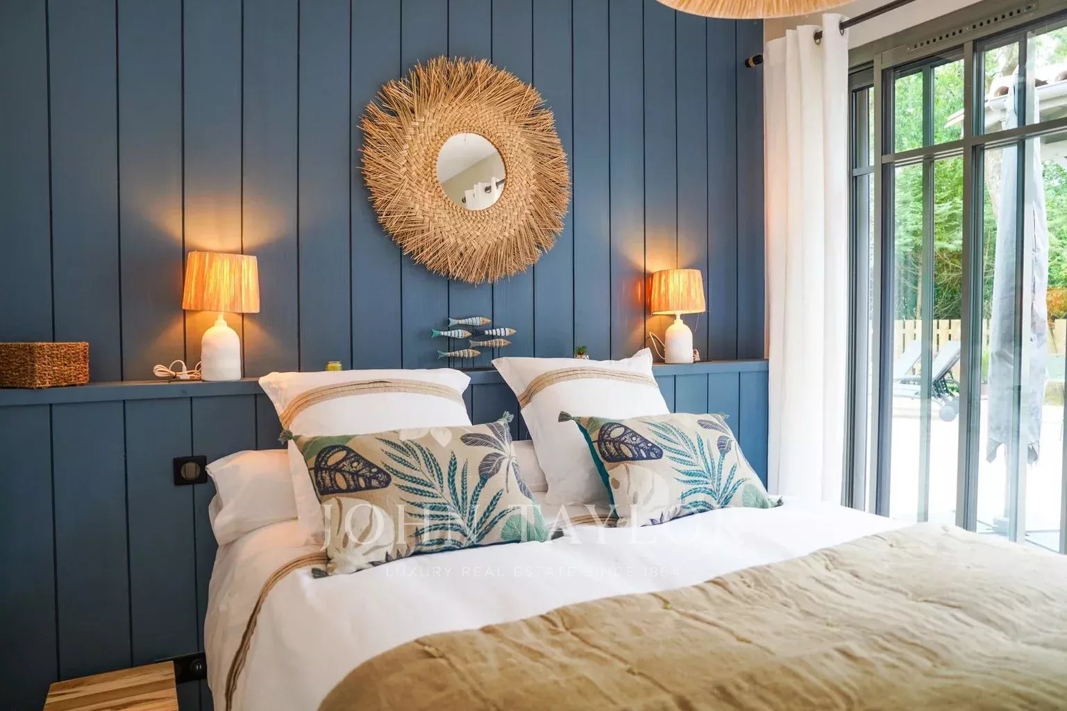 Deux terrasses exposées est et ouest permettent de profiter du soleil à toute heure de la journée. Les extérieurs proposent une piscine chauffée de 6 x 2,5 m sécurisée par volet roulant immergé, une cuisine d’été avec plancha et évier, un WC extérieur ainsi qu’un terrain de pétanque éclairé par des lumières guinguette. Le mobilier de jardin FERMOB comprend une grande table pour 10 à 12 personnes, des bains de soleil et un salon de jardin.