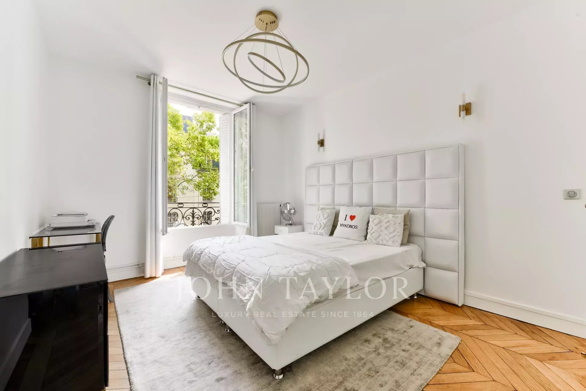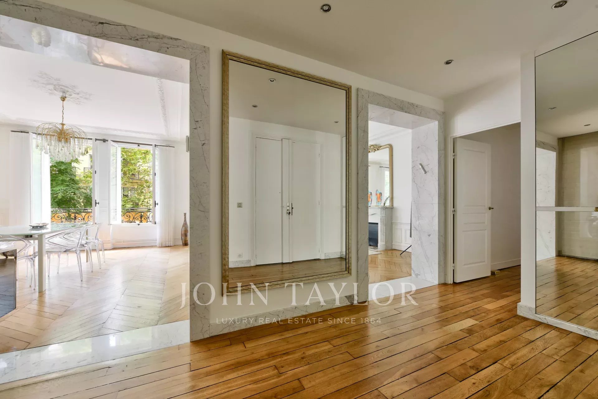 Traversant, lumineux et parfaitement agencé, il offre un parquet en point de Hongrie, des cheminées d’époque, des moulures, et 3 mètres de hauteur sous plafond.
