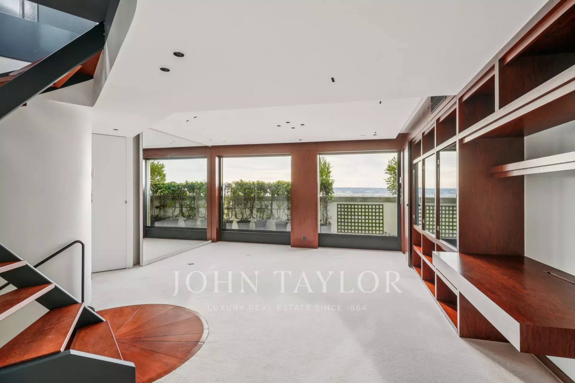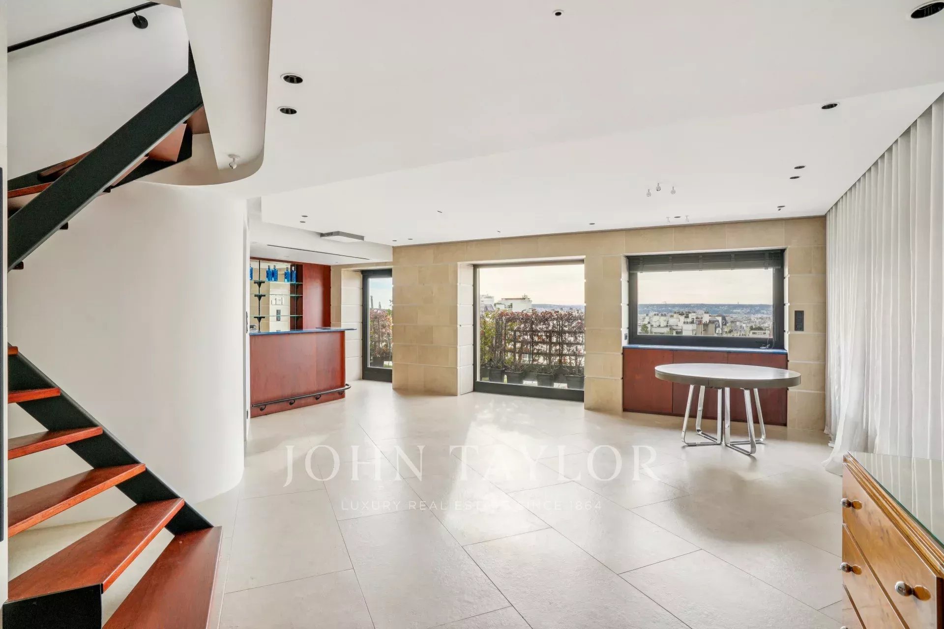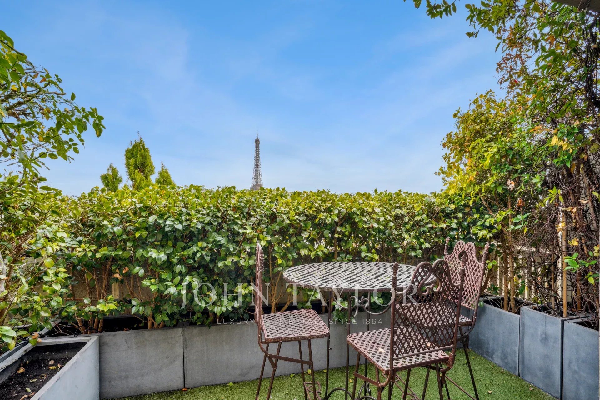 - une pièce comportant une cuisine d’été entièrement équipée s’ouvrant sur un magnifique roof top végétalisé avec bar, bain de soleil et salon de jardin, le tout avec une vue imprenable sur Paris et la Tour Eiffel.