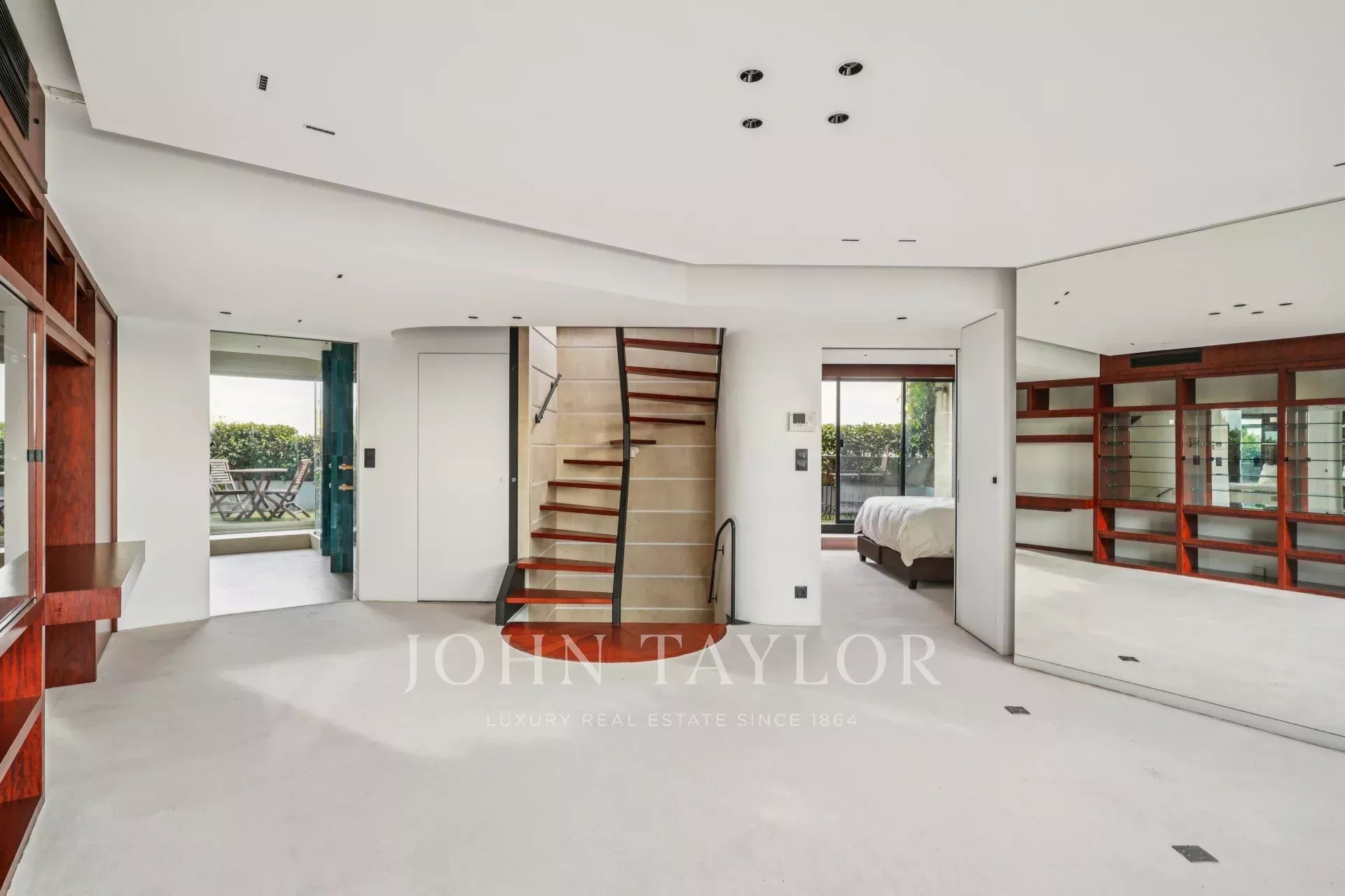 - un espace polyvalent équipé d’un lit escamotable et d’un rideau électrique, permettant de créer une seconde chambre d’appoint ou un bureau etc..