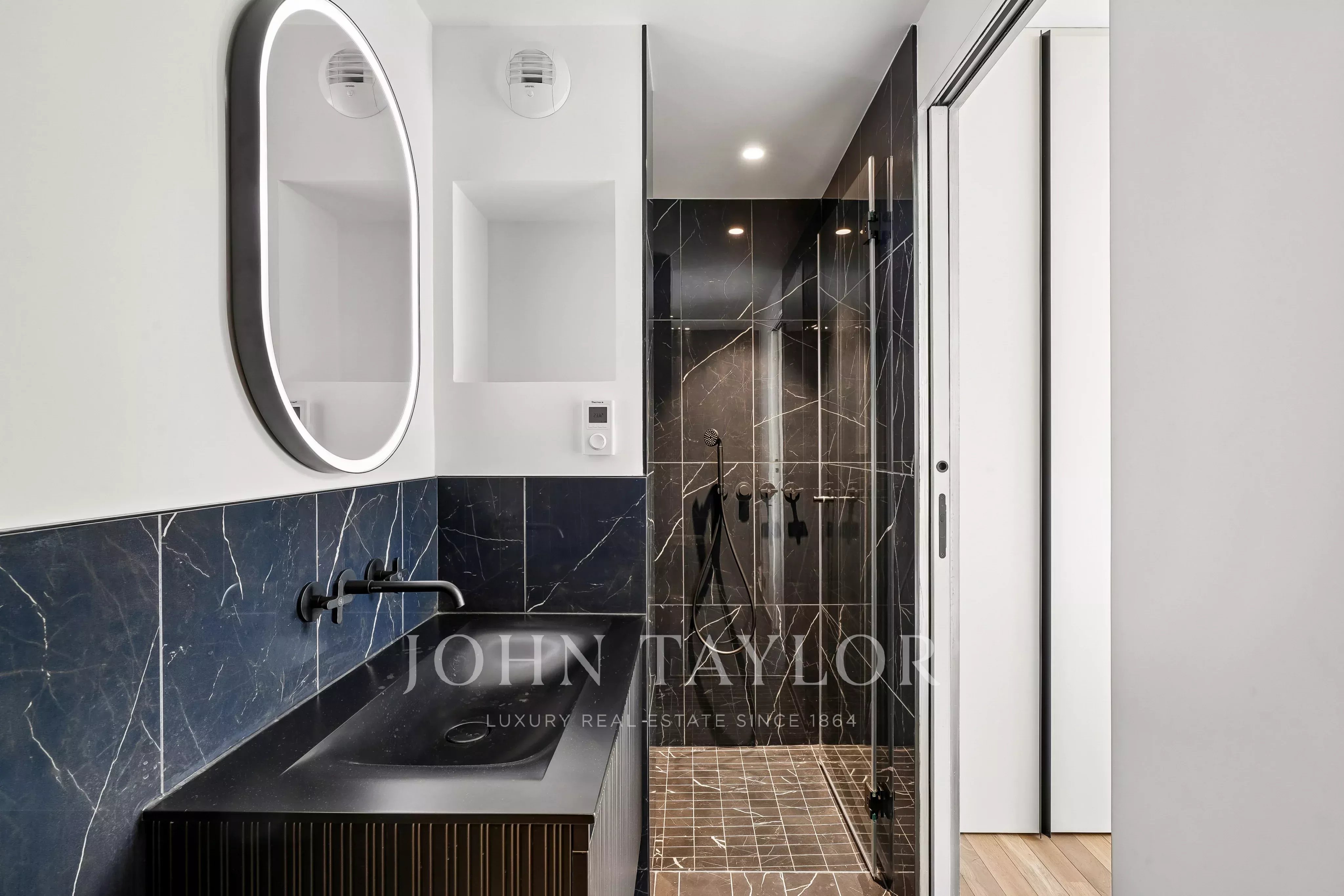 Domotique, charme intemporelle Haussmannien, confort du contemporain, double vitrage phonique et thermique, finitions raffinées, matériaux nobles, marbre, parquet en chêne massif, accessibilité PMR, vidéosurveillance, conciergerie domotique 24/7.