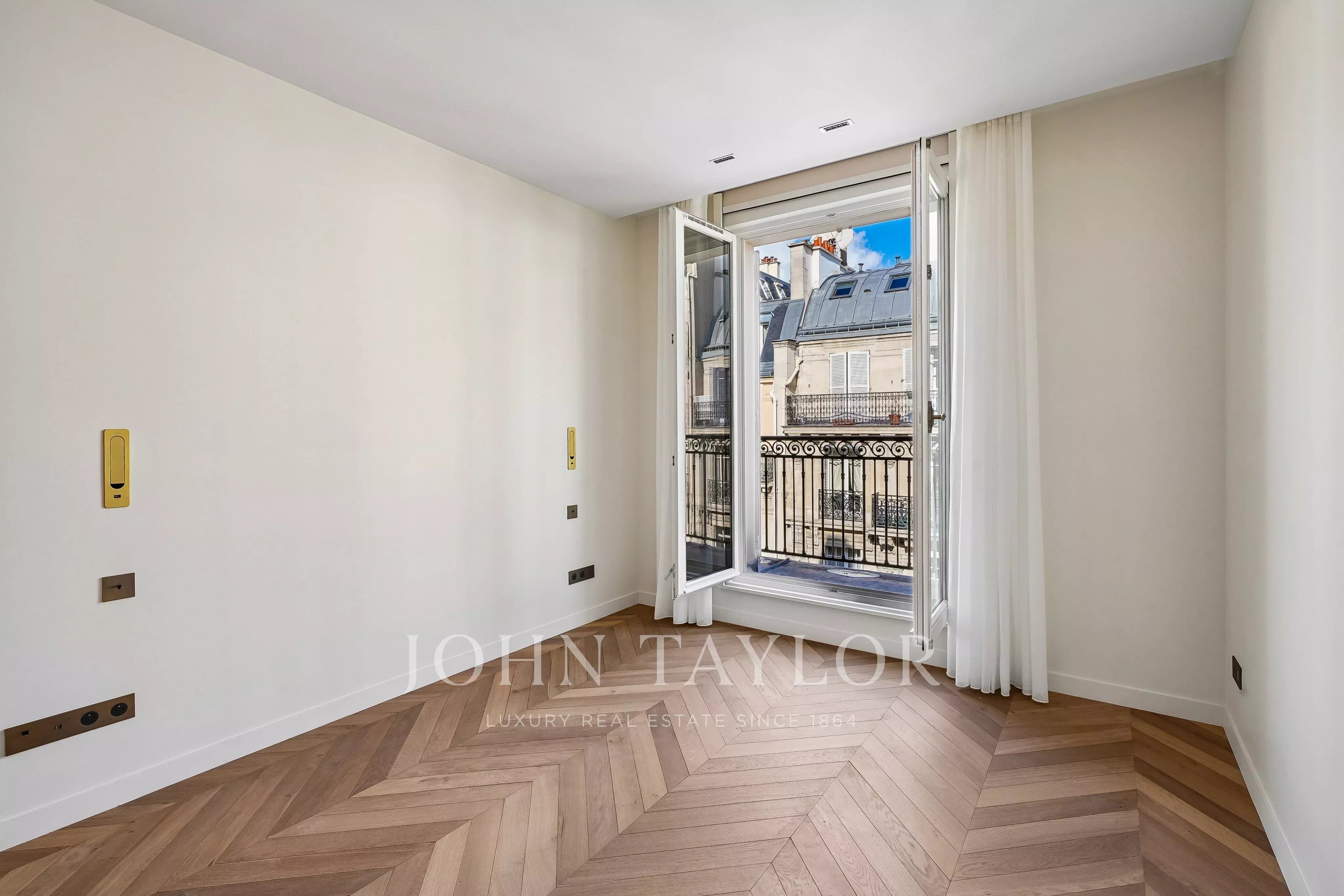 Domotique, charme intemporelle Haussmannien, confort du contemporain, double vitrage phonique et thermique, finitions raffinées, matériaux nobles, marbre, parquet en chene massif, accessibilité PMR, vidéosurveillance, conciergerie domotique 24/7.