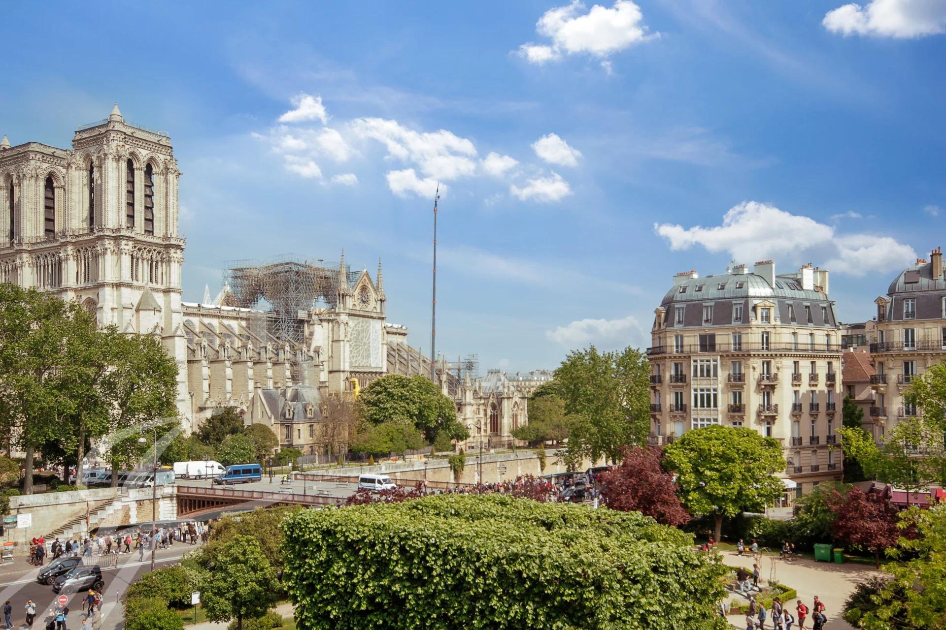 Deux espaces extérieurs avec vues sur la cathédrale Notre Dame notamment.