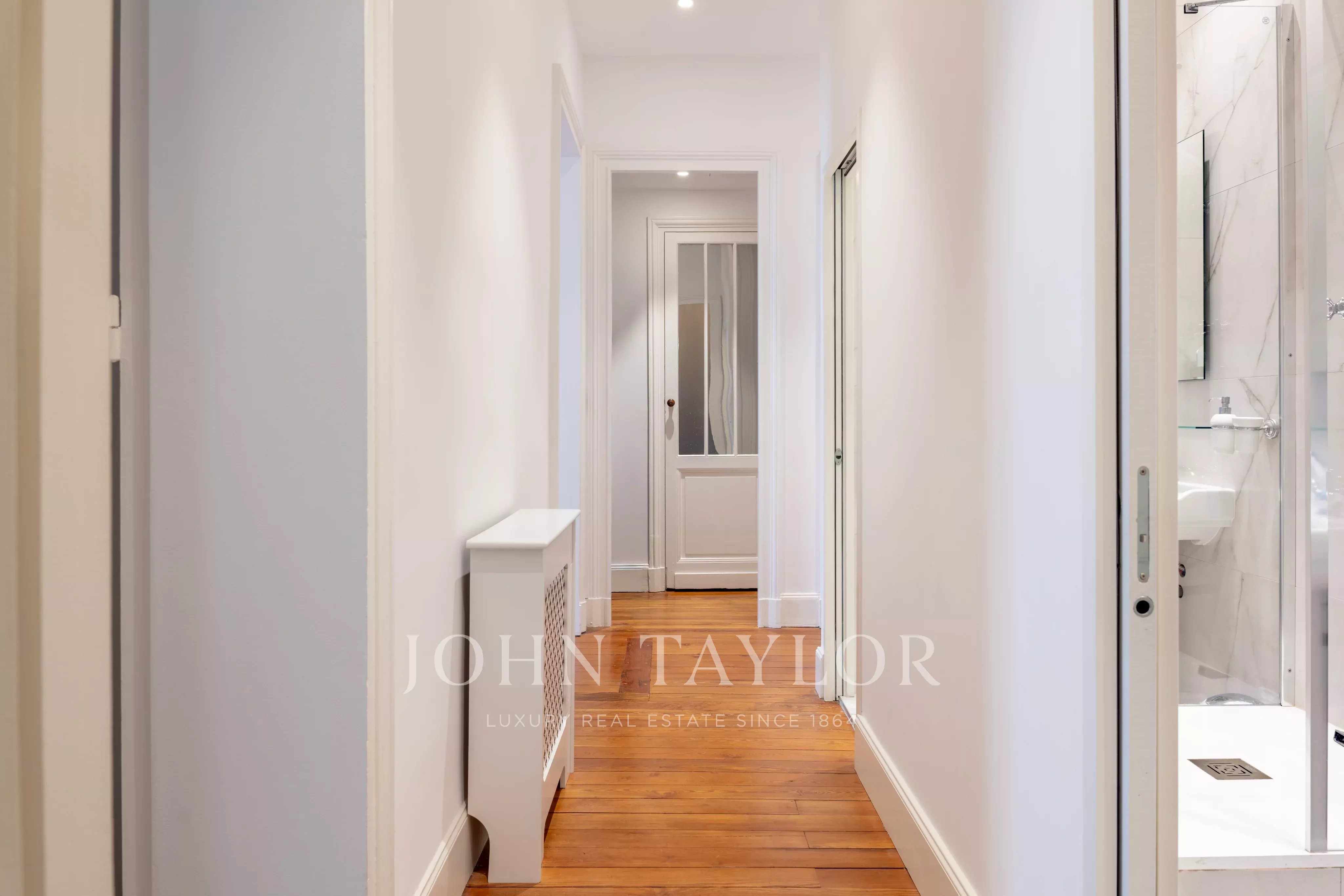 Situé au 2ème étage d’un immeuble bourgeois avec ascenseur, appartement meublé d'une surface de 87.56 m² CARREZ (90.74 m² de surface au sol) comprenant une entrée avec rangements intégrés, un couloir desservant une salle de douche avec double vasque, une chambre, une cuisine indépendante entièrement équipée, un double séjour salon / salle à manger dont une partie peut être aménagée en seconde chambre, un dressing et une WC séparé.