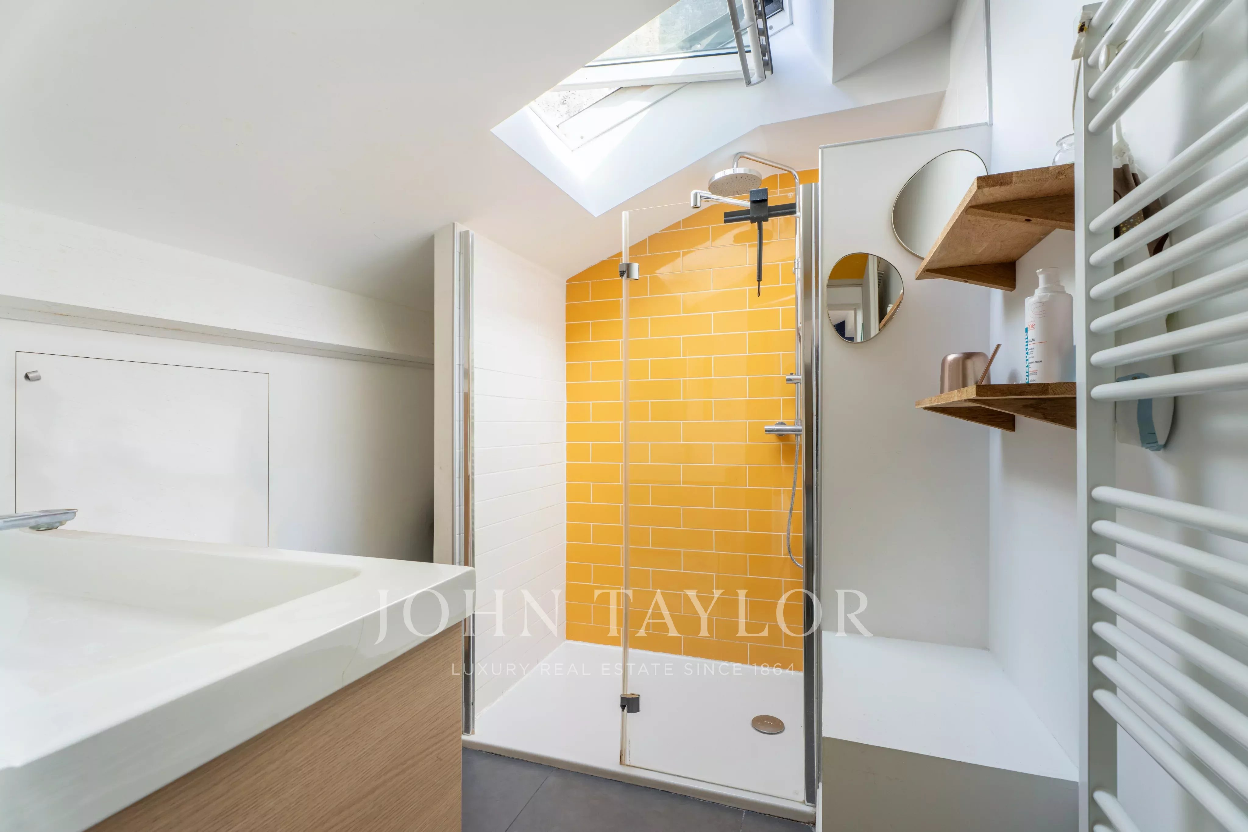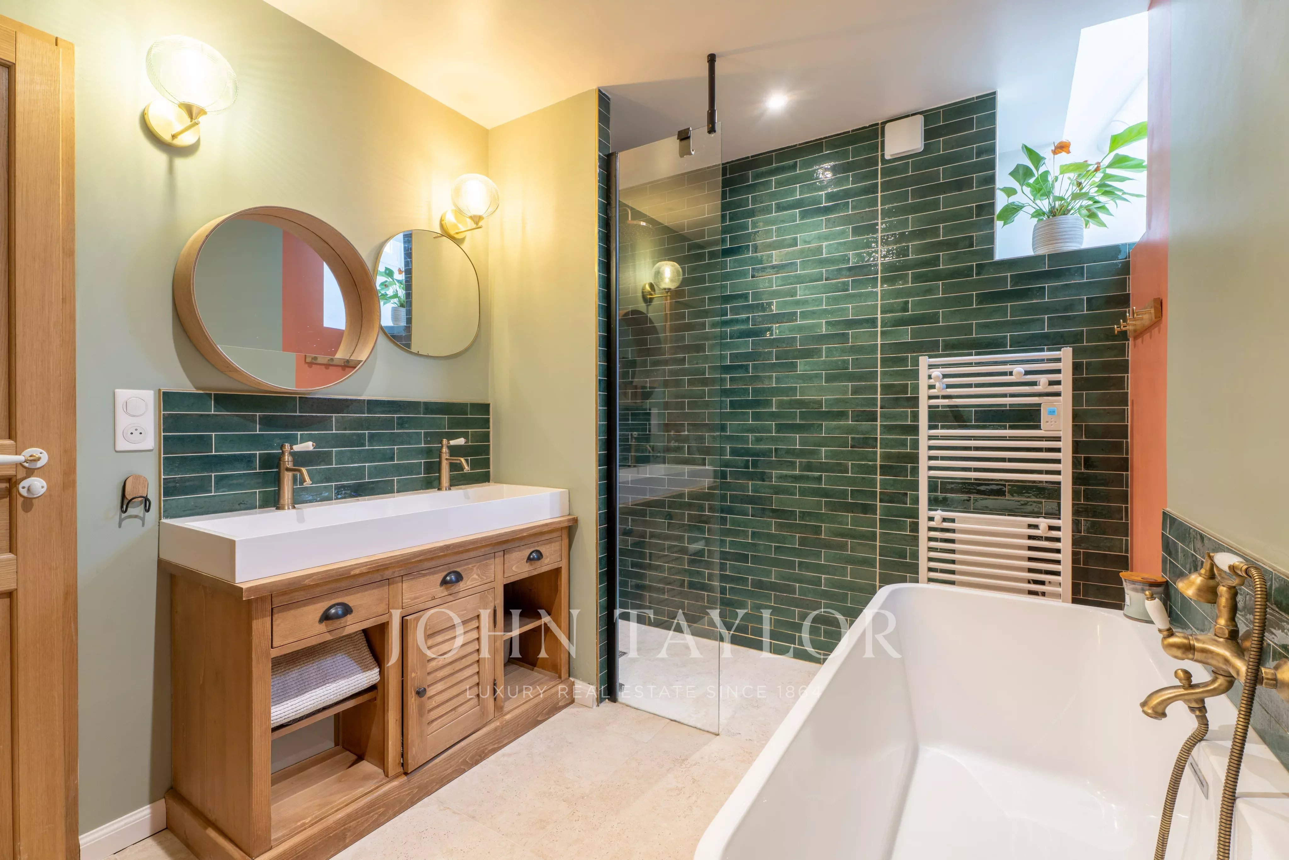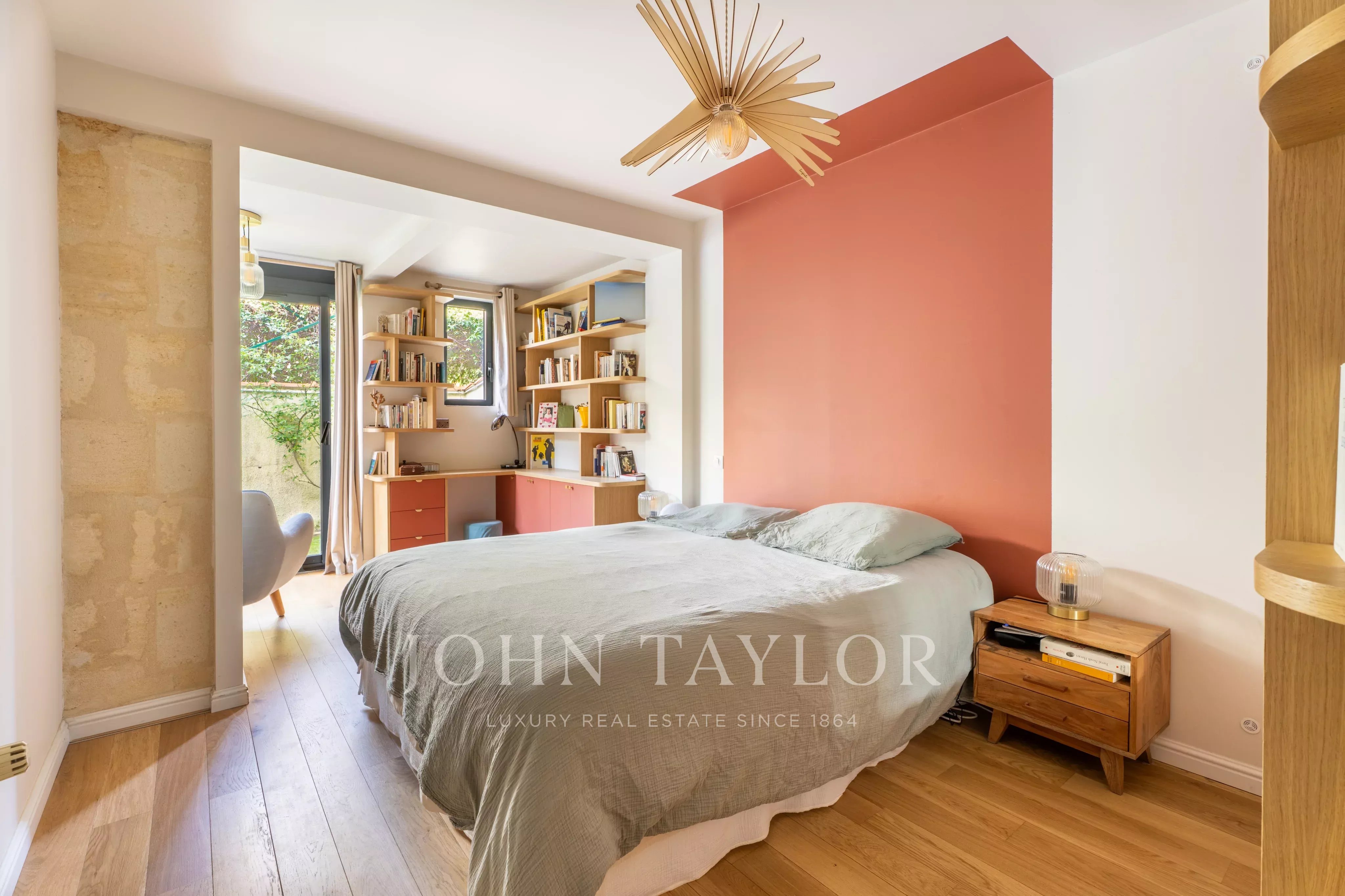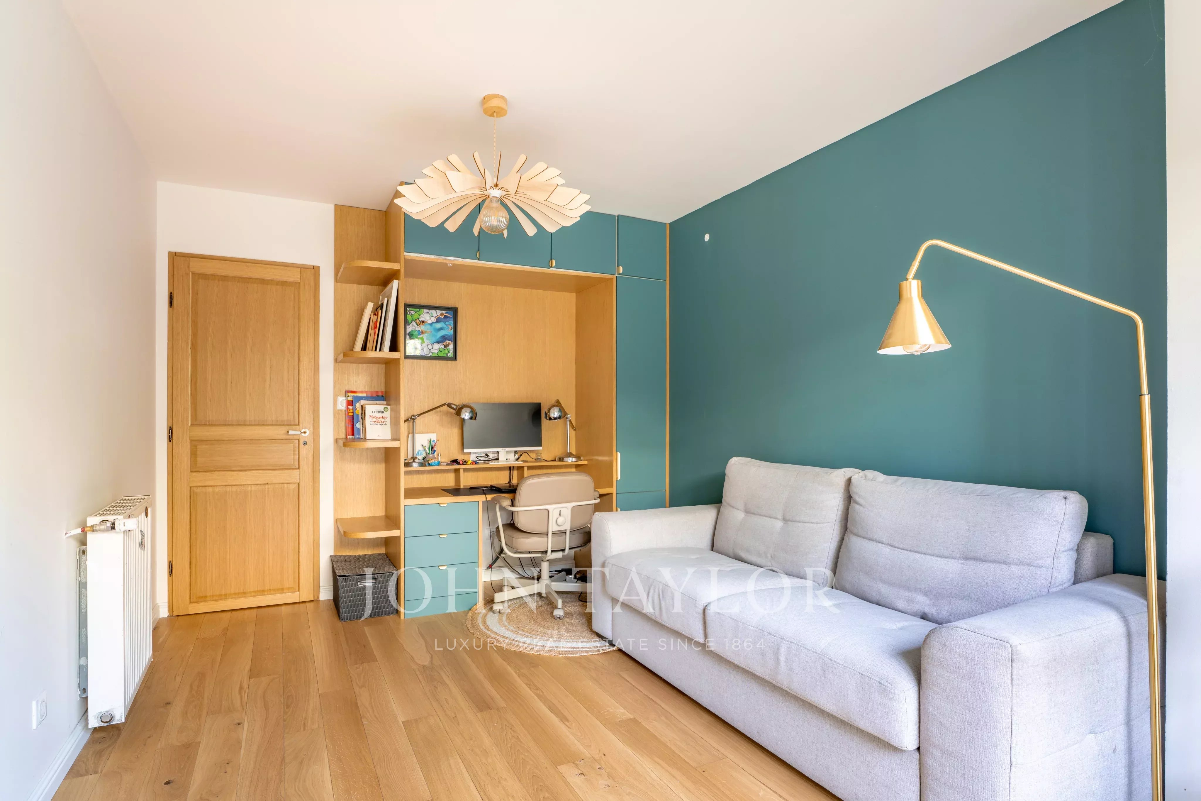 En rez-de-jardin, vous trouverez une belle suite parentale avec accès direct au jardinet, un bureau pouvant également faire office de chambre, une salle de bains avec douche et WC, ainsi qu’une buanderie.