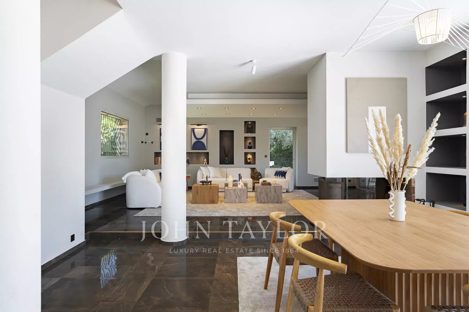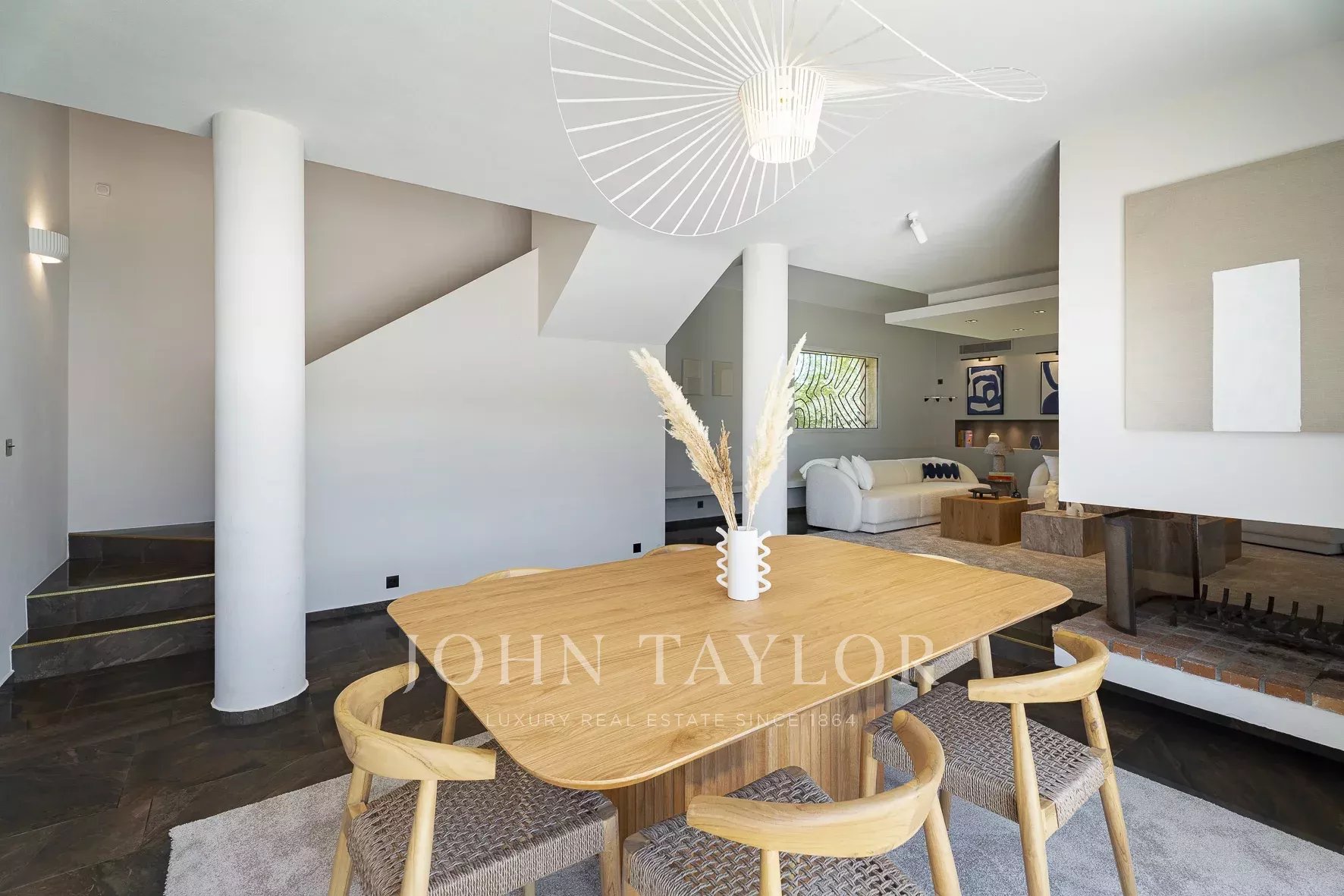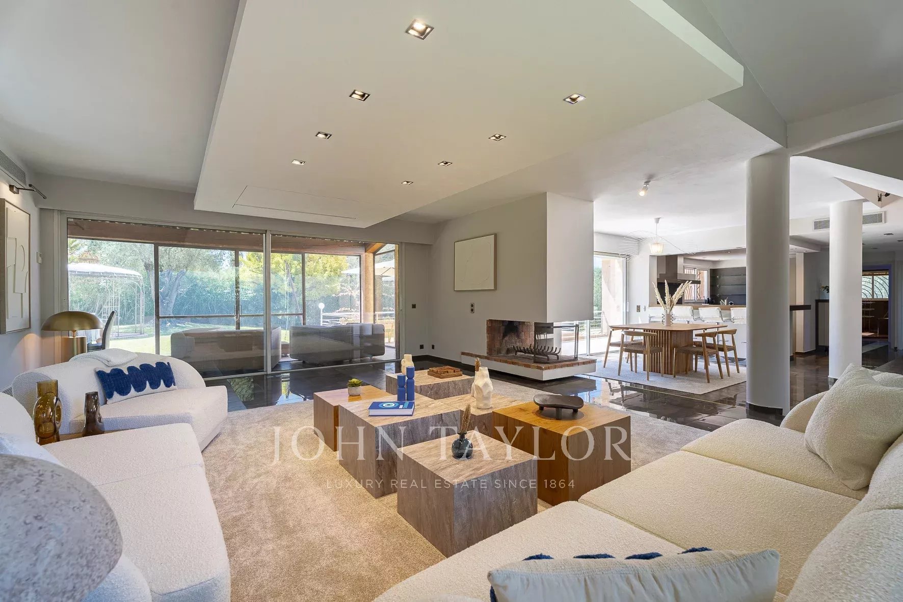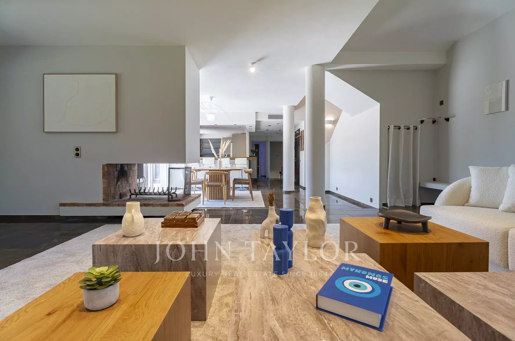 Salon lumineux avec cheminée