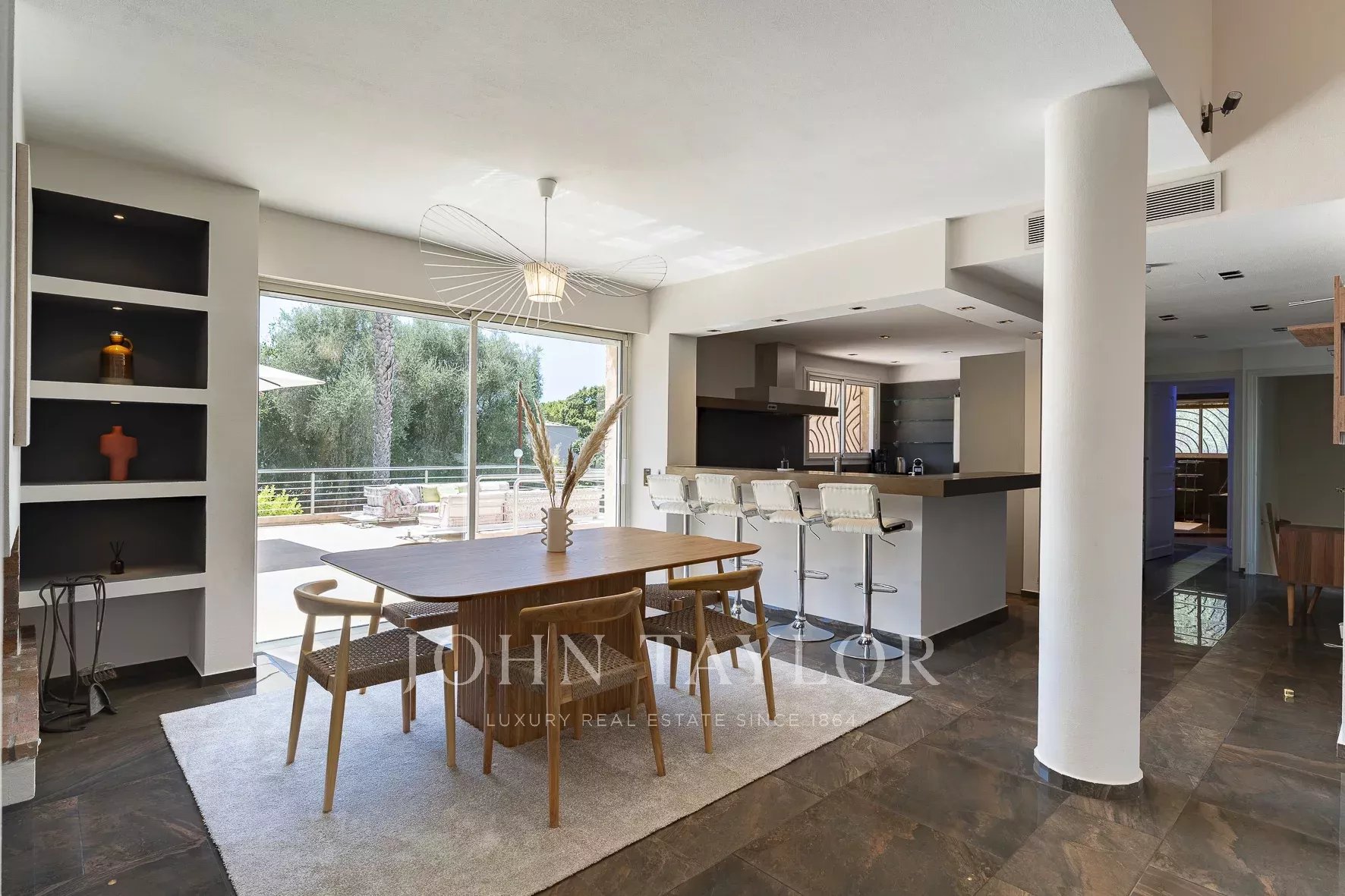 Située dans l’un quartiers résidentiel de Mougins, proche du vieux village, cette villa vous offre un cadre de vie paisible et raffiné.