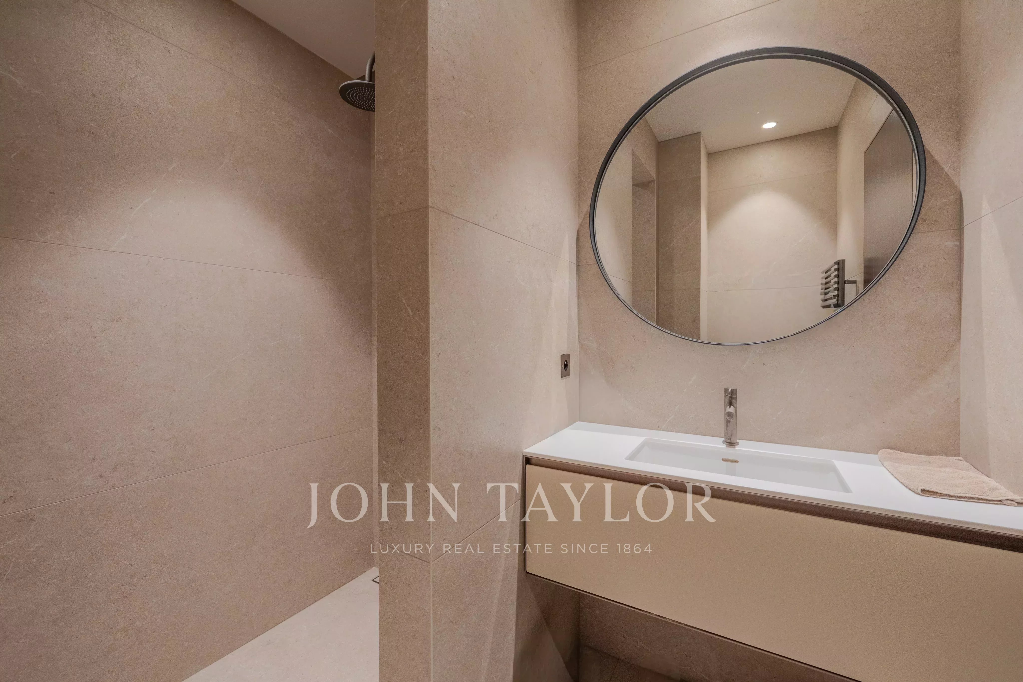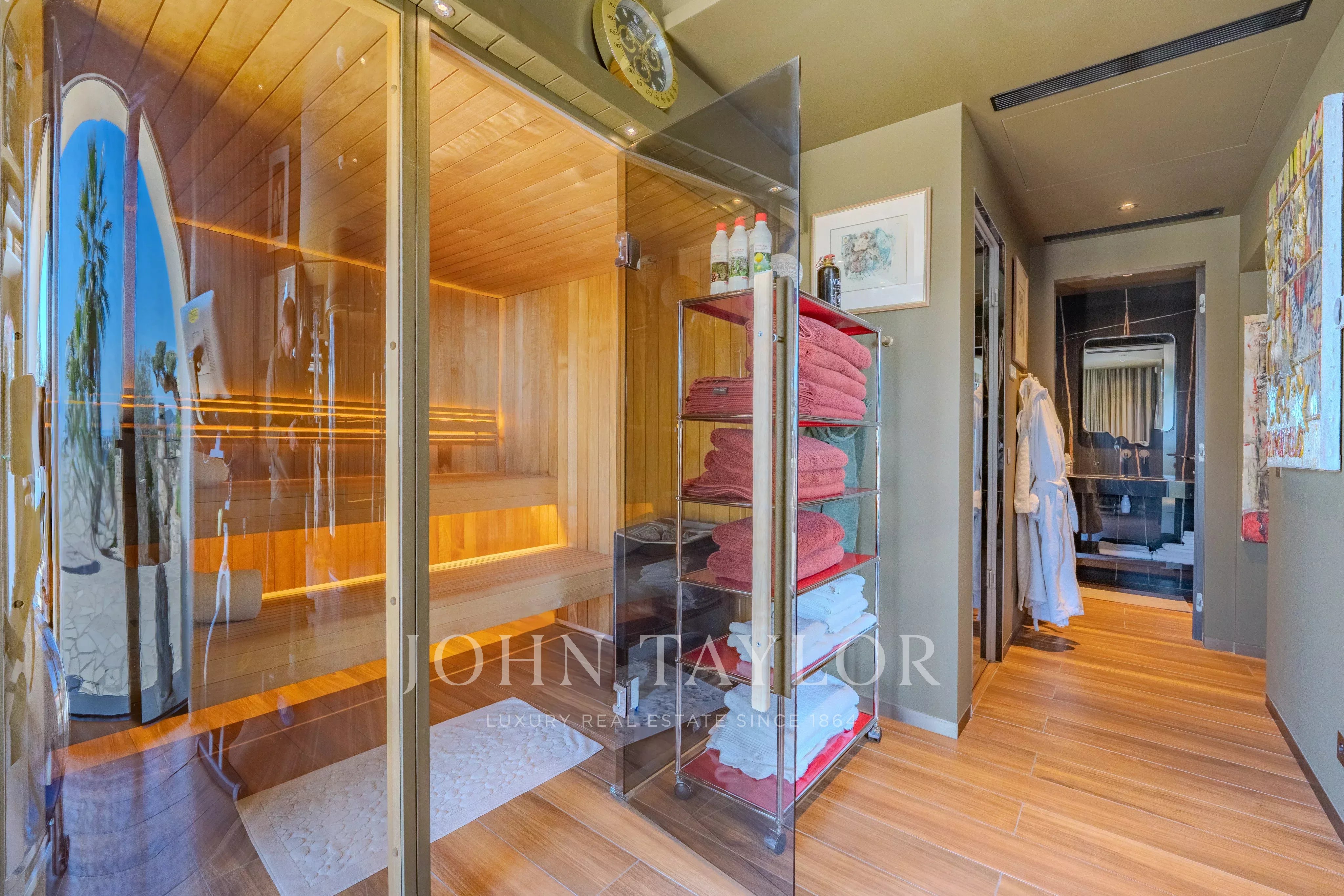 Un espace bien-être dédié comprend un spa avec sauna, hammam et salle de douche, offrant une véritable expérience de détente à domicile.